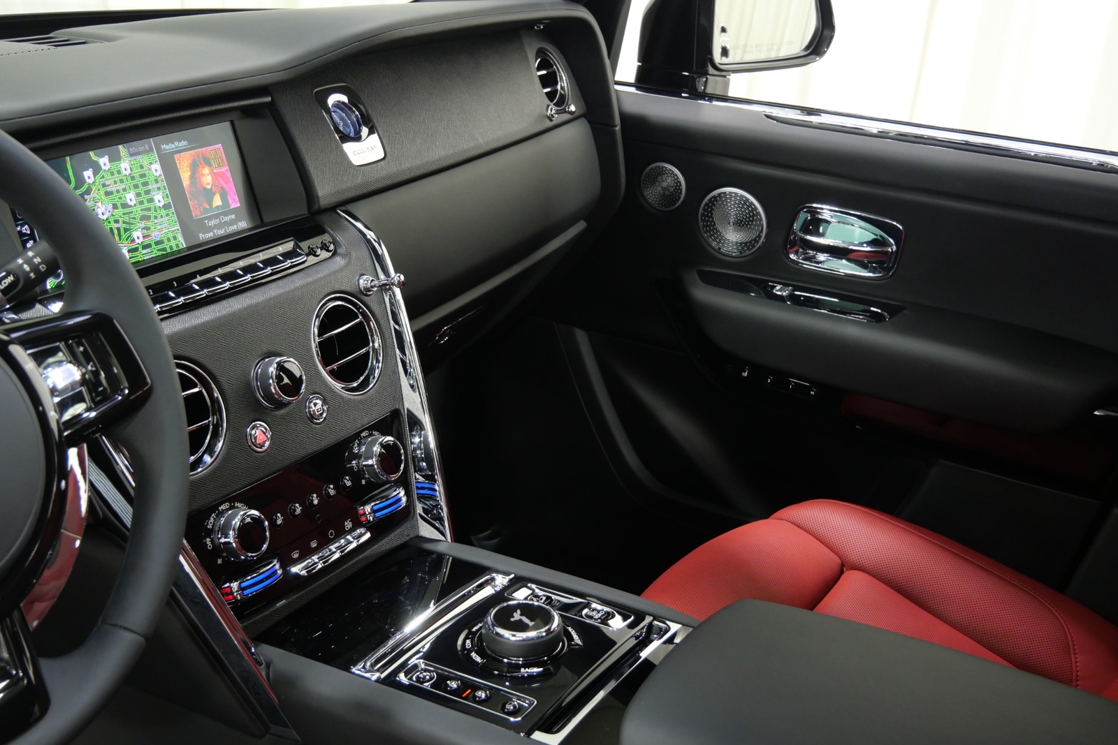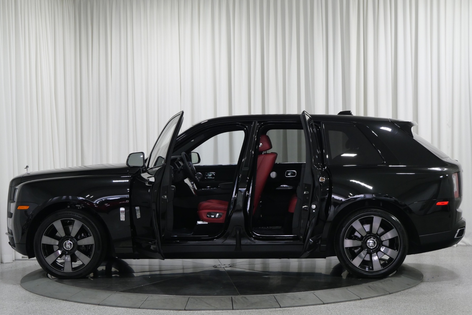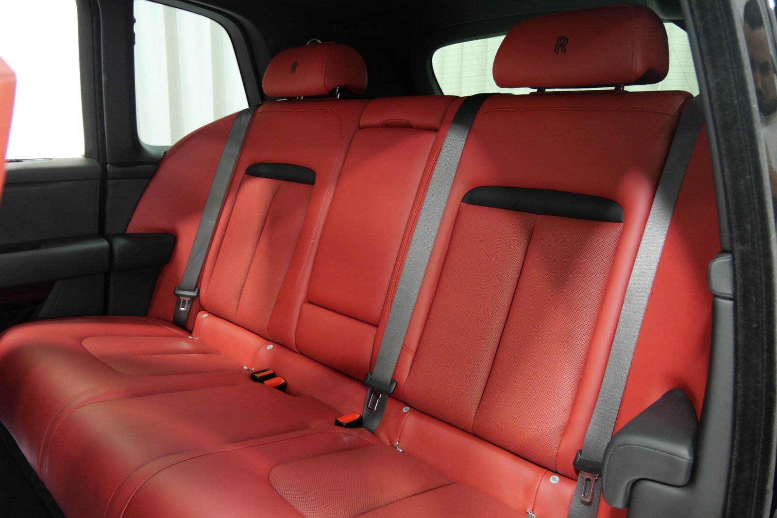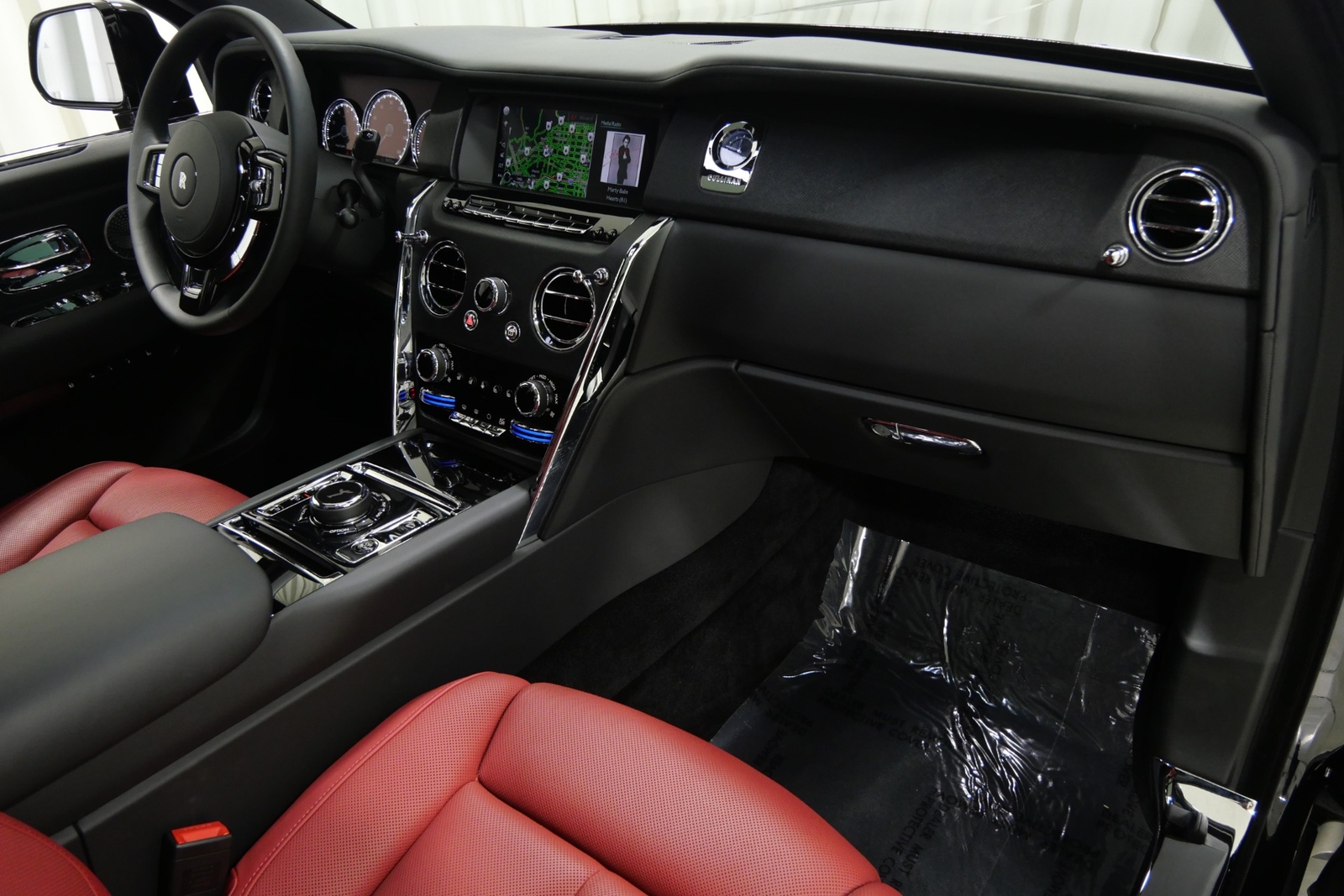 We have just added to our extensive exotic car inventory a beautiful 2022 Rolls Royce Cullinan in Black Diamond over Hotspur Red leather interior and only 6,035 miles. This Cullinan is loaded with: 6.75 Litre twin turbo V12, automatic transmission, 22 inch part polished shadow wheels, centre caps matched to wheel accents, dark exterior package (a $19,750 option), black exterior stainless steel package, Rolls Royce bespoke audio, bespoke interior editing, RR monogram to all headrests, panoramic sunroof, extended leather headliner, piano black interior trim, driver assistance systems (active cruise control with Stop and Go plus rear radar guided distance control, parking assist for parallel and reverse parking, and night vision, active cruise control, park assistant, night vision with pedestrian recognition), contrast coloring in black, camera system, heated and ventilated front seats, heated rear seats, polished stainless steel package, signature keys in black, lambswool floor mats and much more.