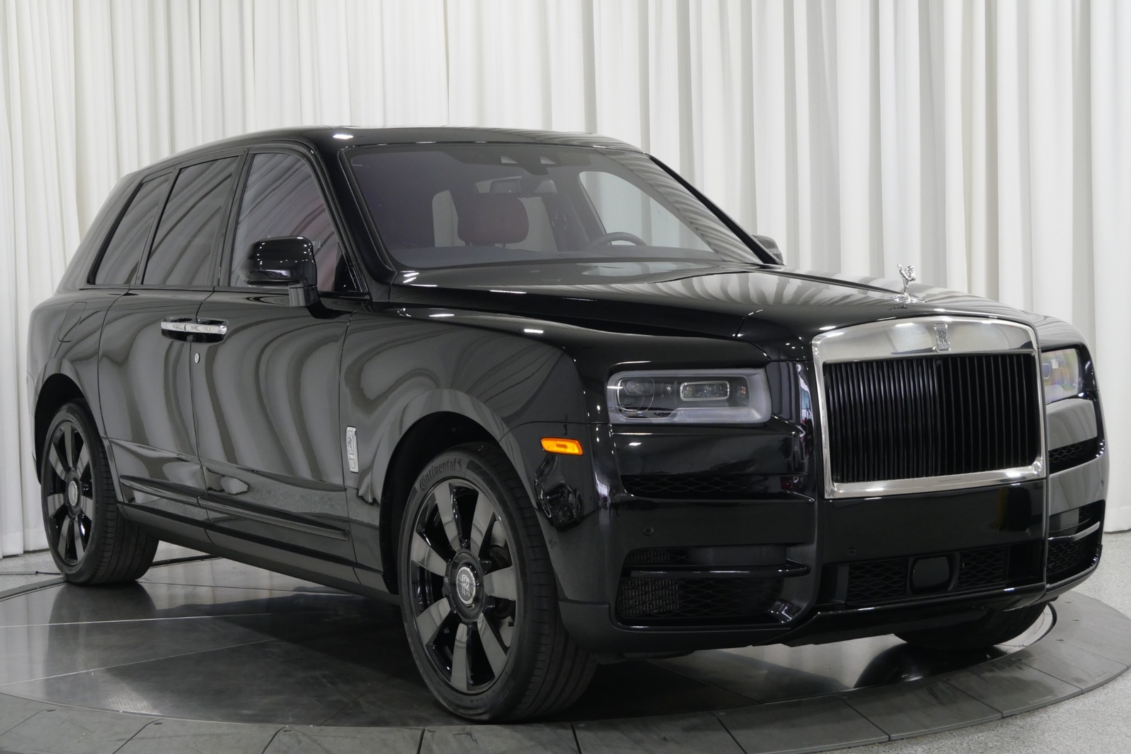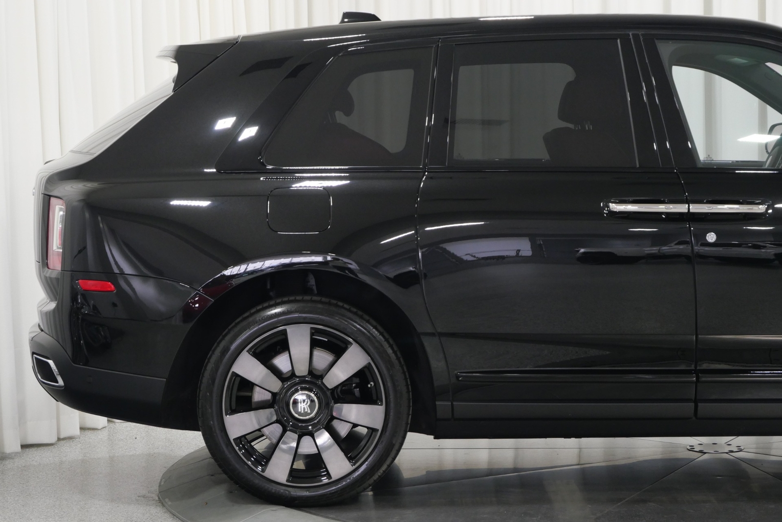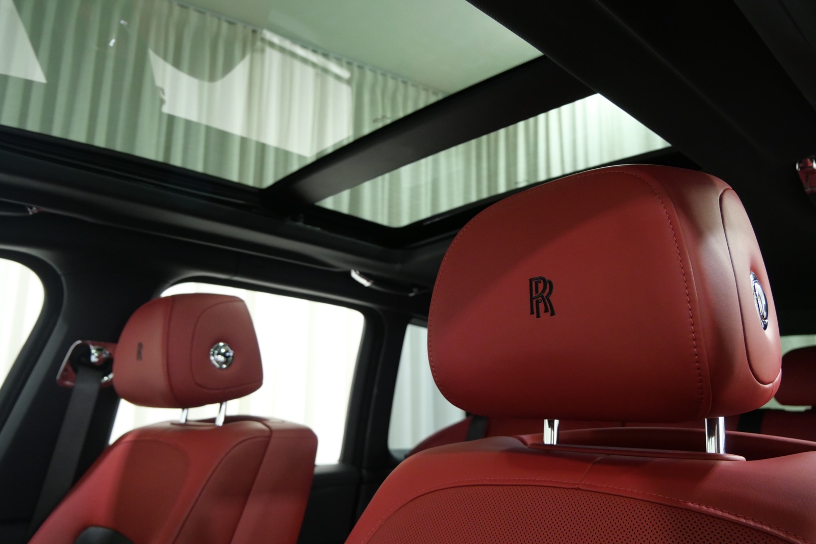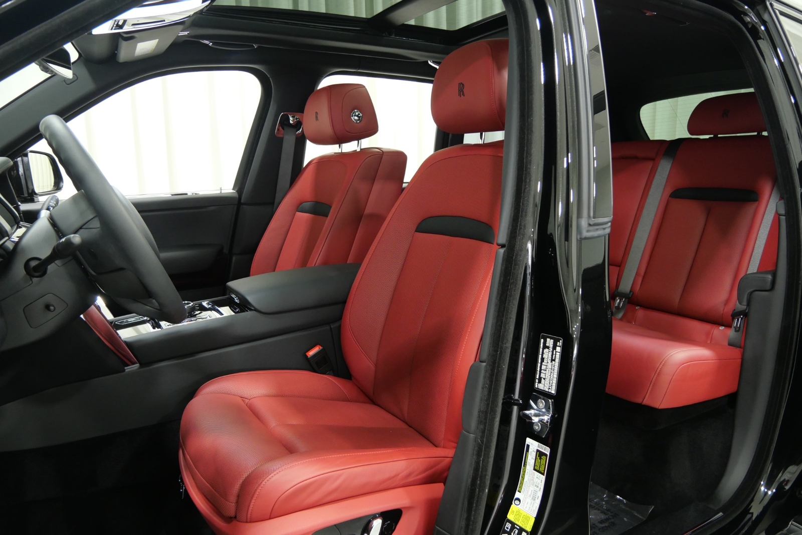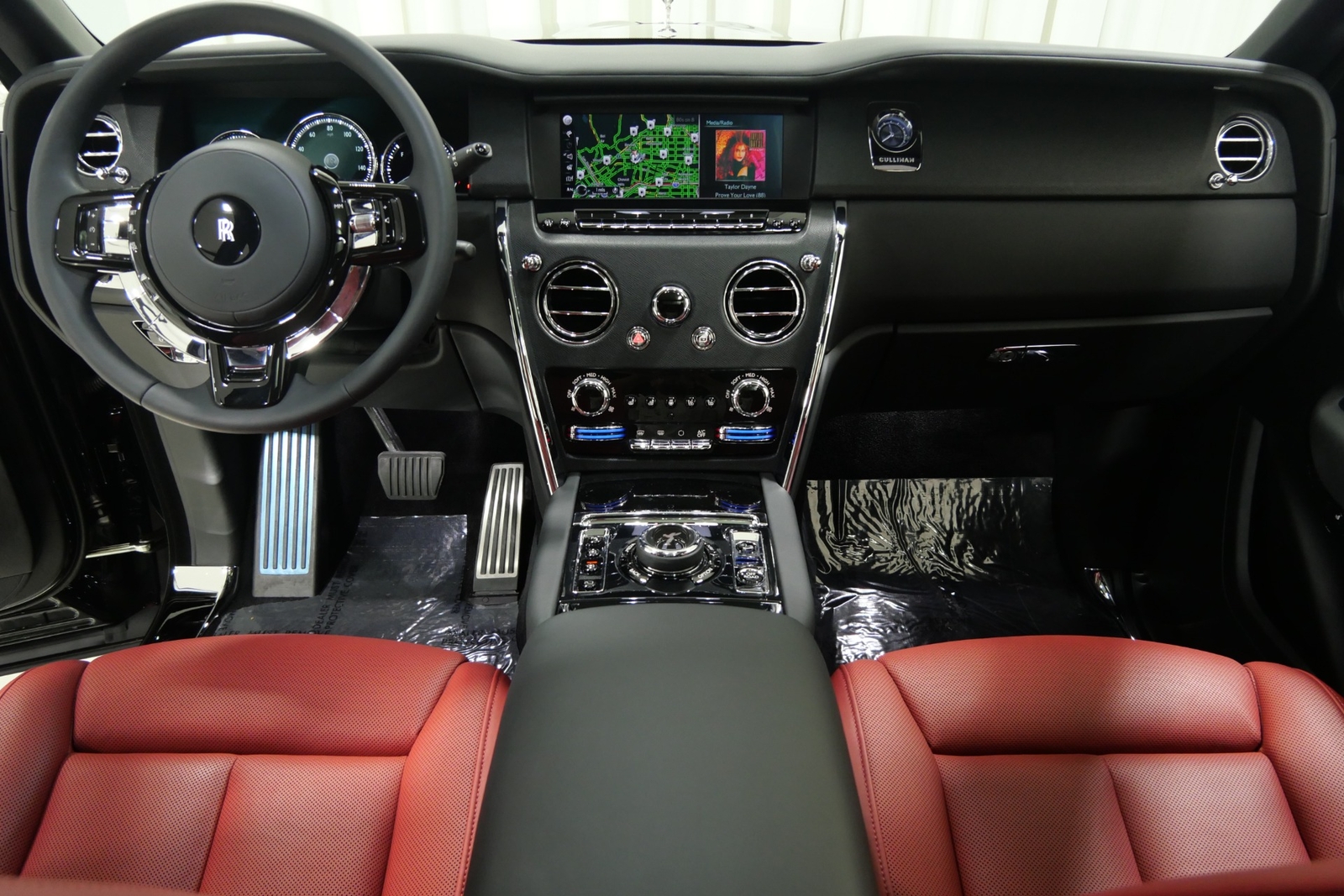 We have just added to our extensive exotic car inventory a beautiful 2022 Rolls Royce Cullinan in Black Diamond over Hotspur Red leather interior and only 6,035 miles. This Cullinan is loaded with: 6.75 Litre twin turbo V12, automatic transmission, 22 inch part polished shadow wheels, centre caps matched to wheel accents, dark exterior package (a $19,750 option), black exterior stainless steel package, Rolls Royce bespoke audio, bespoke interior editing, RR monogram to all headrests, panoramic sunroof, extended leather headliner, piano black interior trim, driver assistance systems (active cruise control with Stop and Go plus rear radar guided distance control, parking assist for parallel and reverse parking, and night vision, active cruise control, park assistant, night vision with pedestrian recognition), contrast coloring in black, camera system, heated and ventilated front seats, heated rear seats, polished stainless steel package, signature keys in black, lambswool floor mats and much more.