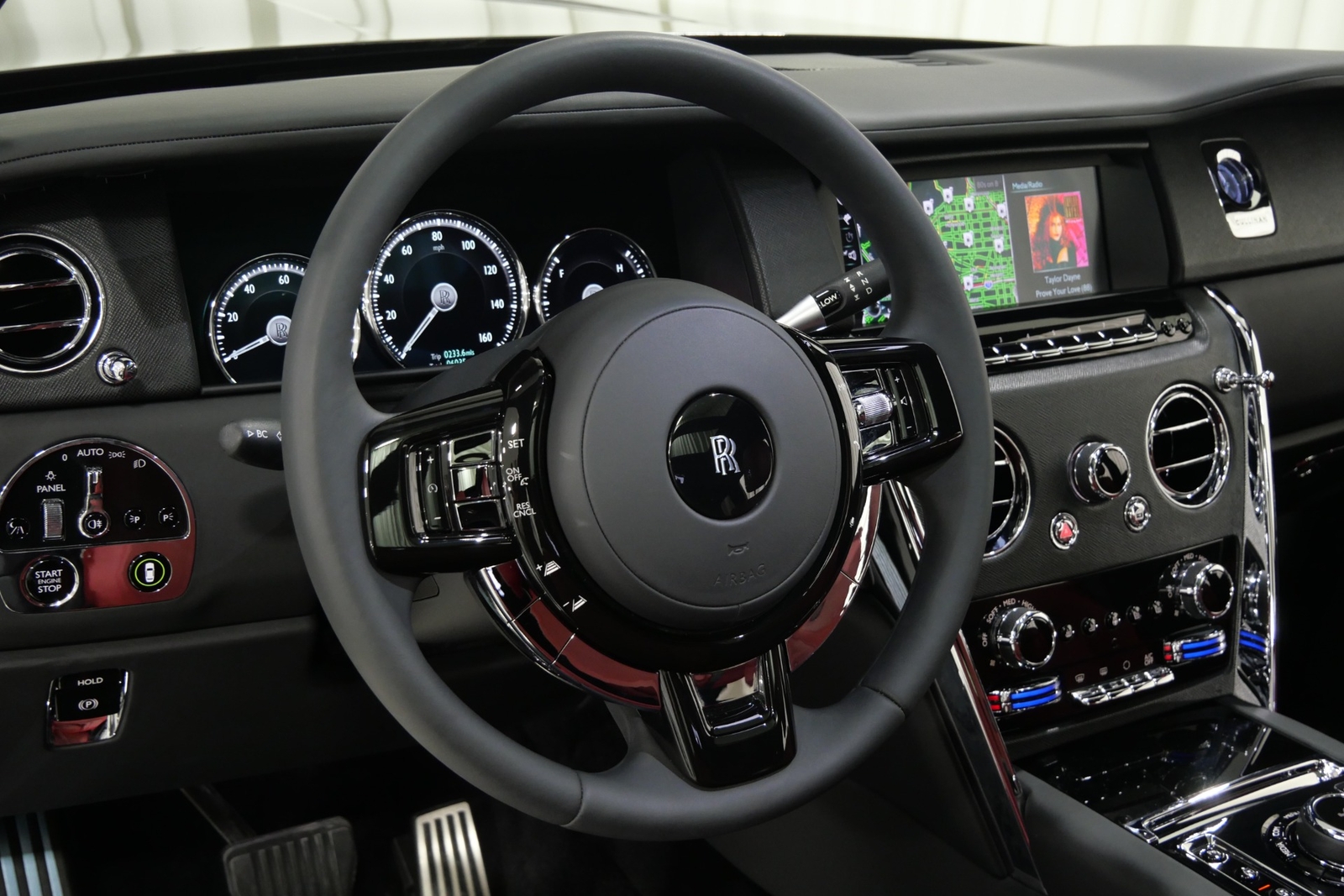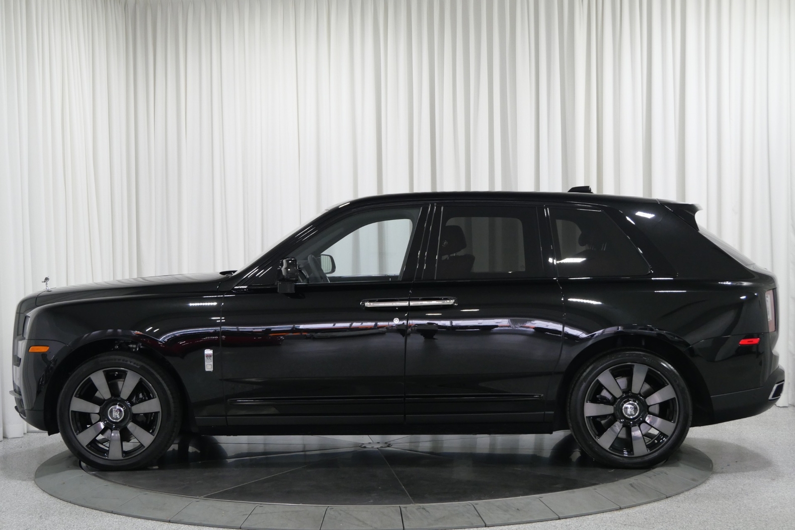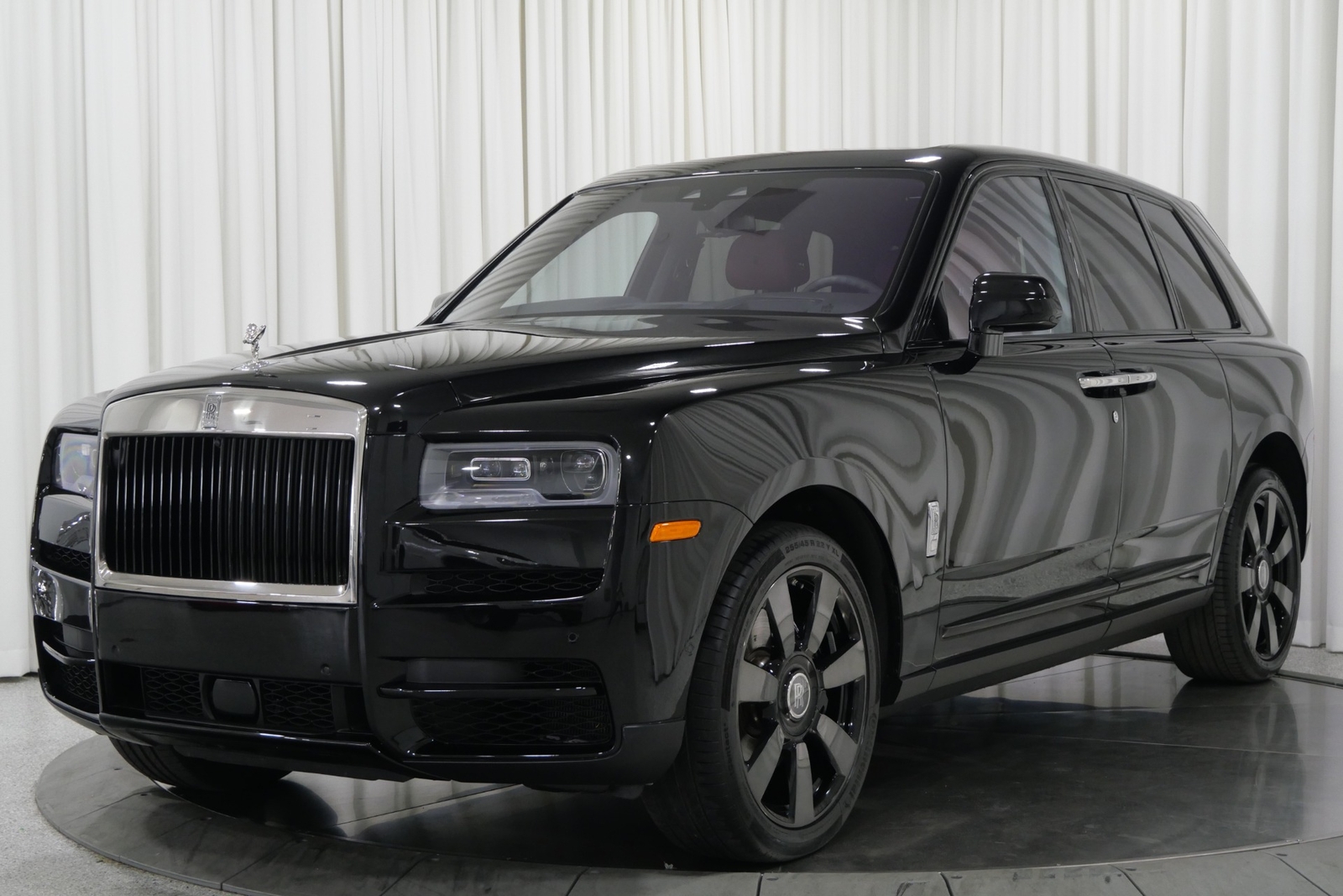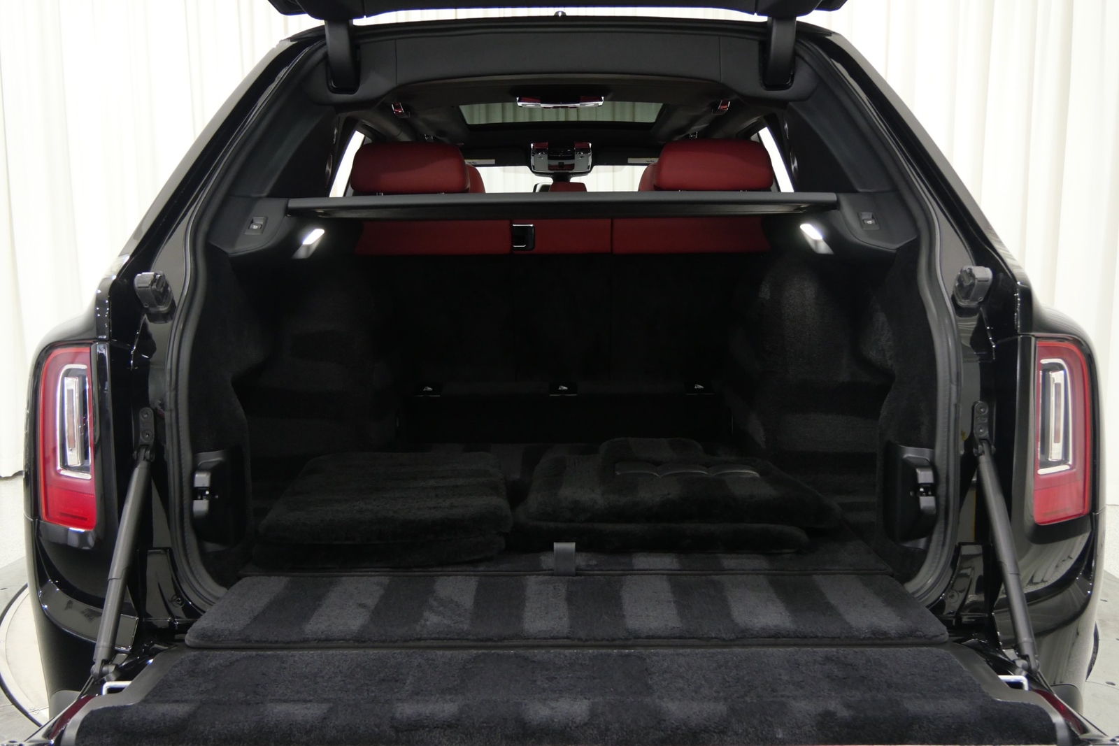We have just added to our extensive exotic car inventory a beautiful 2022 Rolls Royce Cullinan in Black Diamond over Hotspur Red leather interior and only 6,035 miles. This Cullinan is loaded with: 6.75 Litre twin turbo V12, automatic transmission, 22 inch part polished shadow wheels, centre caps matched to wheel accents, dark exterior package (a $19,750 option), black exterior stainless steel package, Rolls Royce bespoke audio, bespoke interior editing, RR monogram to all headrests, panoramic sunroof, extended leather headliner, piano black interior trim, driver assistance systems (active cruise control with Stop and Go plus rear radar guided distance control, parking assist for parallel and reverse parking, and night vision, active cruise control, park assistant, night vision with pedestrian recognition), contrast coloring in black, camera system, heated and ventilated front seats, heated rear seats, polished stainless steel package, signature keys in black, lambswool floor mats and much more.