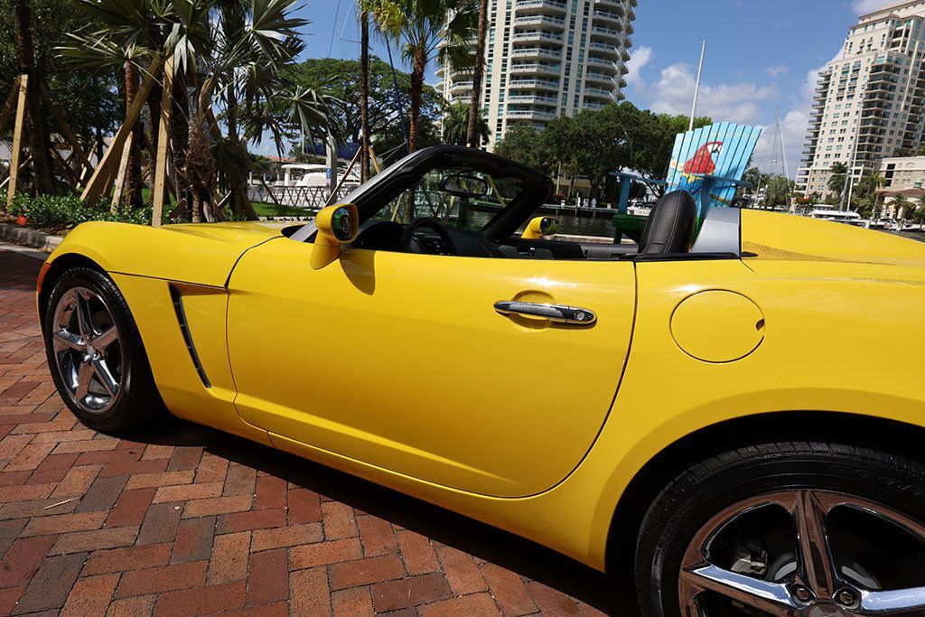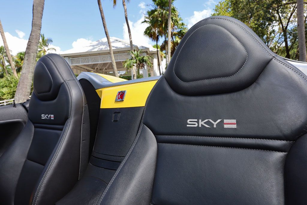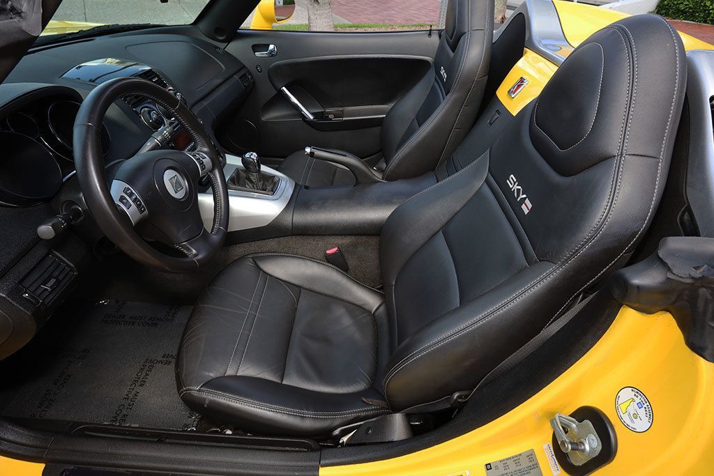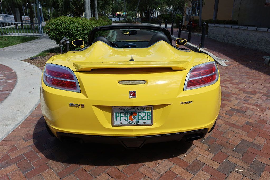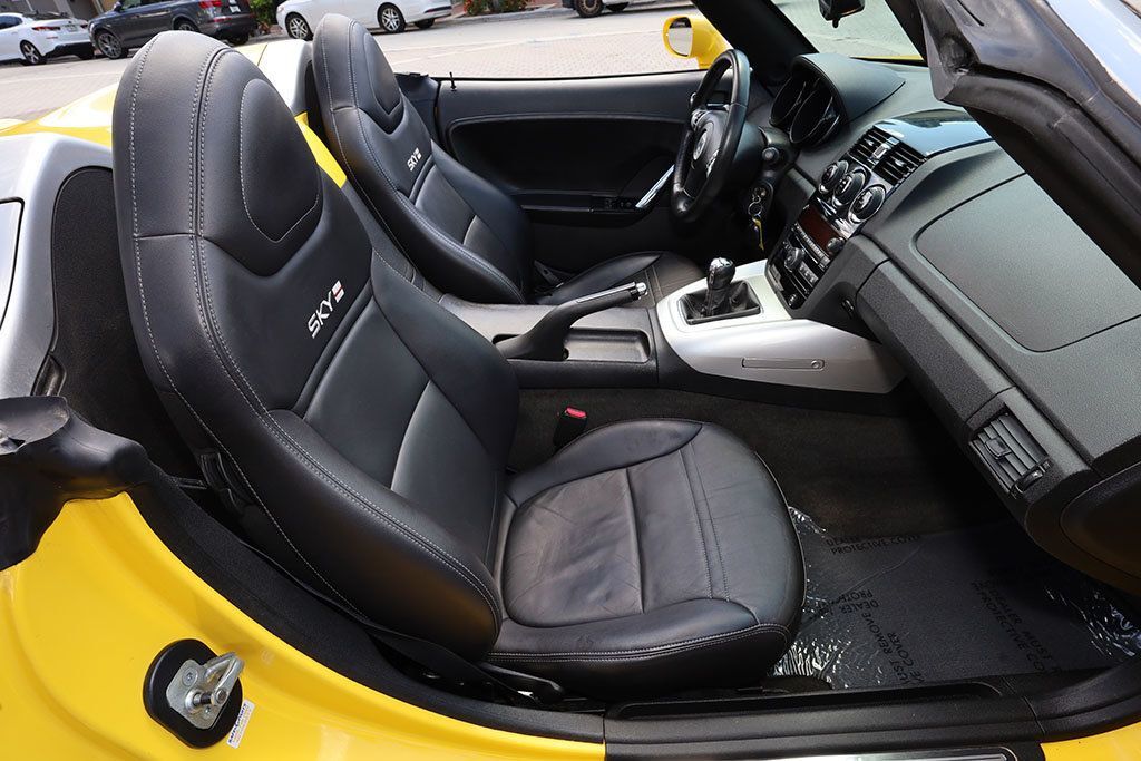The Red Line is powered by a 2.0-liter turbocharged motor rated at 260 hp and 260 lb-ft of torque (up 73 and 67, respectively, from the motor in the base Sky). It is quick, and it handles great. The Sky Red Line comes with a nice selection of comfort and convenience features, and this one adds options including Chrome Wheels, Leather Seats, Rear Spoiler, Upgraded Audio System, and the Sunburst Yellow paint.