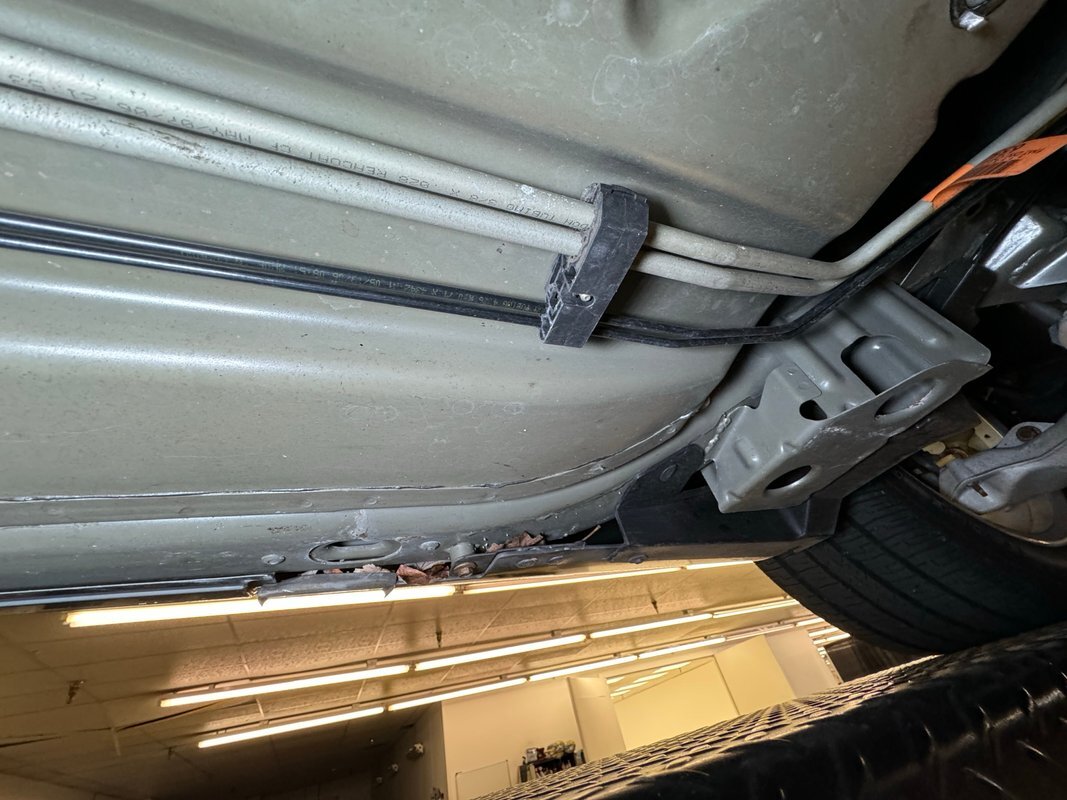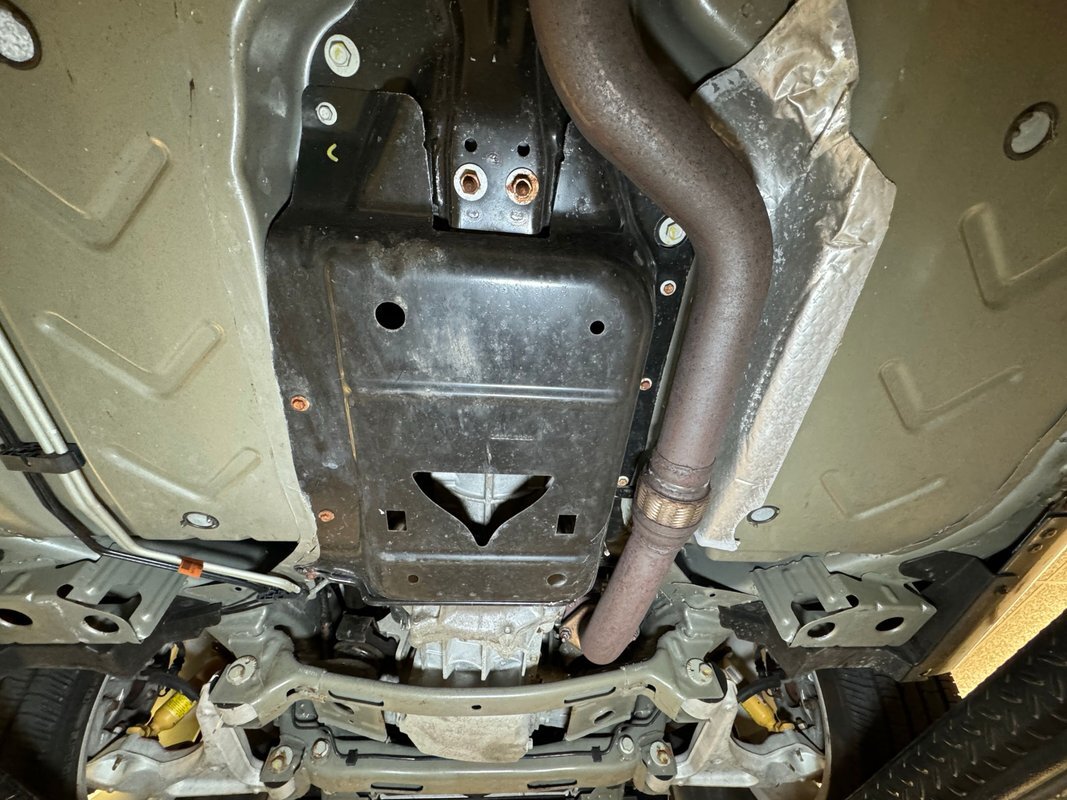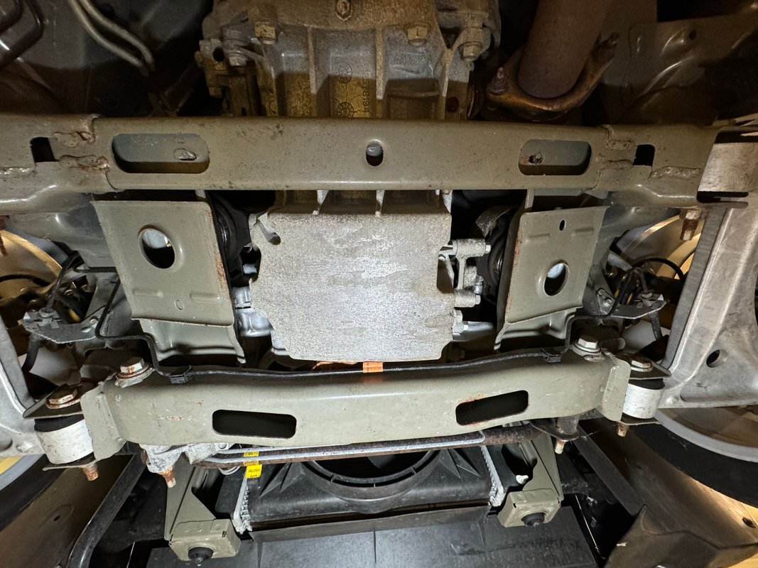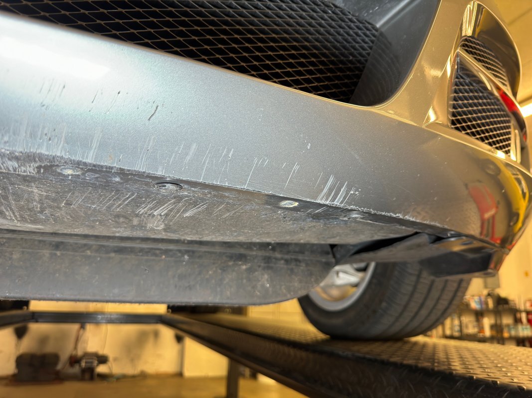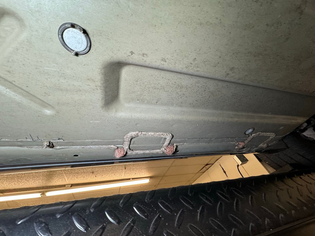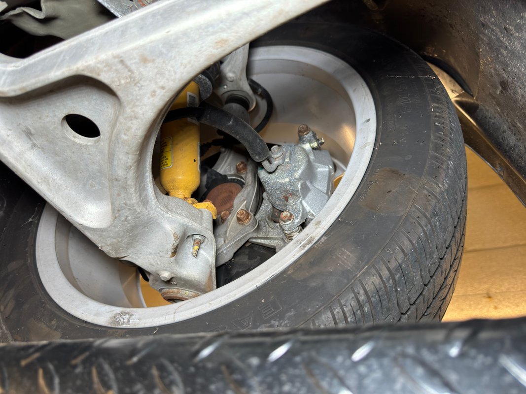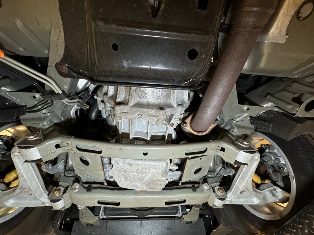 Clean as you'd expect for a rain free 17k mile car. Typical surface rust on uncoated parts including the single exhaust which travels down a ravine in the middle created by side belly pans and a long series of metal plates that houses the driveshaft. The original equipment muffler is in back and exudes a single tailpipe that exits the contoured rear valance. Short/long arm suspension, (double wishbone), occupies the front and rear independent systems.