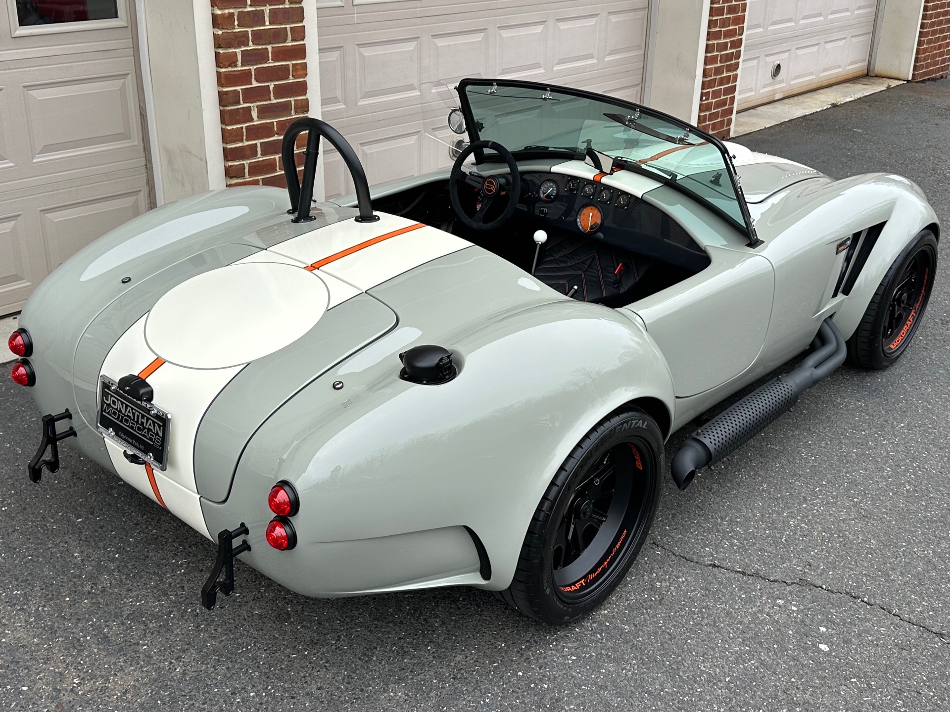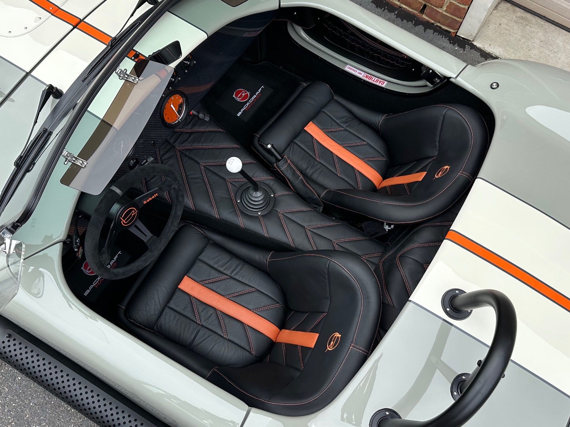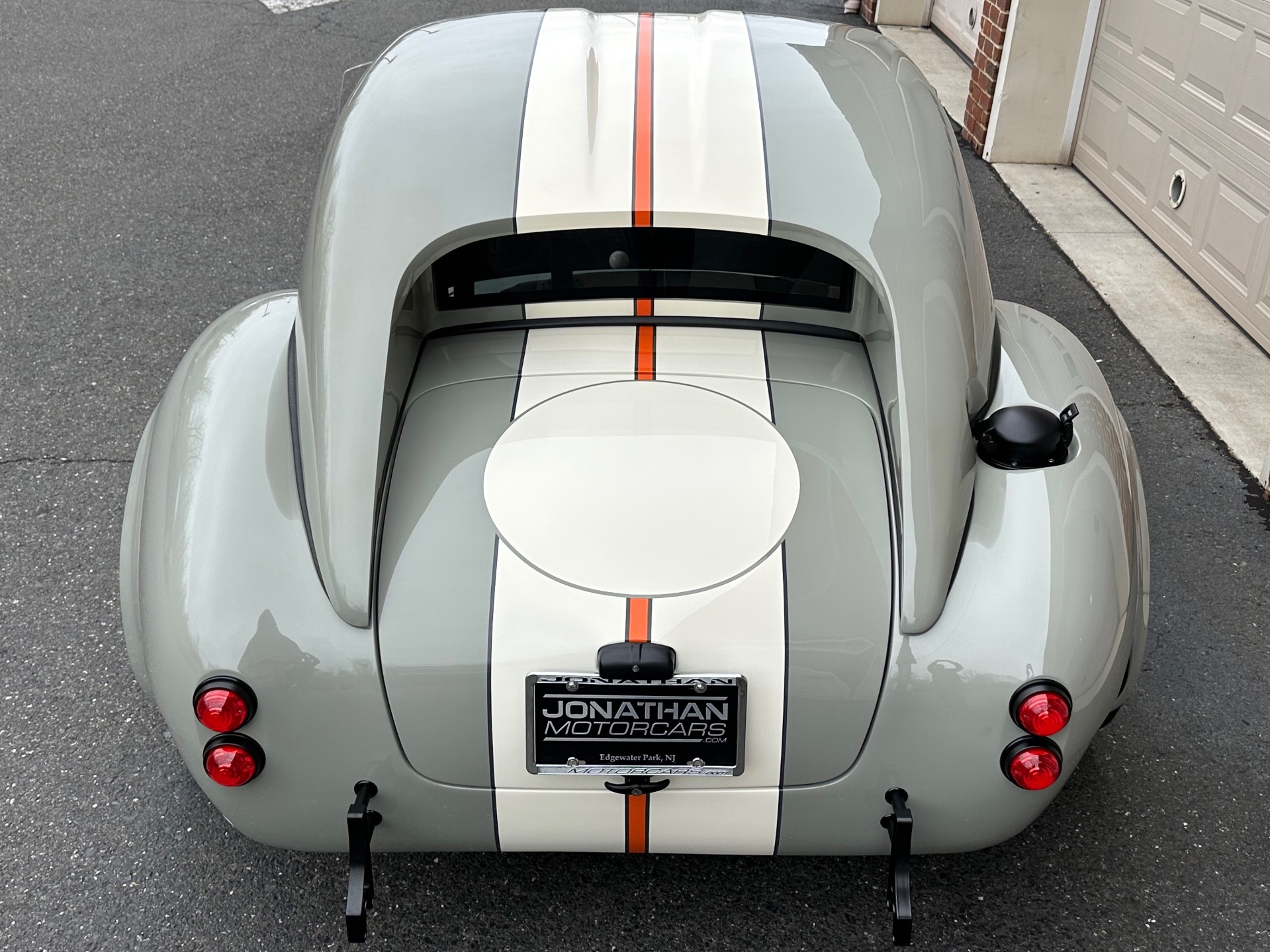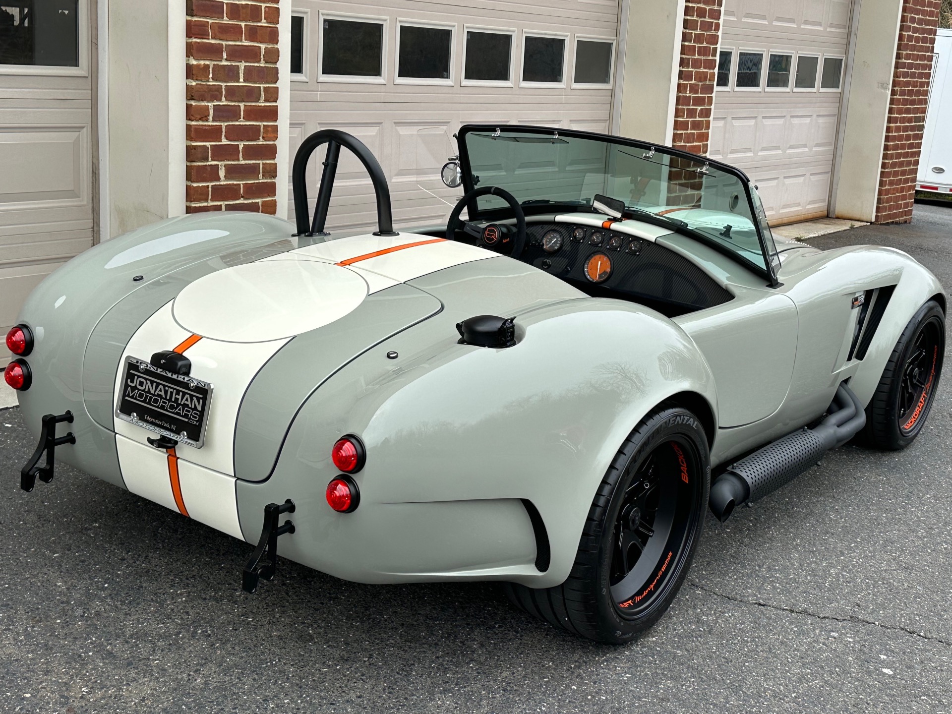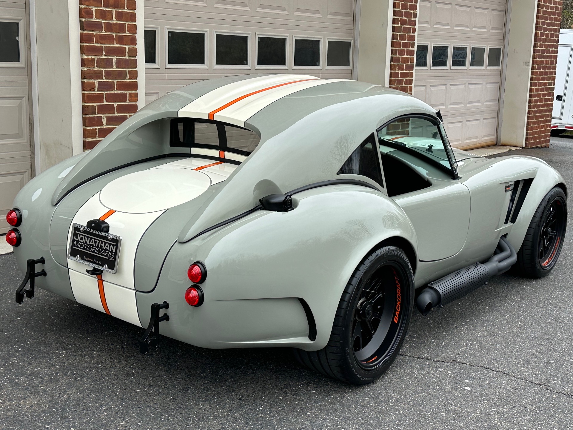 Featured at SEMA 2023 Backdraft Racing has arrived at JMC. We just could not resists this one. An unbelievable one of one backdraft cobra build. This is loaded with options and is done in the first ever Porsche fashion gray with a three color stripe. Wimbledon white, gulf orange, and grigio. Creating an awesome color combination on the cobra. Powered by the Roush 427IR 8 stack fuel injection engine making over 560 horse power. Some upgraded options included are power steering, big and tall edition, black and orange diagonal leather interior, carbon fiber dash, suede steering wheel, custom shift knob, cam lock style seat belts, painted engine compartment to match, paint protection, led headlights, removable hard top, wilwood big brake kit, remote brake and clutch reservoirs, oil cooler, the new GTR body, ceramic polish, aluminum gas tank powder coated black, night edition engine with custom painted valve covers and trumpets. This is a one of kind cobra available for purchase at Jonathan Motorcars. We have financing and can ship anywhere in the world. Call today!