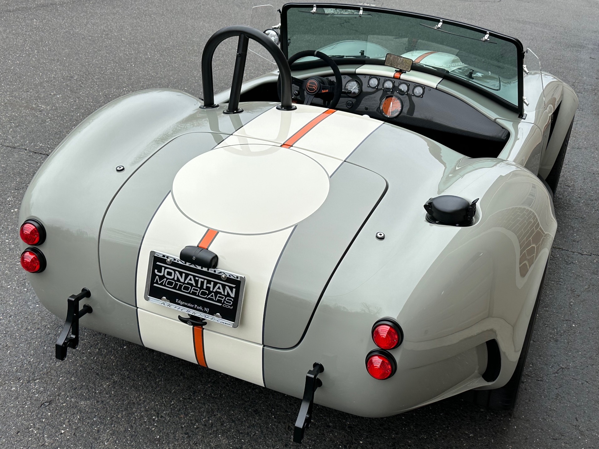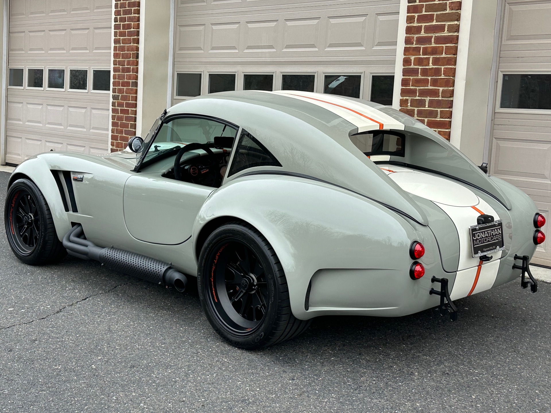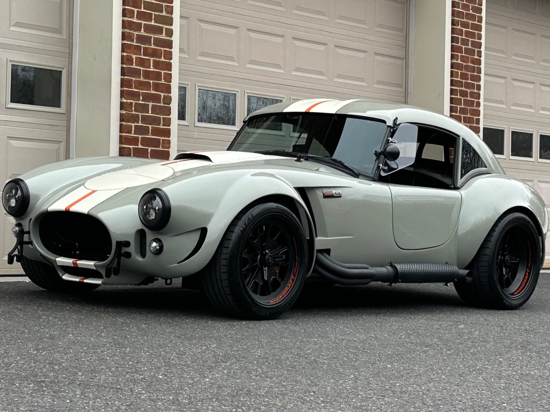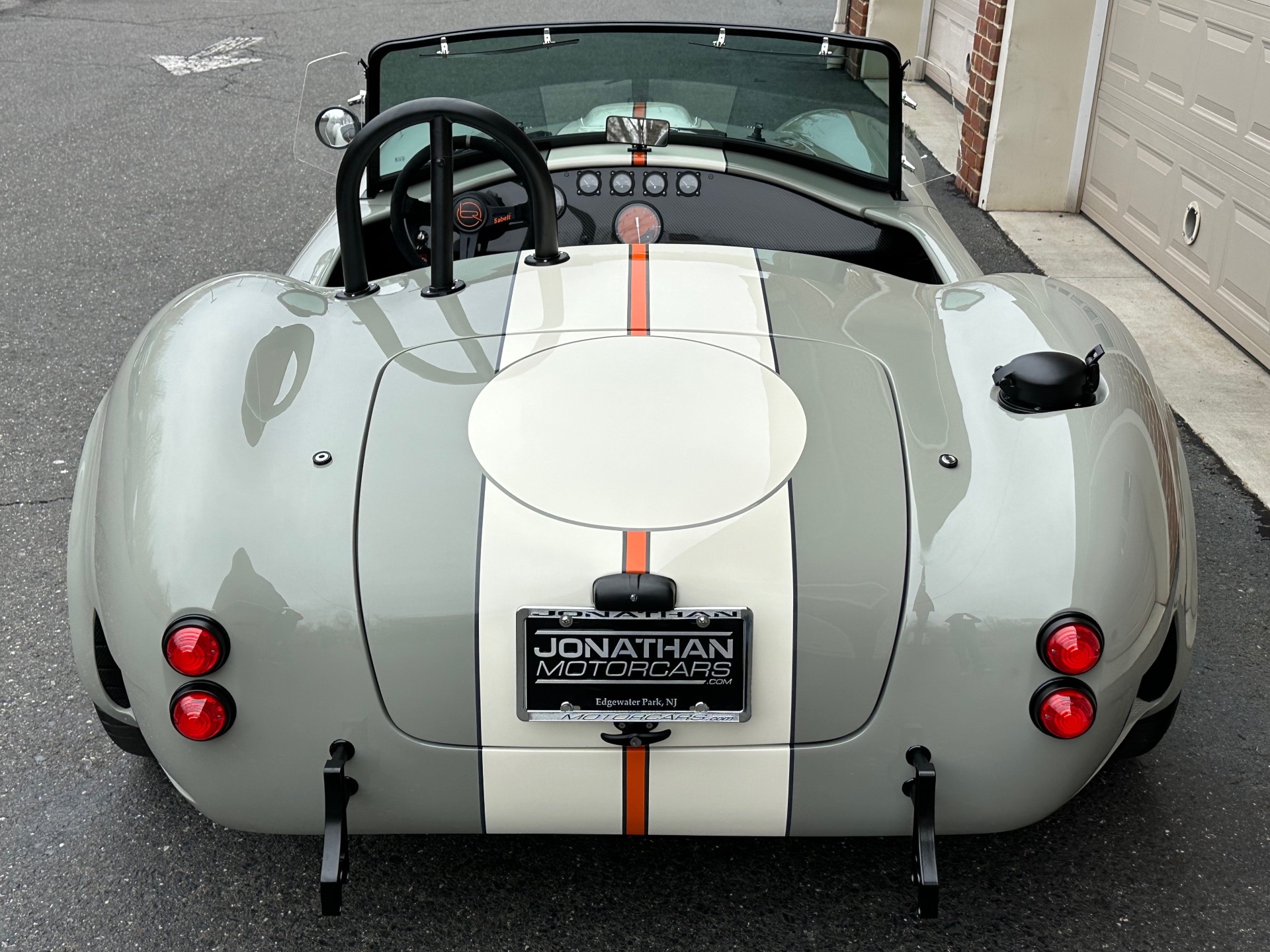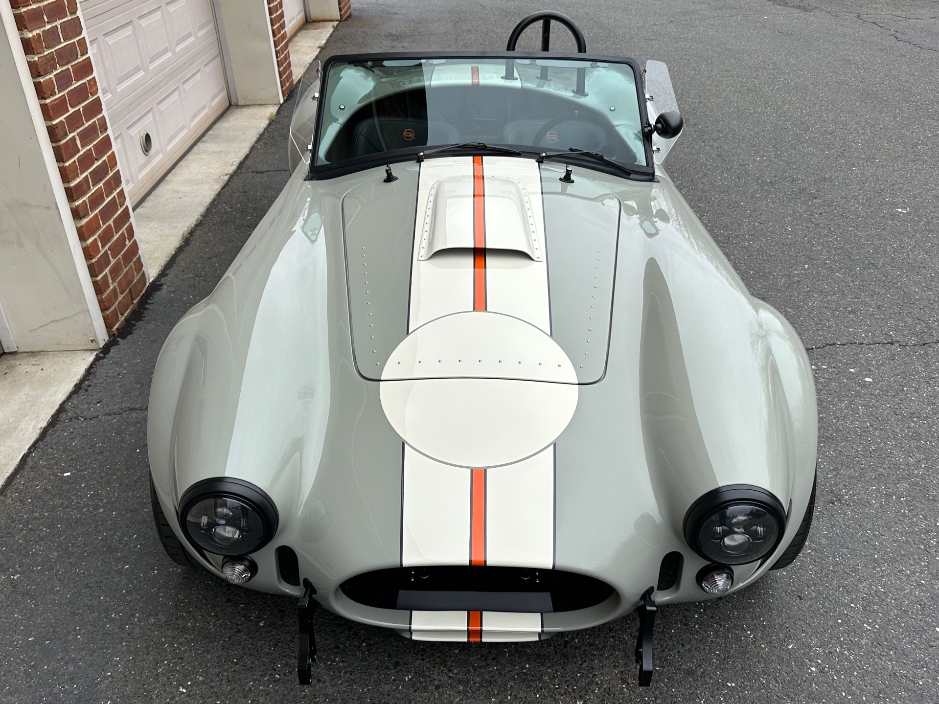 Featured at SEMA 2023 Backdraft Racing has arrived at JMC. We just could not resists this one. An unbelievable one of one backdraft cobra build. This is loaded with options and is done in the first ever Porsche fashion gray with a three color stripe. Wimbledon white, gulf orange, and grigio. Creating an awesome color combination on the cobra. Powered by the Roush 427IR 8 stack fuel injection engine making over 560 horse power. Some upgraded options included are power steering, big and tall edition, black and orange diagonal leather interior, carbon fiber dash, suede steering wheel, custom shift knob, cam lock style seat belts, painted engine compartment to match, paint protection, led headlights, removable hard top, wilwood big brake kit, remote brake and clutch reservoirs, oil cooler, the new GTR body, ceramic polish, aluminum gas tank powder coated black, night edition engine with custom painted valve covers and trumpets. This is a one of kind cobra available for purchase at Jonathan Motorcars. We have financing and can ship anywhere in the world. Call today!