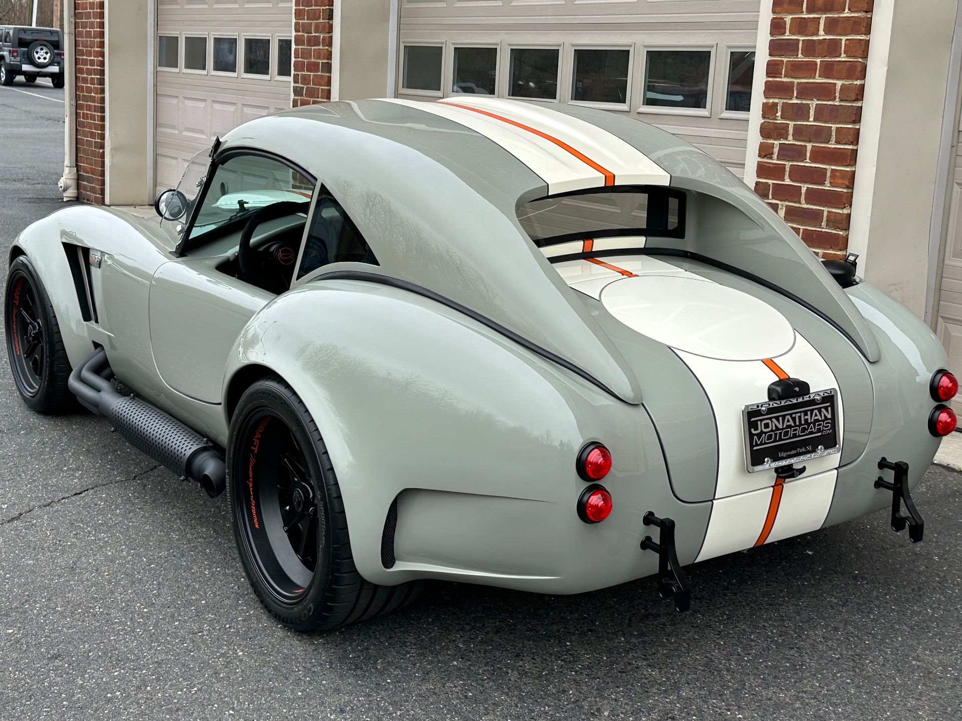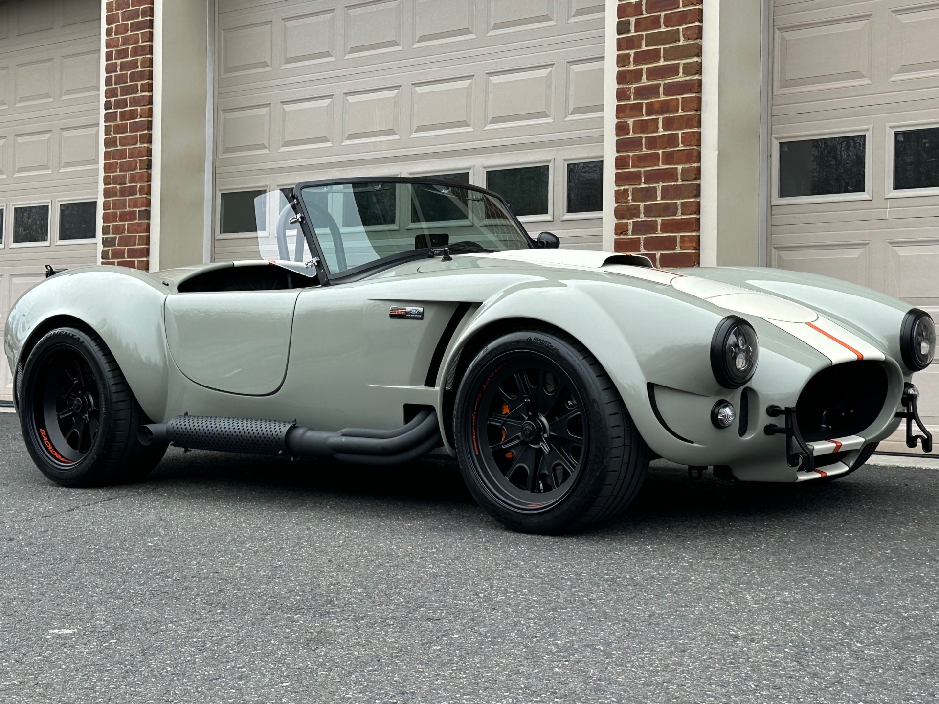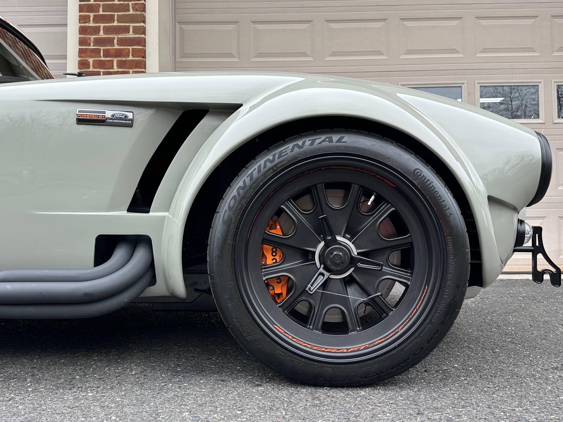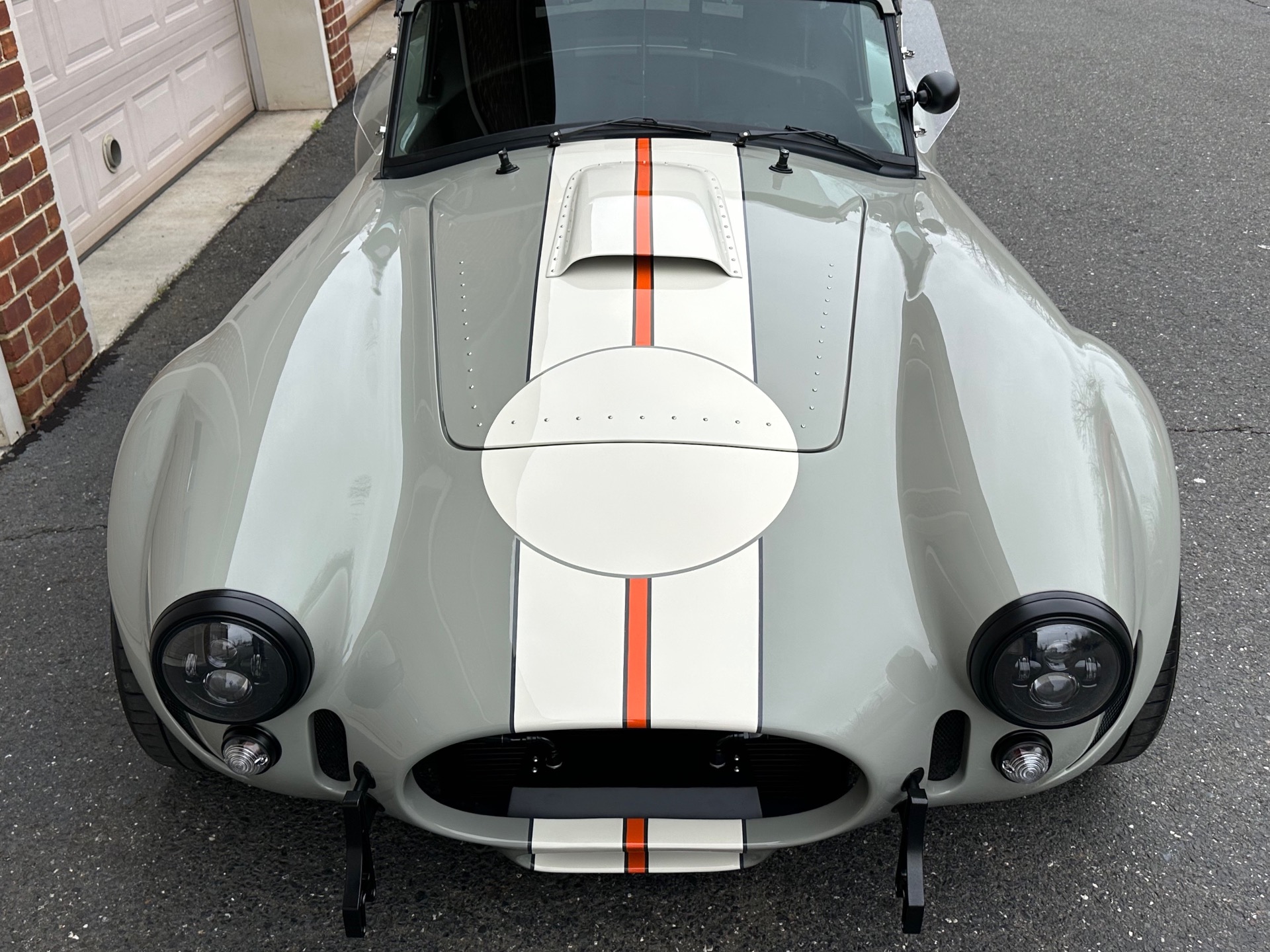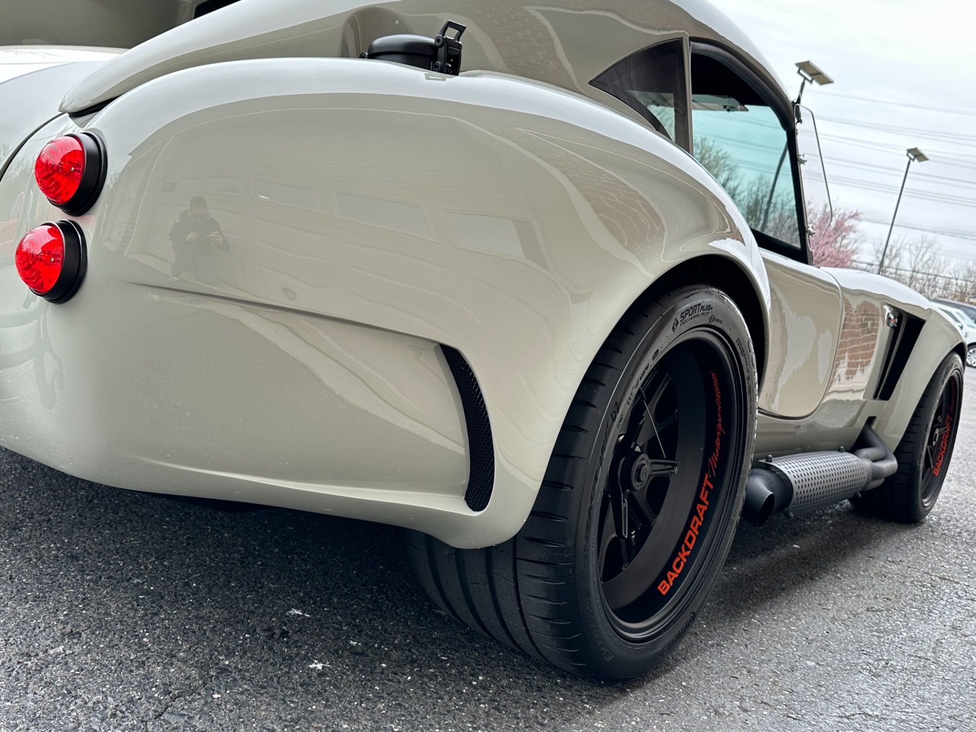 Featured at SEMA 2023 Backdraft Racing has arrived at JMC. We just could not resists this one. An unbelievable one of one backdraft cobra build. This is loaded with options and is done in the first ever Porsche fashion gray with a three color stripe. Wimbledon white, gulf orange, and grigio. Creating an awesome color combination on the cobra. Powered by the Roush 427IR 8 stack fuel injection engine making over 560 horse power. Some upgraded options included are power steering, big and tall edition, black and orange diagonal leather interior, carbon fiber dash, suede steering wheel, custom shift knob, cam lock style seat belts, painted engine compartment to match, paint protection, led headlights, removable hard top, wilwood big brake kit, remote brake and clutch reservoirs, oil cooler, the new GTR body, ceramic polish, aluminum gas tank powder coated black, night edition engine with custom painted valve covers and trumpets. This is a one of kind cobra available for purchase at Jonathan Motorcars. We have financing and can ship anywhere in the world. Call today!