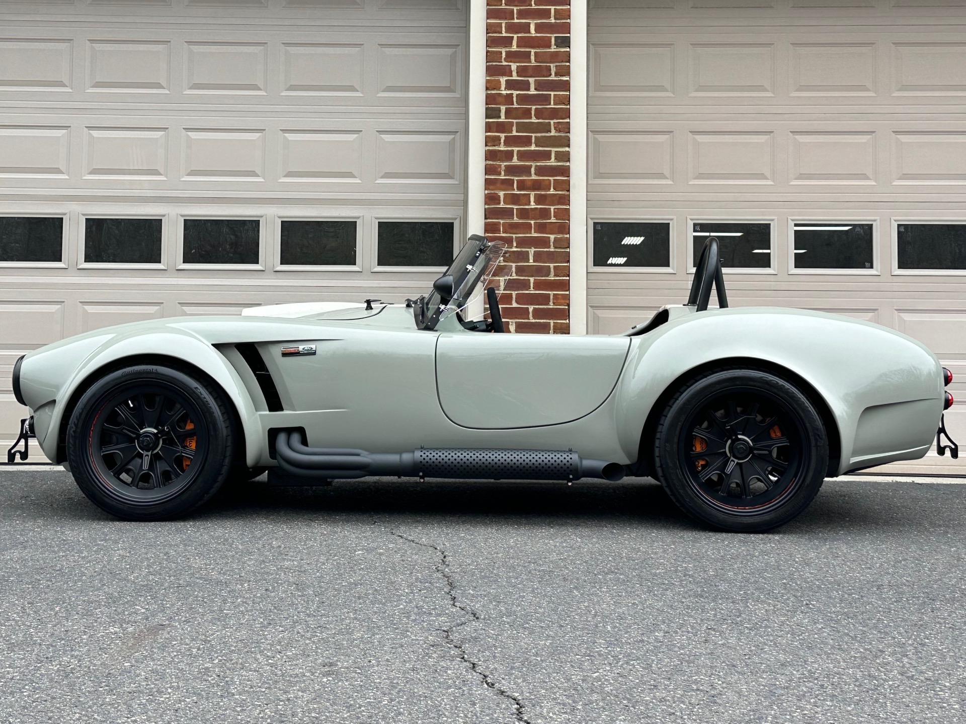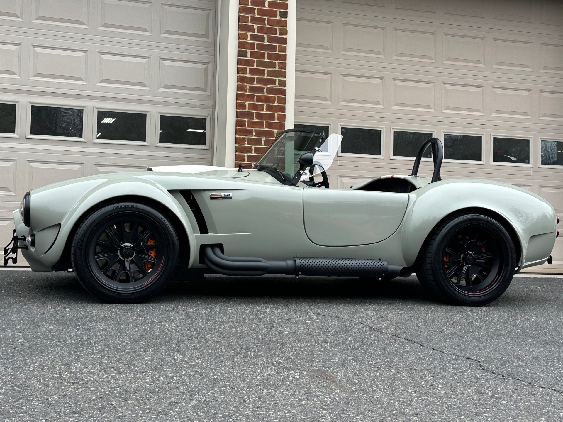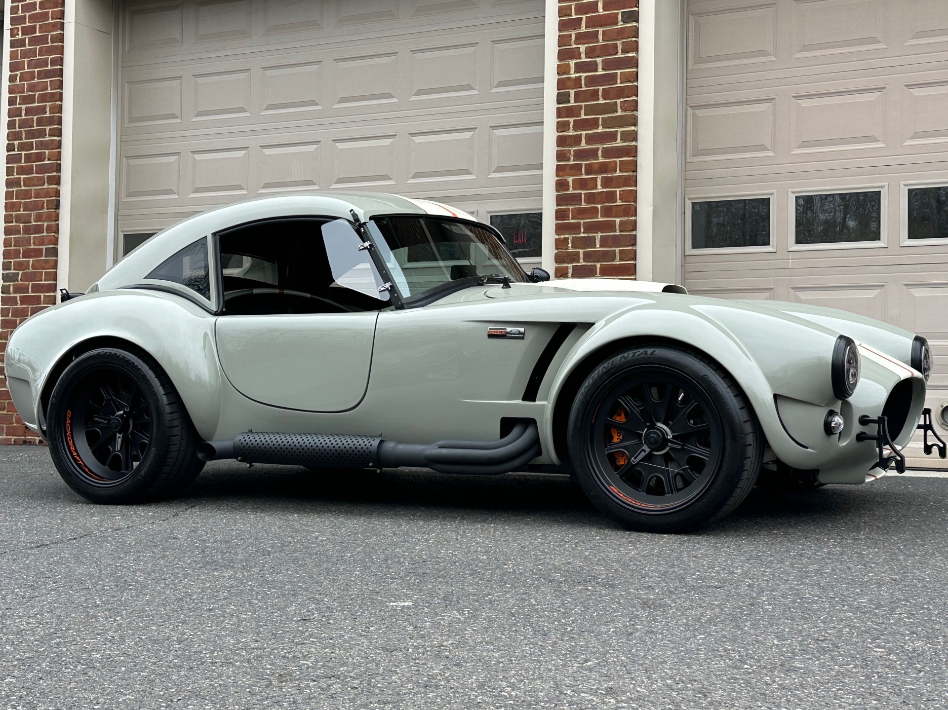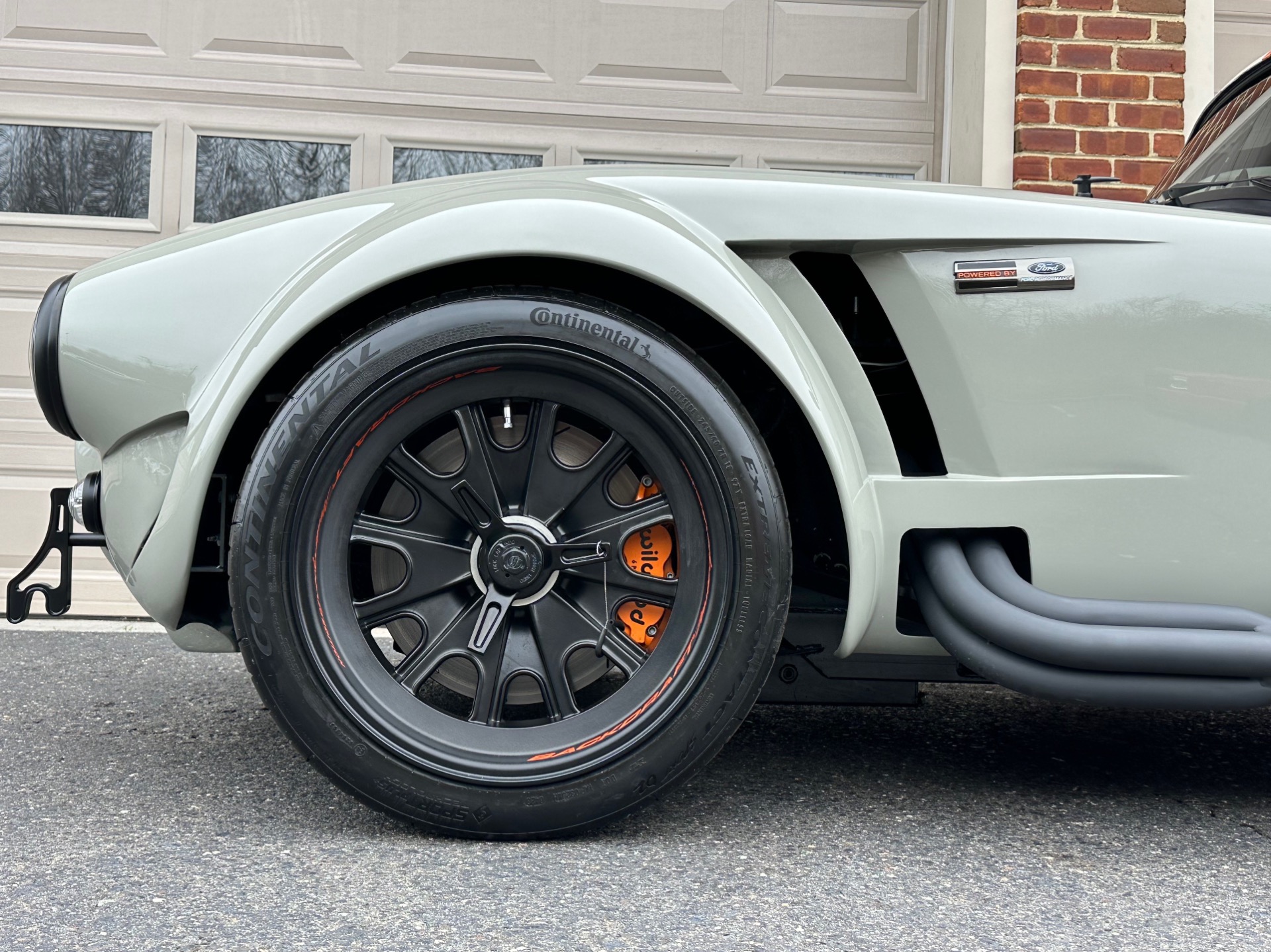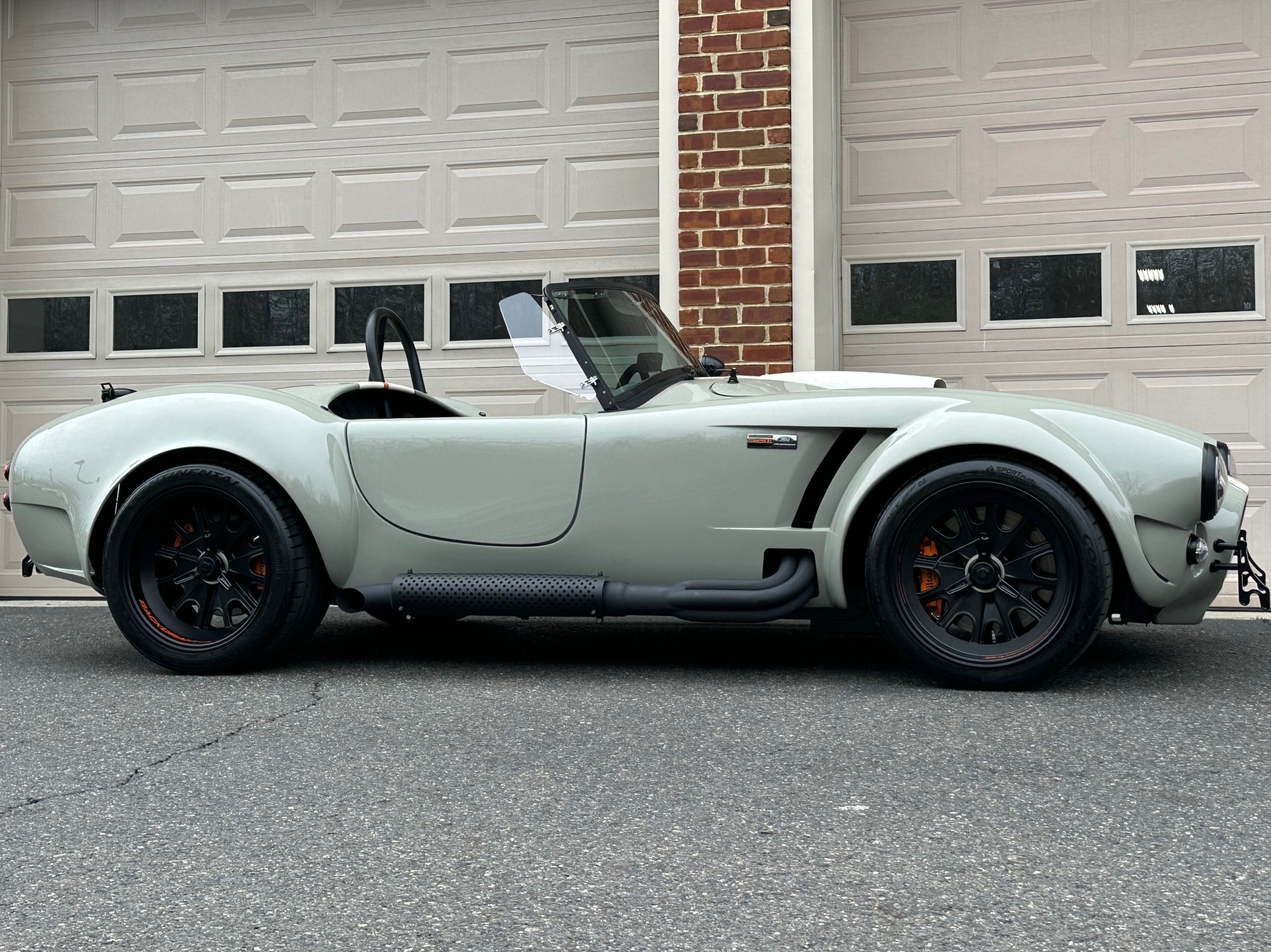 Featured at SEMA 2023 Backdraft Racing has arrived at JMC. We just could not resists this one. An unbelievable one of one backdraft cobra build. This is loaded with options and is done in the first ever Porsche fashion gray with a three color stripe. Wimbledon white, gulf orange, and grigio. Creating an awesome color combination on the cobra. Powered by the Roush 427IR 8 stack fuel injection engine making over 560 horse power. Some upgraded options included are power steering, big and tall edition, black and orange diagonal leather interior, carbon fiber dash, suede steering wheel, custom shift knob, cam lock style seat belts, painted engine compartment to match, paint protection, led headlights, removable hard top, wilwood big brake kit, remote brake and clutch reservoirs, oil cooler, the new GTR body, ceramic polish, aluminum gas tank powder coated black, night edition engine with custom painted valve covers and trumpets. This is a one of kind cobra available for purchase at Jonathan Motorcars. We have financing and can ship anywhere in the world. Call today!