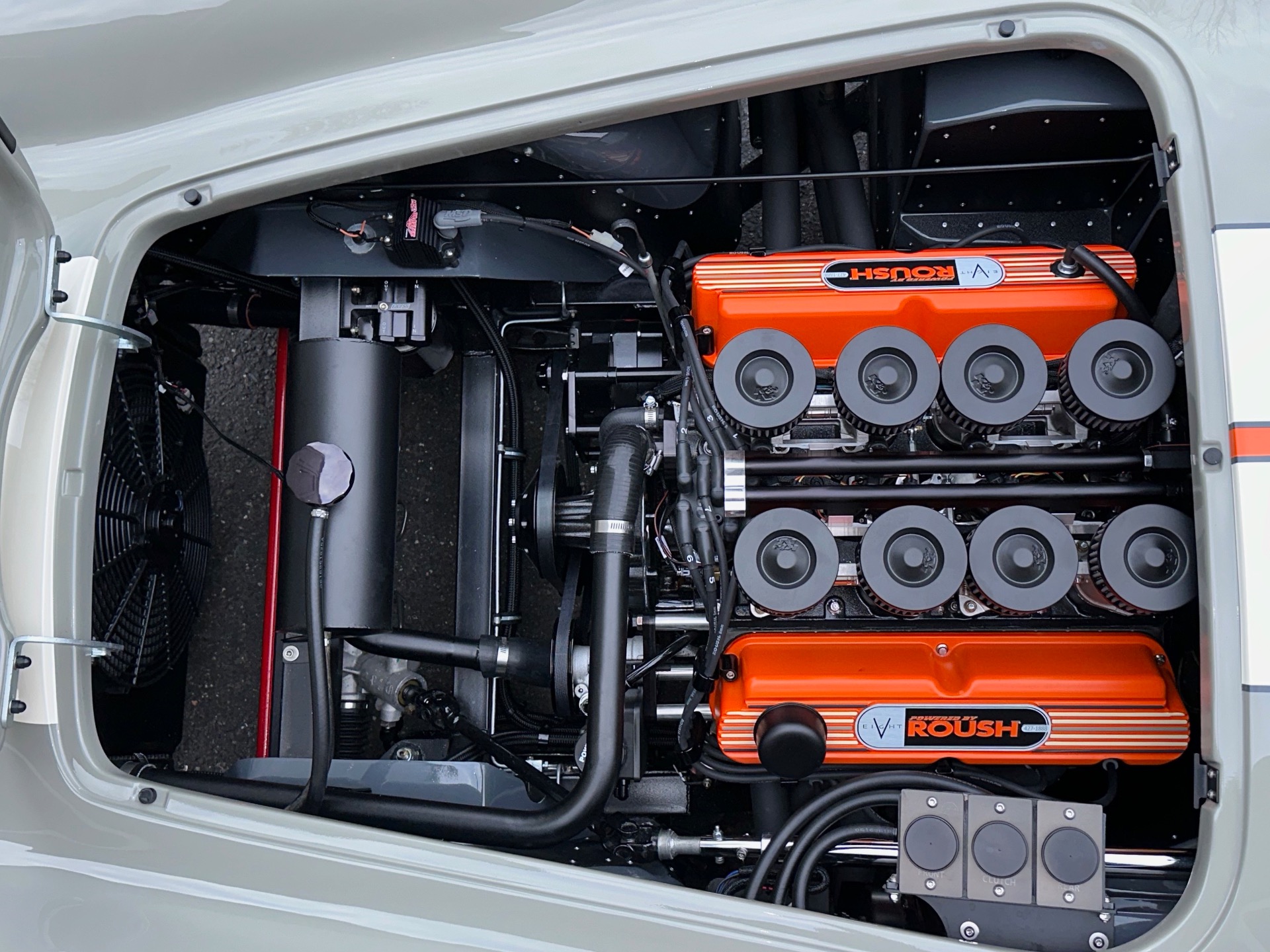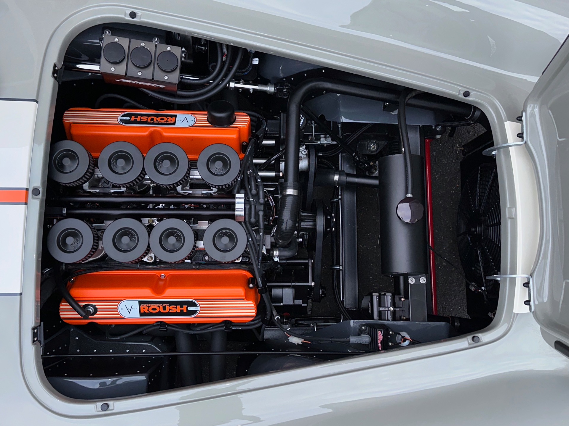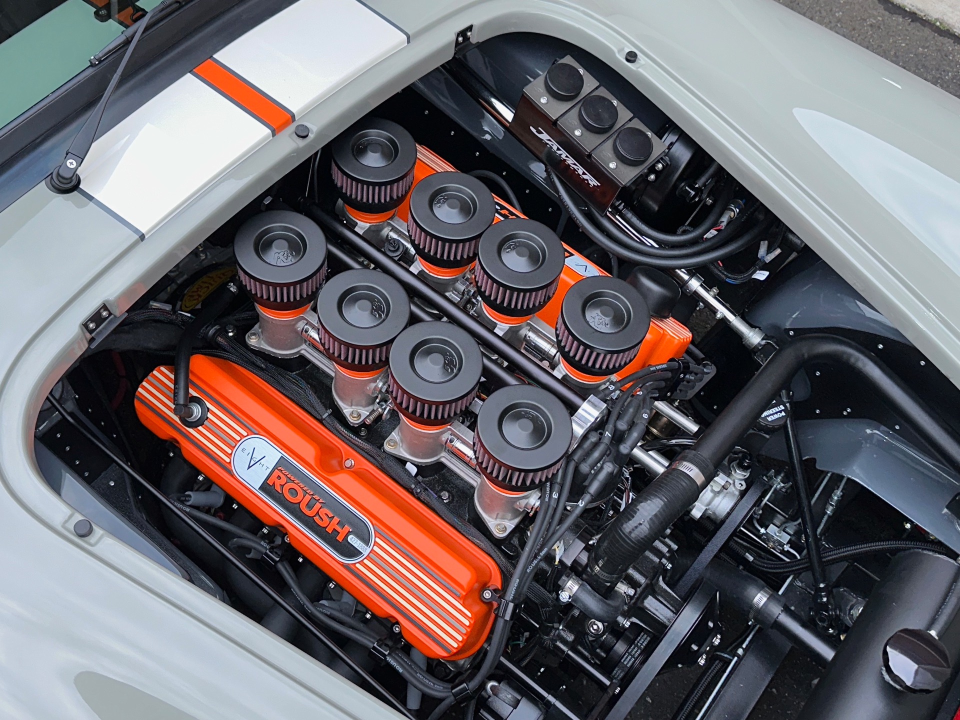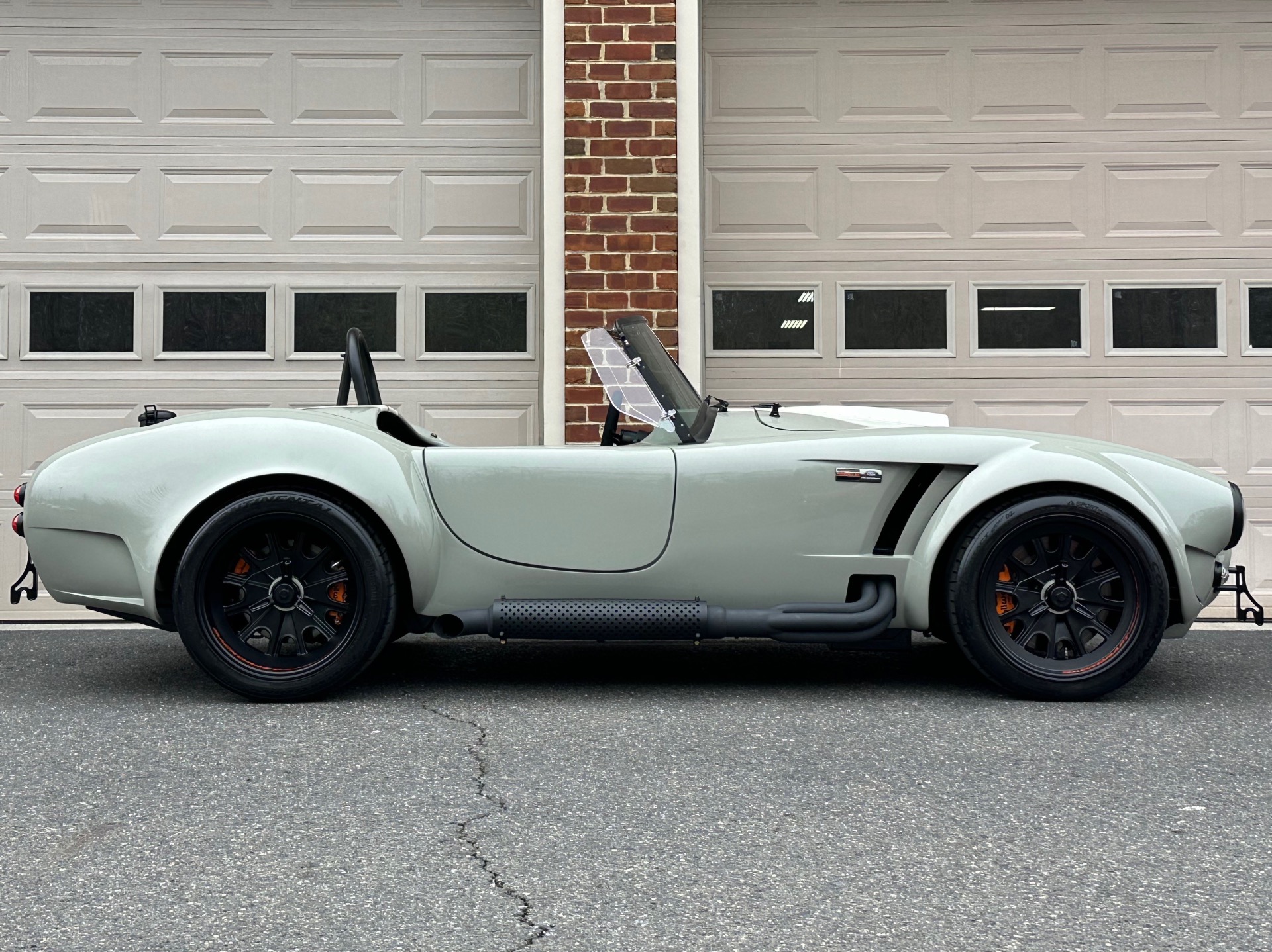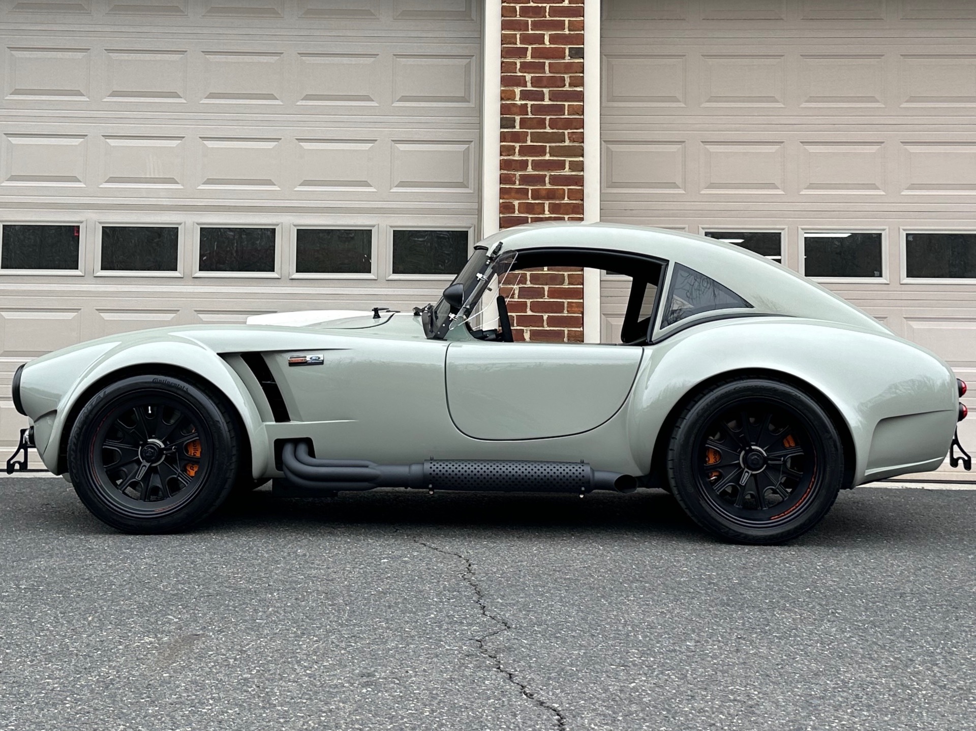 Featured at SEMA 2023 Backdraft Racing has arrived at JMC. We just could not resists this one. An unbelievable one of one backdraft cobra build. This is loaded with options and is done in the first ever Porsche fashion gray with a three color stripe. Wimbledon white, gulf orange, and grigio. Creating an awesome color combination on the cobra. Powered by the Roush 427IR 8 stack fuel injection engine making over 560 horse power. Some upgraded options included are power steering, big and tall edition, black and orange diagonal leather interior, carbon fiber dash, suede steering wheel, custom shift knob, cam lock style seat belts, painted engine compartment to match, paint protection, led headlights, removable hard top, wilwood big brake kit, remote brake and clutch reservoirs, oil cooler, the new GTR body, ceramic polish, aluminum gas tank powder coated black, night edition engine with custom painted valve covers and trumpets. This is a one of kind cobra available for purchase at Jonathan Motorcars. We have financing and can ship anywhere in the world. Call today!