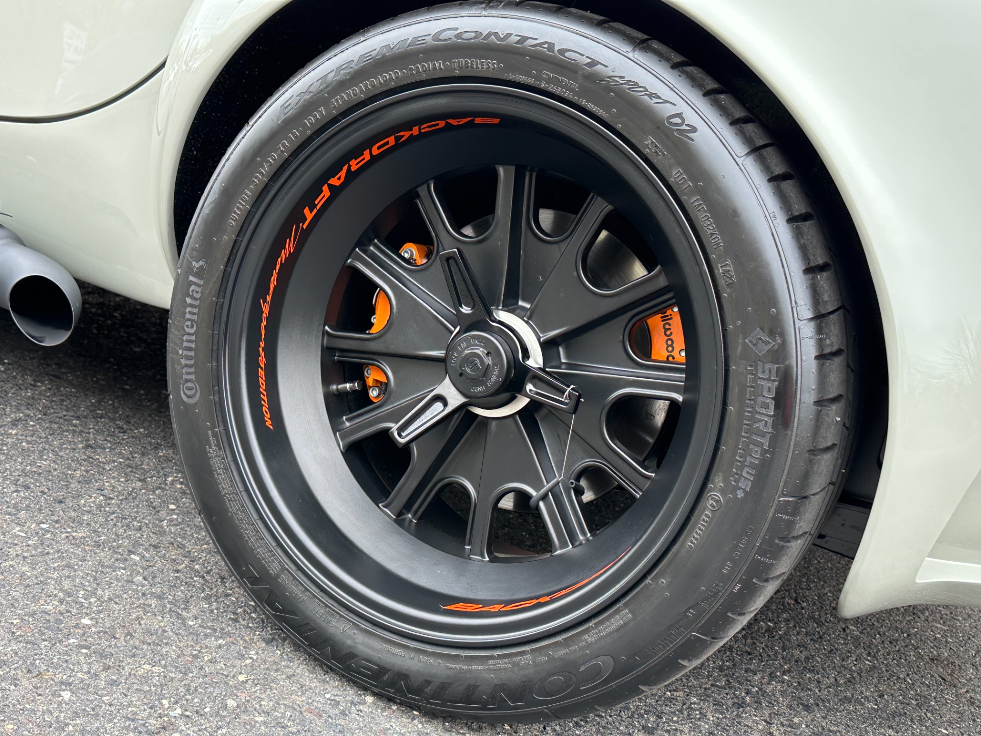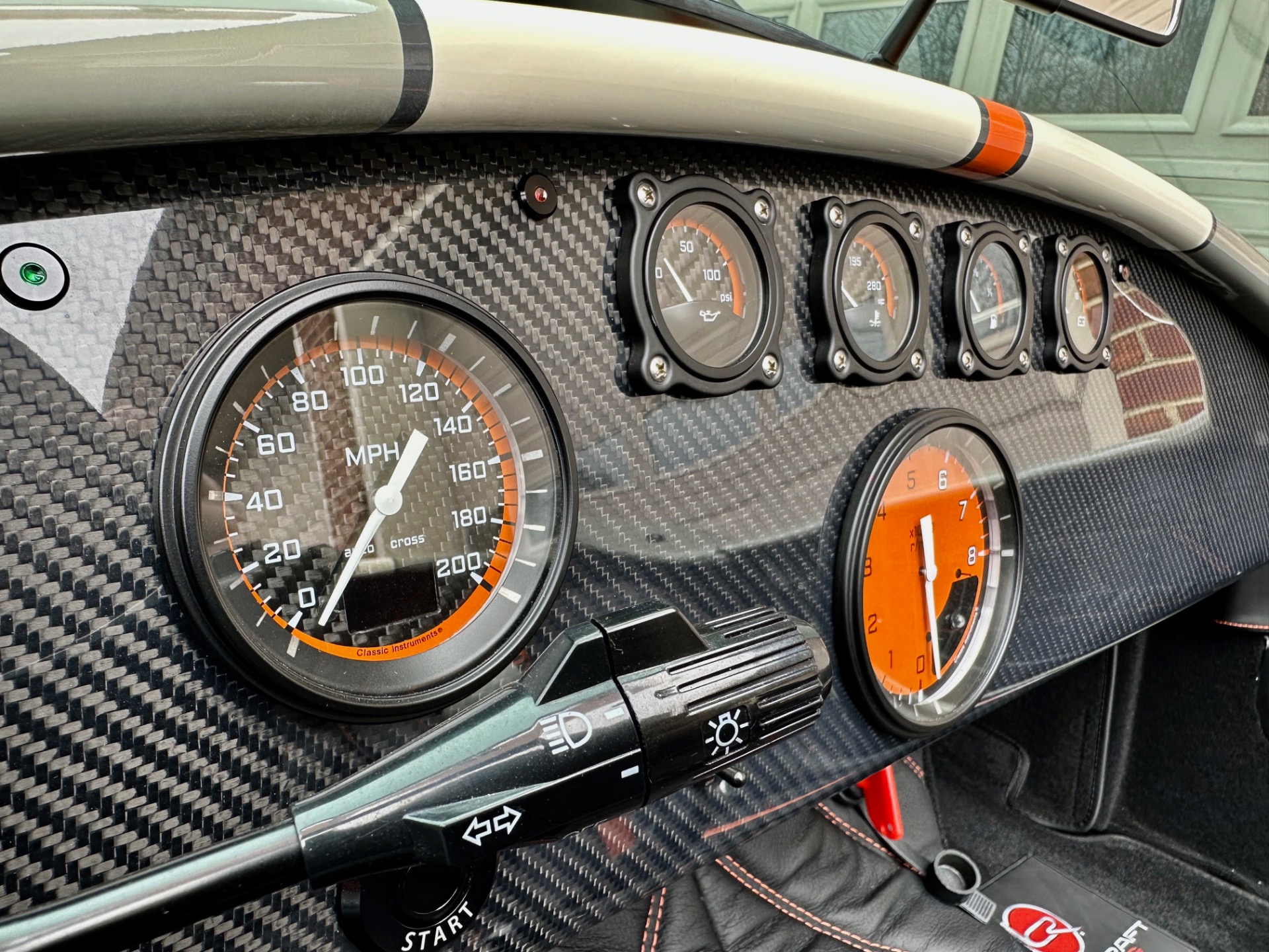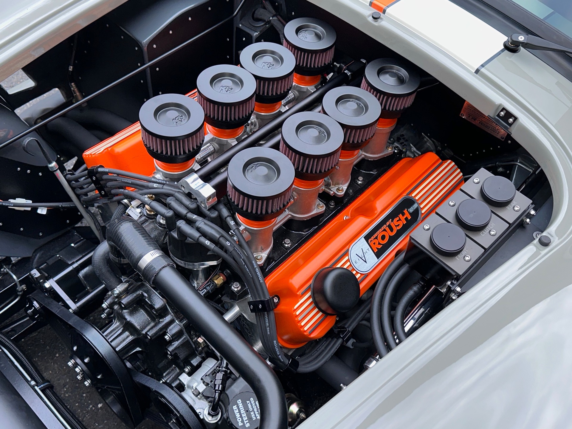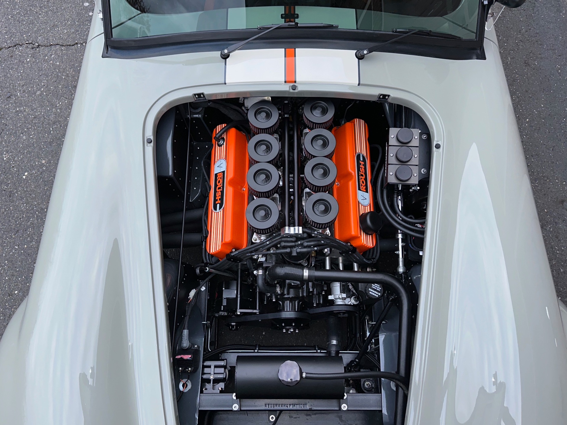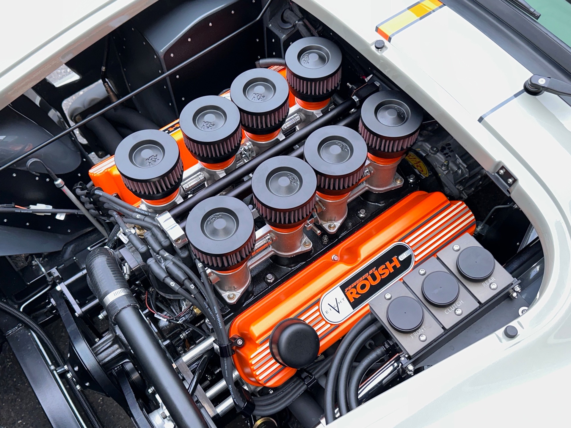 Featured at SEMA 2023 Backdraft Racing has arrived at JMC. We just could not resists this one. An unbelievable one of one backdraft cobra build. This is loaded with options and is done in the first ever Porsche fashion gray with a three color stripe. Wimbledon white, gulf orange, and grigio. Creating an awesome color combination on the cobra. Powered by the Roush 427IR 8 stack fuel injection engine making over 560 horse power. Some upgraded options included are power steering, big and tall edition, black and orange diagonal leather interior, carbon fiber dash, suede steering wheel, custom shift knob, cam lock style seat belts, painted engine compartment to match, paint protection, led headlights, removable hard top, wilwood big brake kit, remote brake and clutch reservoirs, oil cooler, the new GTR body, ceramic polish, aluminum gas tank powder coated black, night edition engine with custom painted valve covers and trumpets. This is a one of kind cobra available for purchase at Jonathan Motorcars. We have financing and can ship anywhere in the world. Call today!