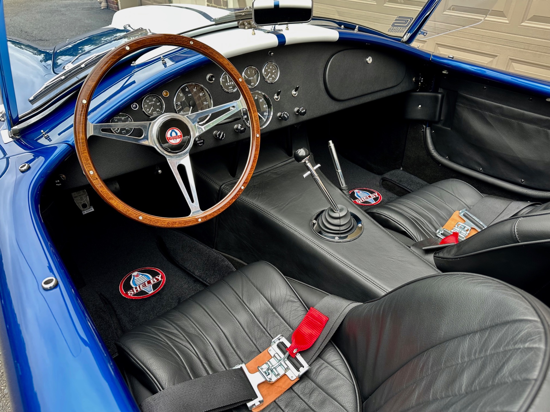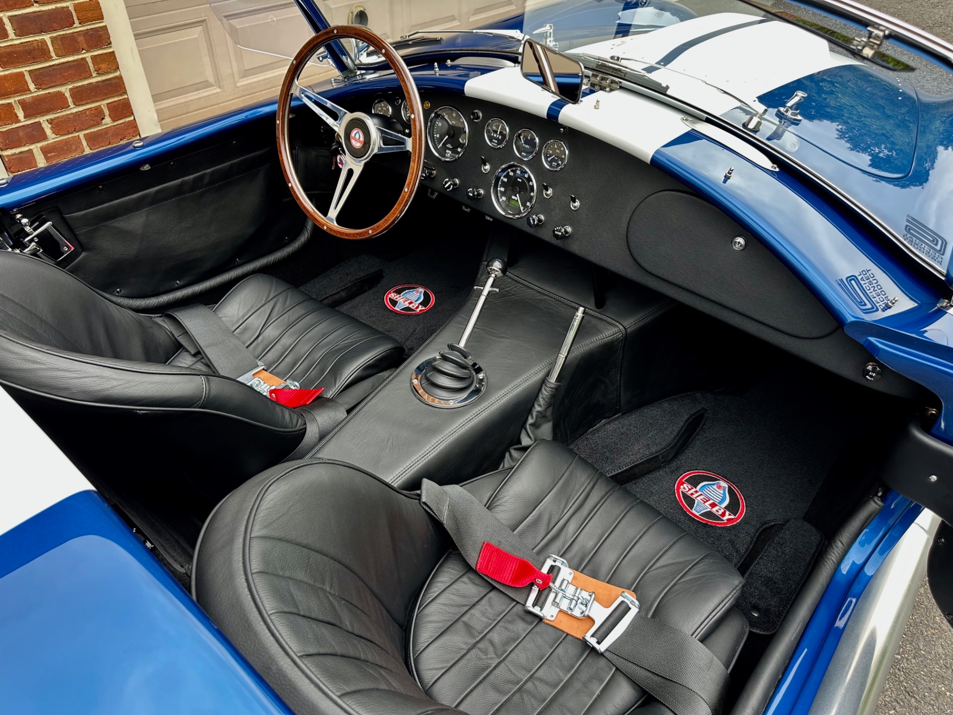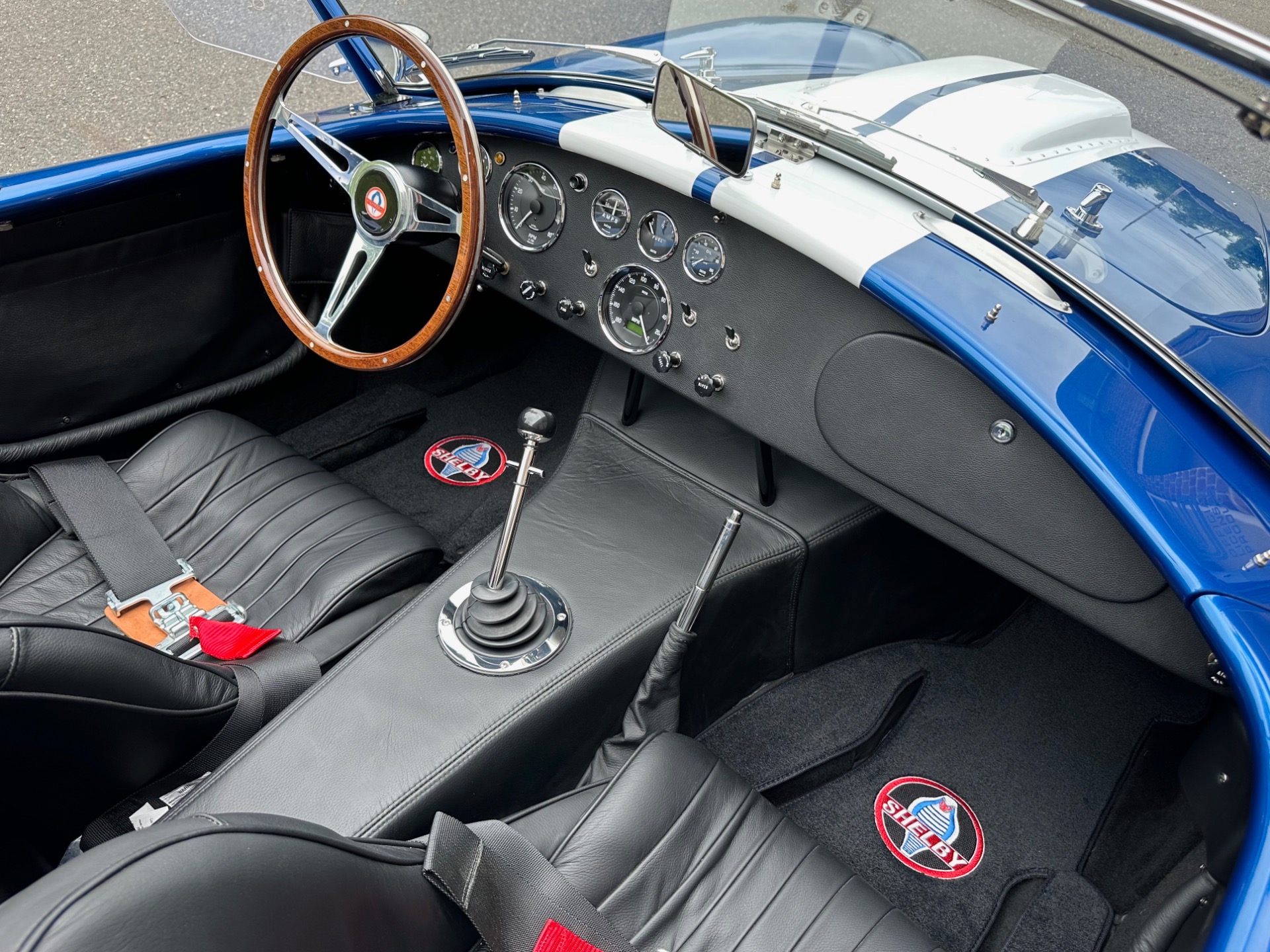 Introducing the stunning 1965 Superformance Cobra MKIII, now available for sale at Jonathan Motorcars. This exceptional vehicle is a true masterpiece, boasting a powerful Ford 427 engine that delivers an exhilarating performance on the road. Dressed in a captivating Lightning Blue paint color with striking white racing stripes, this Cobra is sure to turn heads wherever it goes. Step inside the cockpit and you'll be greeted by a luxurious Black Leather interior that exudes elegance and comfort. The attention to detail is evident throughout the cabin, showcasing the fine craftsmanship that went into creating this iconic sports car. But the beauty of this Cobra isn't just skin deep. Under the hood lies the heart of the beast - a Prestige Motorsports 427 engine that churns out over 500HP, providing an adrenaline-pumping driving experience like no other. This turnkey Cobra is ready for immediate delivery, allowing you to hit the road and enjoy the thrill of driving a true classic.In addition to its impressive performance, this Superformance MKIII Cobra comes equipped with a range of special features that enhance its appeal. From power steering for added convenience to 3M paint protection for long-lasting beauty, every detail has been carefully considered to ensure a top-notch driving experience. One of the standout upgrades on this Cobra is the set of upgraded 18-inch polished aluminum Shelby racing wheels, which not only enhance the vehicle's aesthetics but also improve its handling and performance on the road. These wheels are a testament to the quality and attention to detail that went into building this exceptional machine. When it comes to purchasing a hand-built race car like the Superformance Cobra MKIII, it's essential to trust the expertise of both the builder and the dealer. Jonathan Motorcars has been a trusted name in the industry for over 13 years, specializing in selling high-quality Cobras that meet the highest standards of excellence. With a commitment to customer satisfaction, you can rest assured that your purchase will be a smooth and enjoyable experience from start to finish. If you're interested in owning this exceptional 1965 Superformance Cobra MKIII, don't hesitate to reach out to our sales team at Jonathan Motorcars. We offer financing options to make your dream of owning a classic Cobra a reality. Contact us today with any questions or to schedule a test drive. Experience the thrill of driving a legendary sports car with the Superformance Cobra MKIII from Jonathan Motorcars.