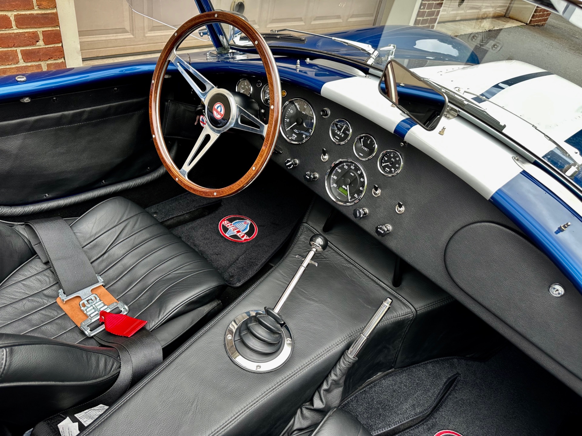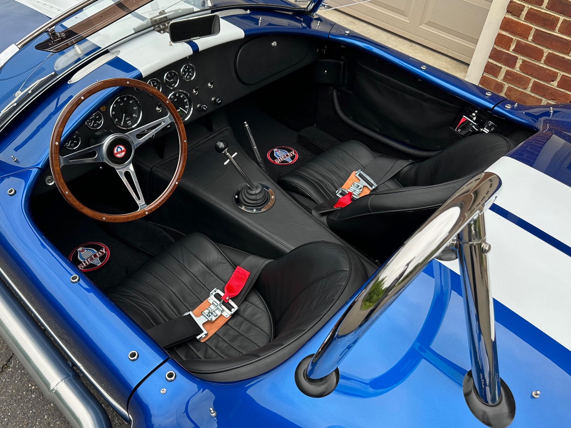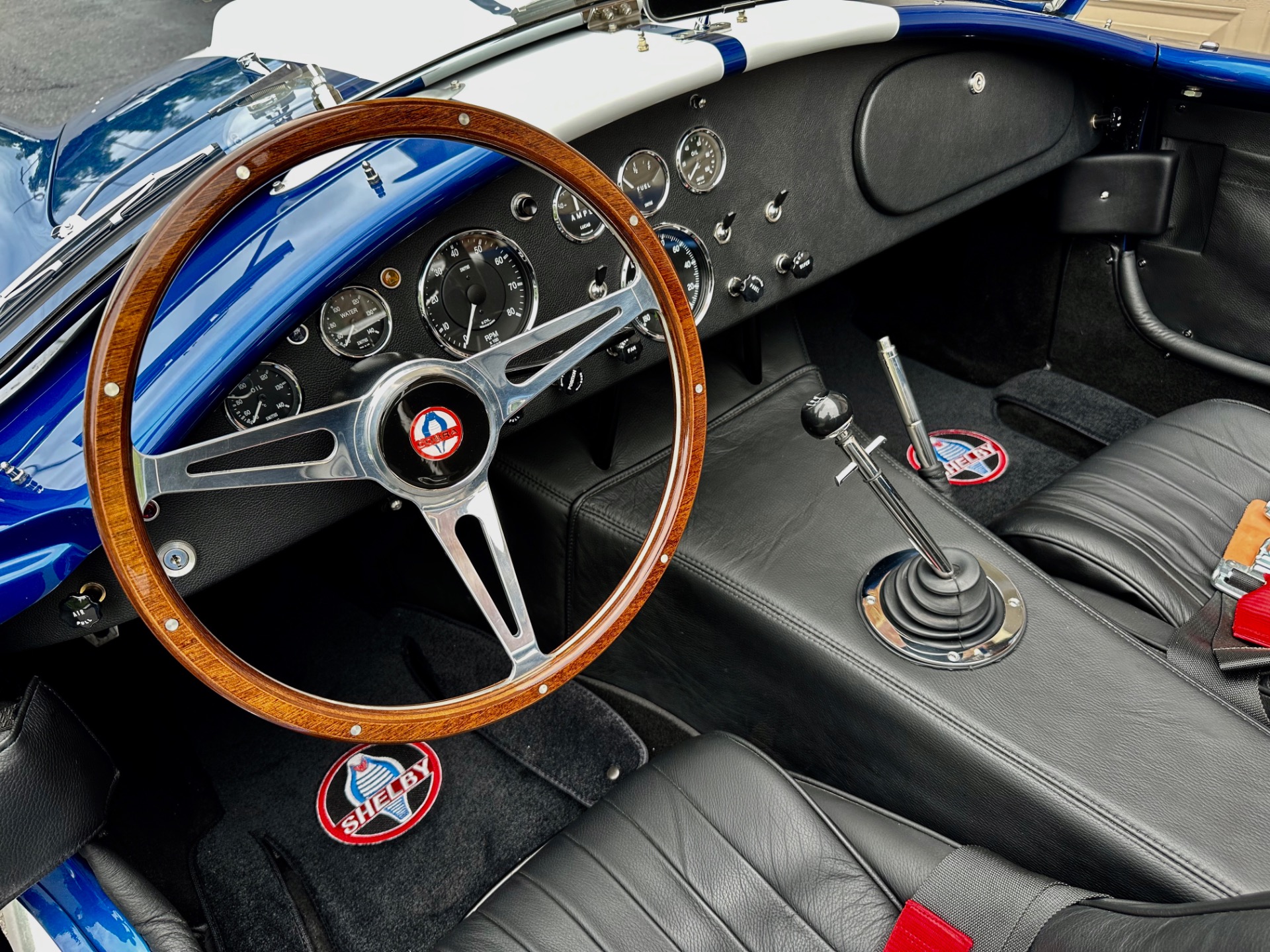 Introducing the stunning 1965 Superformance Cobra MKIII, now available for sale at Jonathan Motorcars. This exceptional vehicle is a true masterpiece, boasting a powerful Ford 427 engine that delivers an exhilarating performance on the road. Dressed in a captivating Lightning Blue paint color with striking white racing stripes, this Cobra is sure to turn heads wherever it goes. Step inside the cockpit and you'll be greeted by a luxurious Black Leather interior that exudes elegance and comfort. The attention to detail is evident throughout the cabin, showcasing the fine craftsmanship that went into creating this iconic sports car. But the beauty of this Cobra isn't just skin deep. Under the hood lies the heart of the beast - a Prestige Motorsports 427 engine that churns out over 500HP, providing an adrenaline-pumping driving experience like no other. This turnkey Cobra is ready for immediate delivery, allowing you to hit the road and enjoy the thrill of driving a true classic.In addition to its impressive performance, this Superformance MKIII Cobra comes equipped with a range of special features that enhance its appeal. From power steering for added convenience to 3M paint protection for long-lasting beauty, every detail has been carefully considered to ensure a top-notch driving experience. One of the standout upgrades on this Cobra is the set of upgraded 18-inch polished aluminum Shelby racing wheels, which not only enhance the vehicle's aesthetics but also improve its handling and performance on the road. These wheels are a testament to the quality and attention to detail that went into building this exceptional machine. When it comes to purchasing a hand-built race car like the Superformance Cobra MKIII, it's essential to trust the expertise of both the builder and the dealer. Jonathan Motorcars has been a trusted name in the industry for over 13 years, specializing in selling high-quality Cobras that meet the highest standards of excellence. With a commitment to customer satisfaction, you can rest assured that your purchase will be a smooth and enjoyable experience from start to finish. If you're interested in owning this exceptional 1965 Superformance Cobra MKIII, don't hesitate to reach out to our sales team at Jonathan Motorcars. We offer financing options to make your dream of owning a classic Cobra a reality. Contact us today with any questions or to schedule a test drive. Experience the thrill of driving a legendary sports car with the Superformance Cobra MKIII from Jonathan Motorcars.