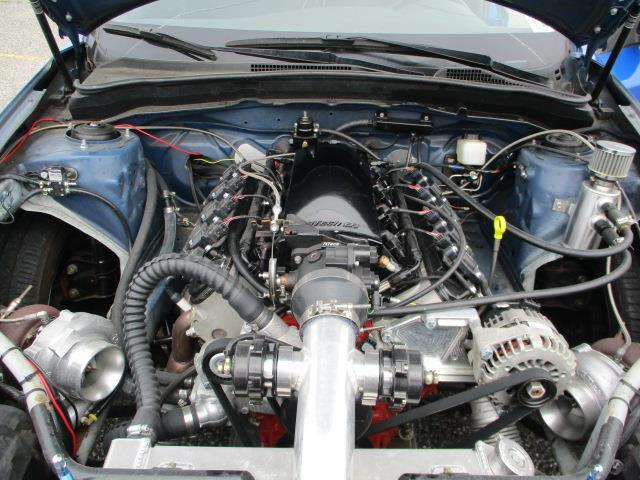 Only 25,000 original miles on the body and one owner. The car was dyno tuned by Dereck Burton at Bootleg Tuned in New Haven - Brand New Crate 5.3 liter built for boost with all paperwork -street fire coil packs -accel porcelain spark plug wires -stock water pump 160 thermostat -Is3 coil brackets -evil catch can 10an -Be cool racing aluminum tucked radiator, custom radiator hoses and plumbing -sikky front sump 6.8qt oil pan and pickup tube -speedway motors oil filter re location kit -tci flex-plate -truck drive spacing components -ict alternator bracket -large case 1 wire Is alternator -factory Is1 tensioner TRANSMISSION -FTI level 4 th400 reverse manual valve body -fti converter -derale trans cooler -B&M stealth pro ratchet shifter &cable -mr driveshaft custom driveshaft FUEL & MANAGMENT -fueltech ft550 stand alone engine management -Weldon 1100A external fuel pump -Holley 120lb injectors -Holley fuel filters -15 gallon fuel cell -10an feed line -8an return line -10an fuel line loop TURBO KIT -One off Haggard fabrication twin turbo kit hot side/cold side -One off Ackerman racing intercooler pluming -on3 performance 70 twin turbos brand new -twin tial 44mm waste gate 15lb spring -twin vs racing x50mm blow off valve -turbo smart 4 port Mac valve -digital boost gauges BODY -Haggard fabrication tubular front end -tss fabrication tubular Is subframe -tss fabrication subframe support connectors and bracing -tss fabrication motor mounts -Sti full suspension/brake swap -new oem spindals -new oem front hubs -one off machined axle stubs for front hubs for rwd conversion.