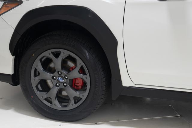 The exterior of the 2021 Subaru Crosstrek Sport exudes a sense of ruggedness and readiness for adventure. It distinguishes itself with a more aggressive front grille, dark gray wheel arches, and unique 17-inch dark gray finish alloy wheels, all of which contribute to its bold and athletic appearance. The Sport trim also features LED fog lights and a gunmetal finish on select exterior accents, including the side mirrors and badges, enhancing its sporty and distinctive look. The standard roof rails not only accentuate its adventurous profile but also offer practical utility for carrying bikes, kayaks, or cargo carriers.