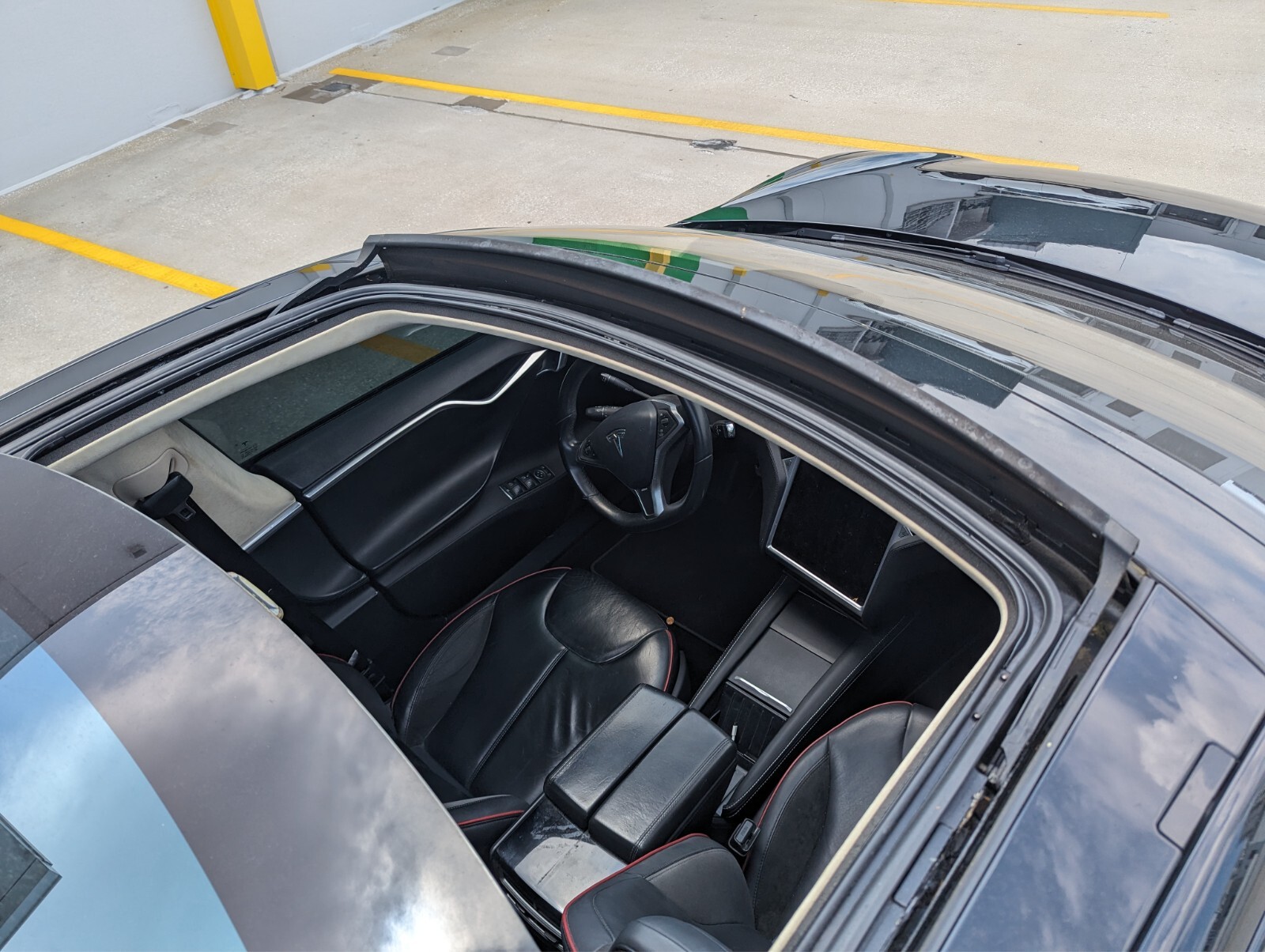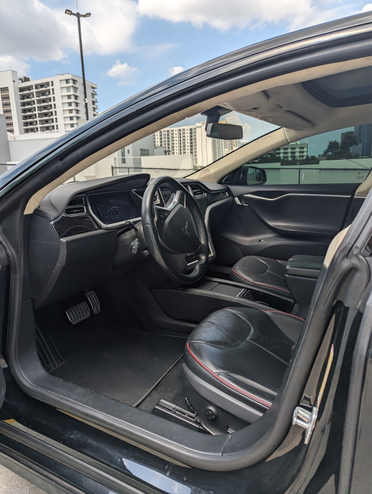 Rare OG low mileage performance Model S P85+. Looking for a car that you can go get the groceries and maybe take down a supercar on the way? This is truly a driving enthusiast's car. Lots of unique features & upgrades: Full Performance Package, HUGE factory sunroof(not available on any other Tesla models), factory air ride suspension, 22” Turbine Wheels, aftermarket chrome delete upgrade, aftermarket center console upgrade, aftermarket ceramic tint upgrade. The car has been maliciously cared for. All maintenance, warranty work and available factory replacements have been done. Rear drive unit was replaced 35K miles, main computer replaced, main screen and drivers screen replaced with newer screens that do not delaminate. Small scratches rear see pic. Home charger included. Car may qualify for additional 4,000 tax credit.