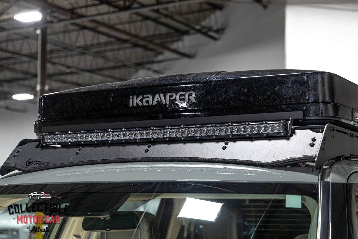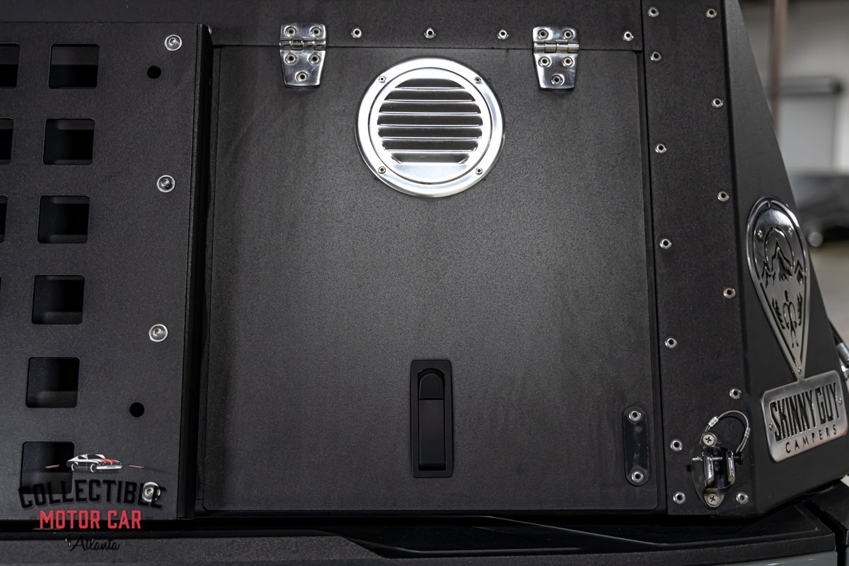 But that's just the beginning. Attached to the durable Prinsu rack is a sleek Heretic light bar that cuts through darkness like a knife through butter, ensuring your path is always well-lit. The truck also sports an iKamper Mini 3, perfect for spontaneous weekend getaways or extended stays in the wilderness, providing cozy, convenient shelter wherever you park.