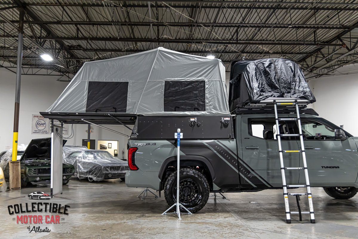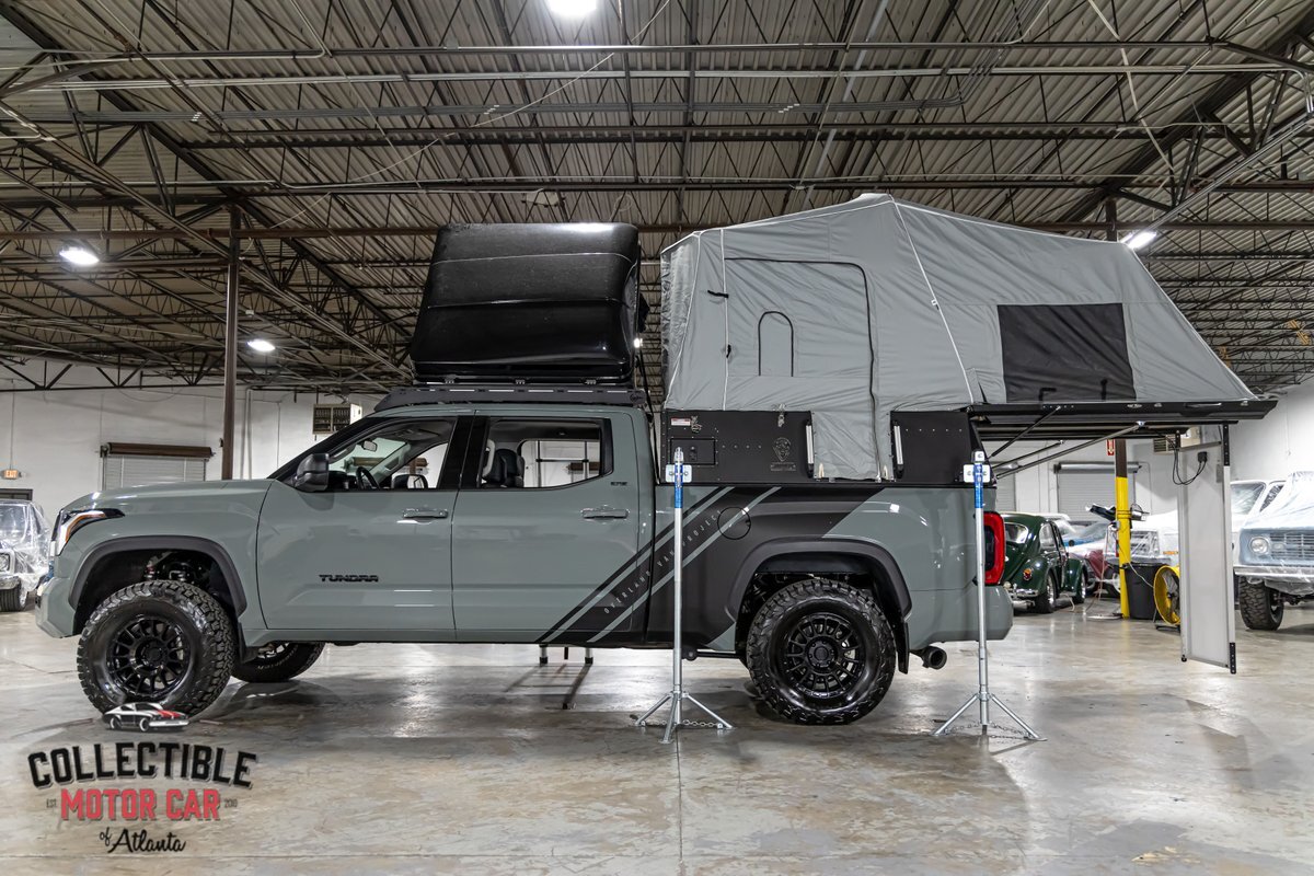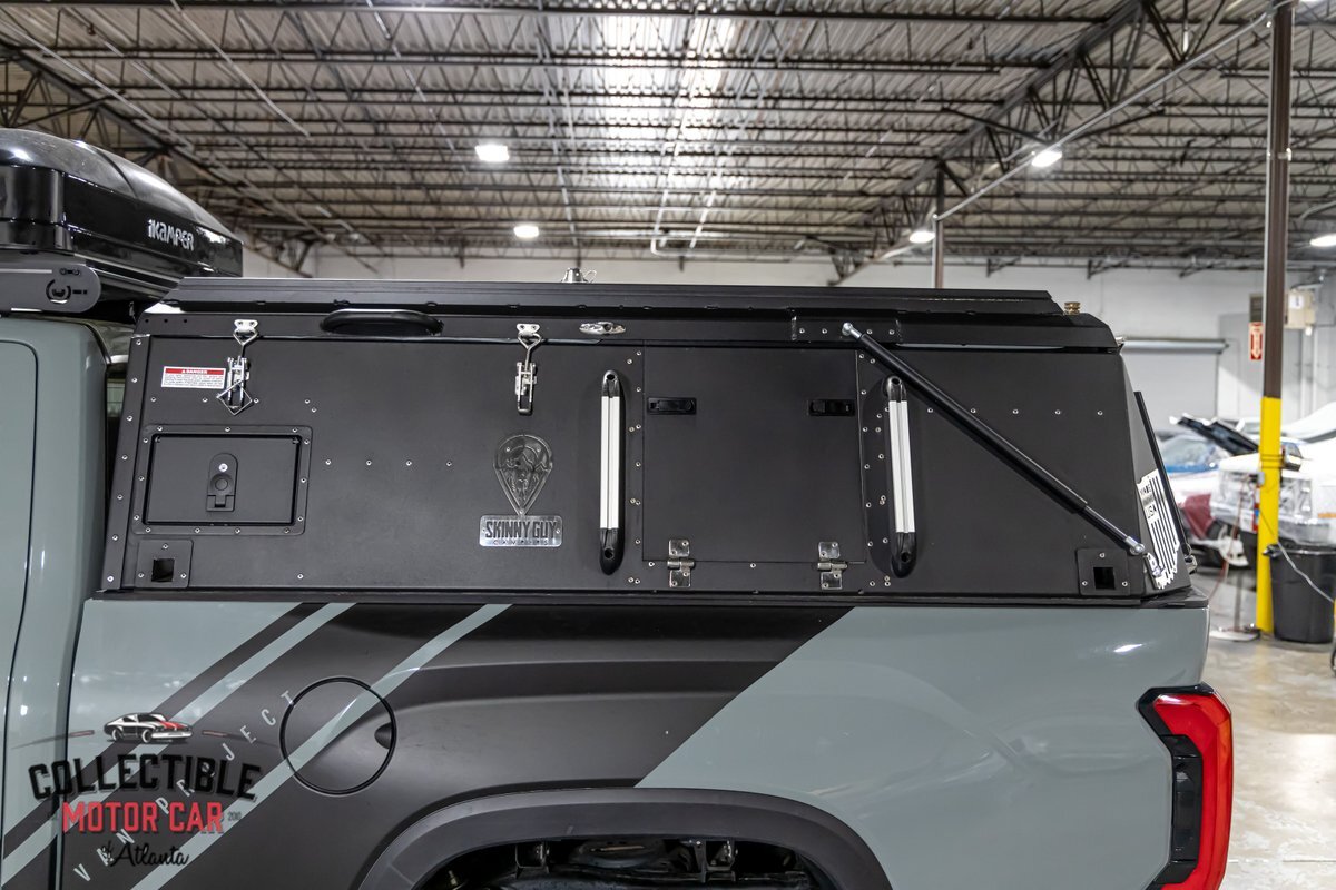 The piece de resistance is the Skinny Guy Camper 6.5, Kit n Kabootle spec-a $42k value on its own-transforming this Tundra into a mobile base camp. Whether you're fishing, hunting, or just escaping the city, this camper has all you need for a comfortable, secure home away from home.