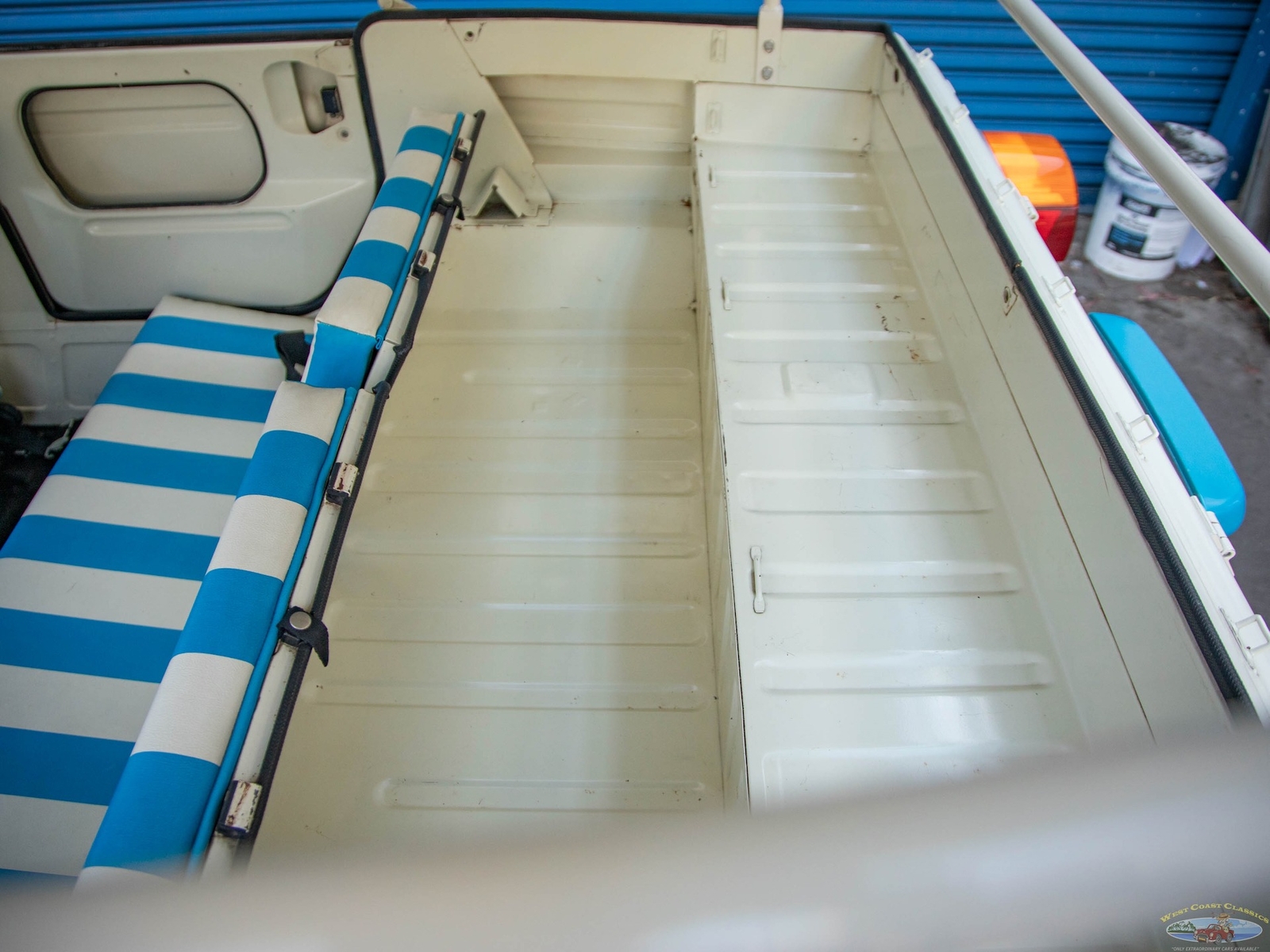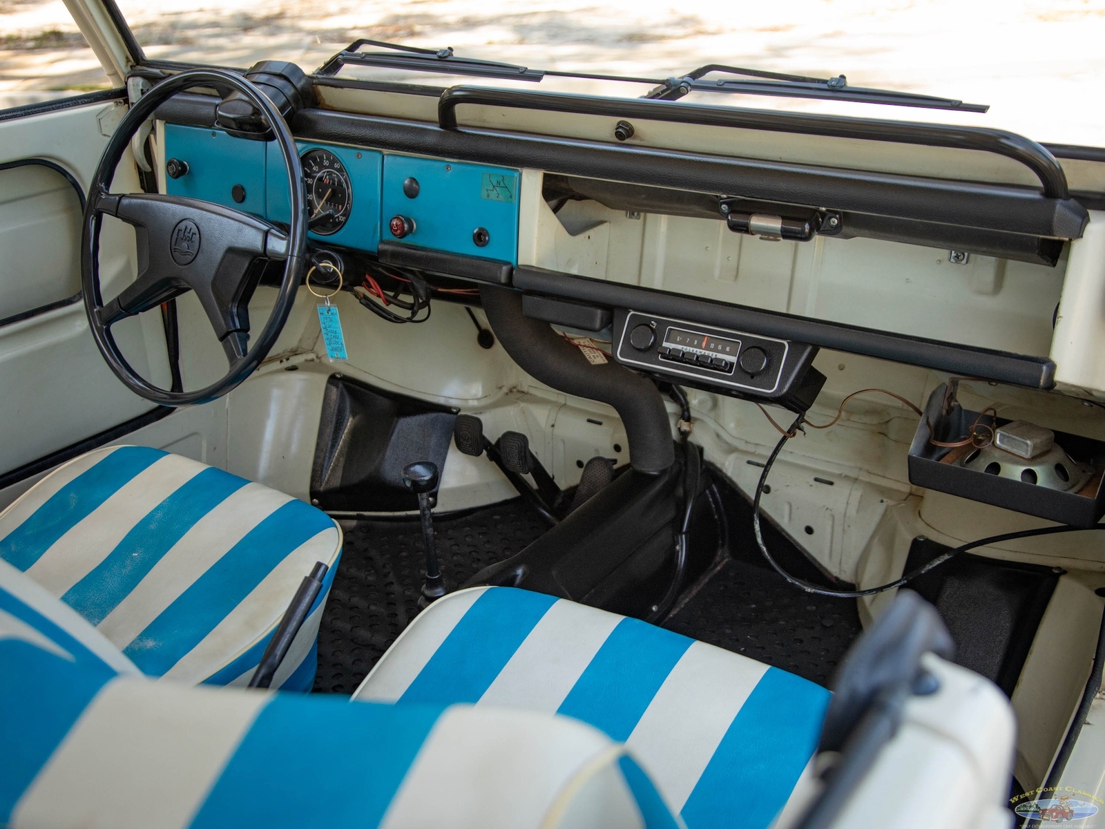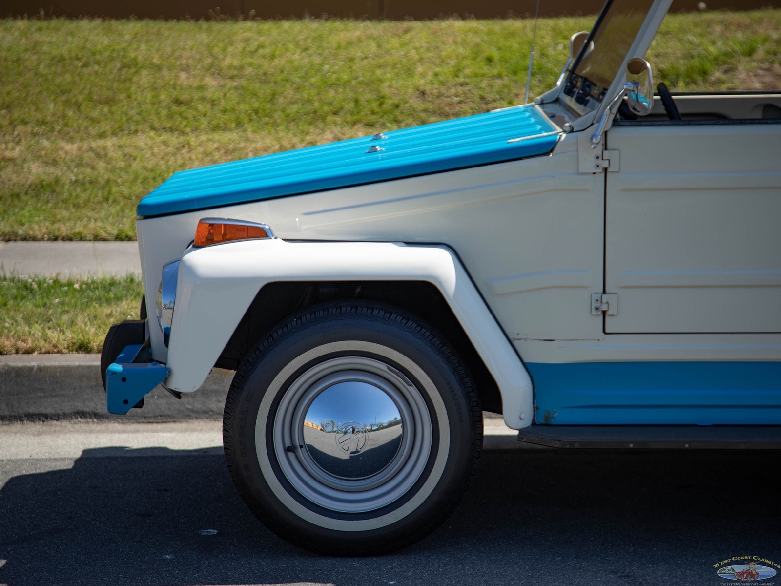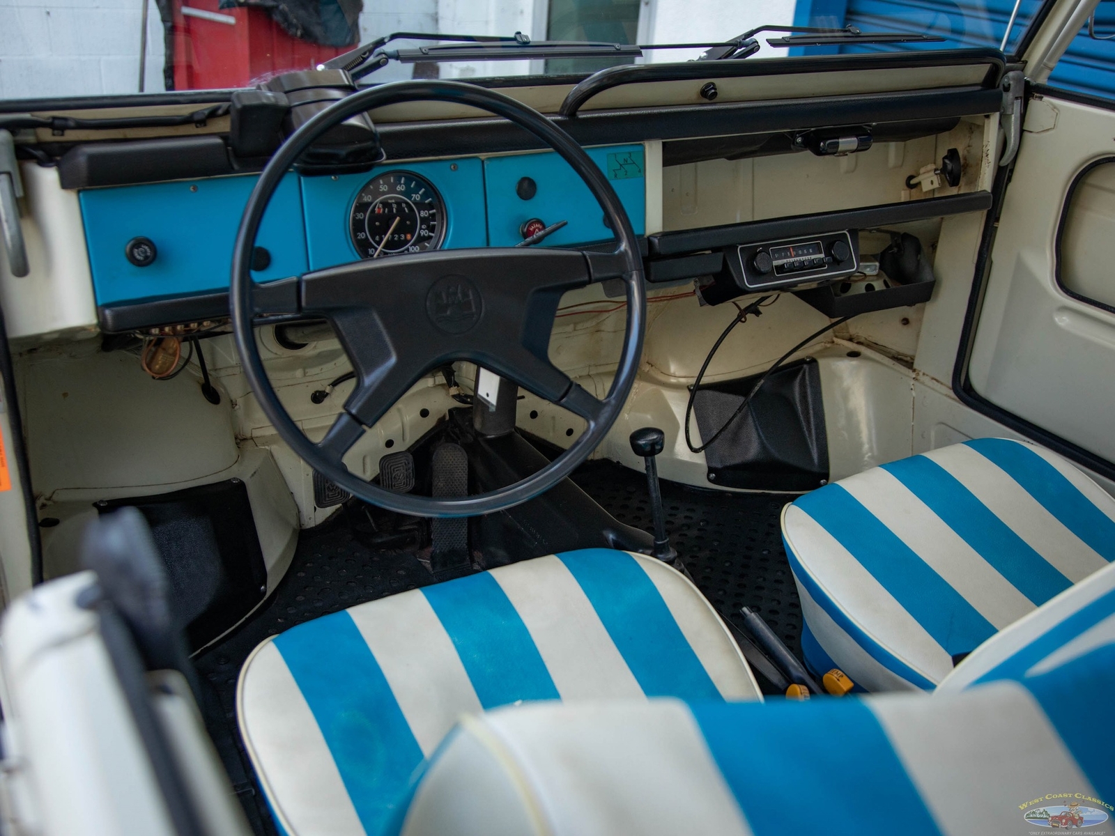 The original and authentic 'Acapulco Thing' was only built from May to July 1974 with a mere 400 produced in total. All were White with Blue accents on the front hood, the rocker panels, the bumpers and the dashboard. The seats were upholstered in a blue-and-white striped fabric, and the same fabric was used for the standard surrey top that was stretched over a metal tube frame.