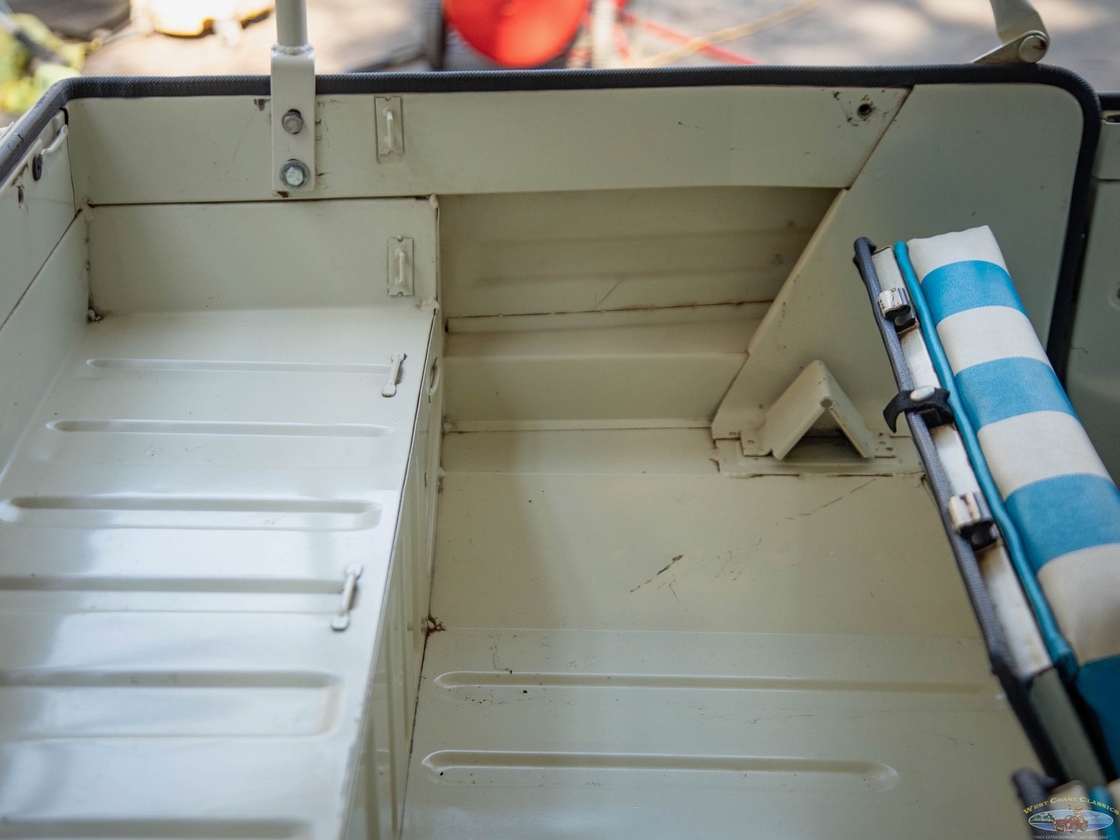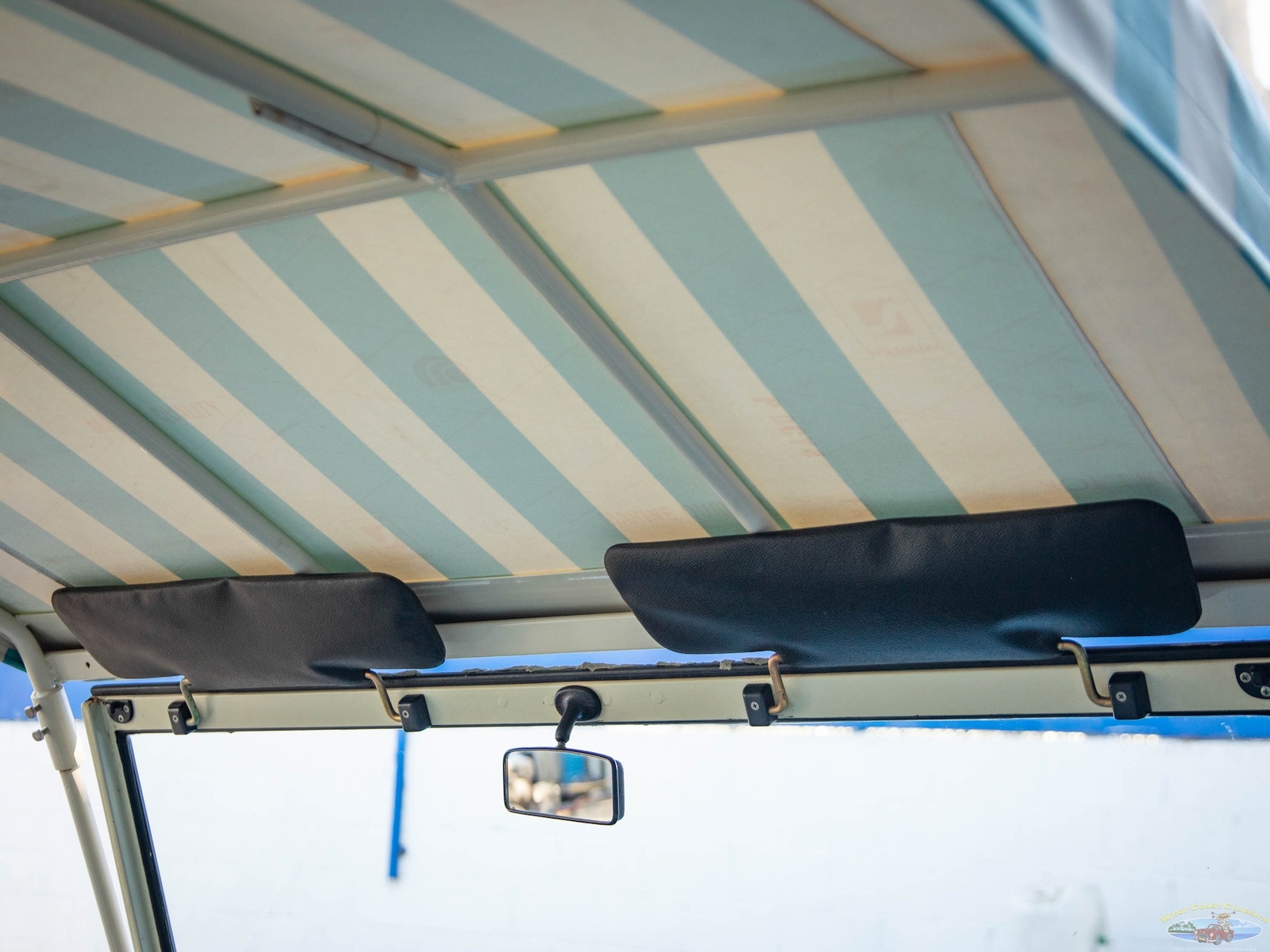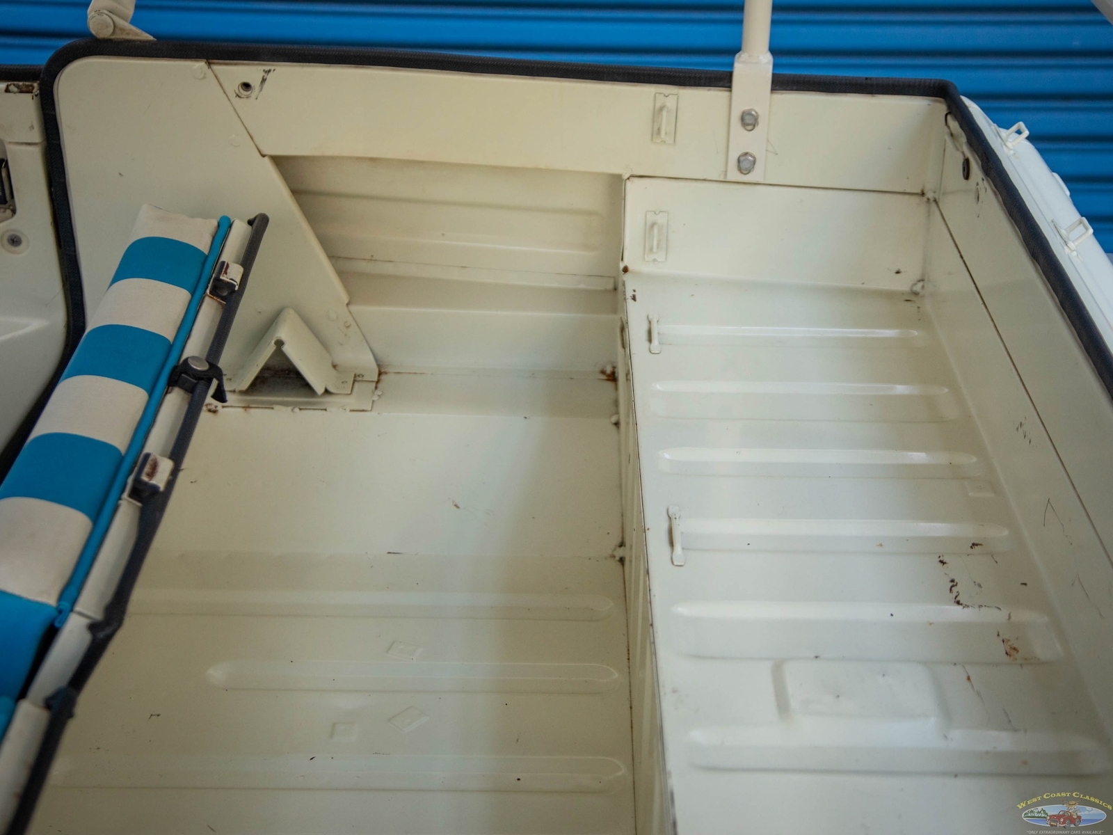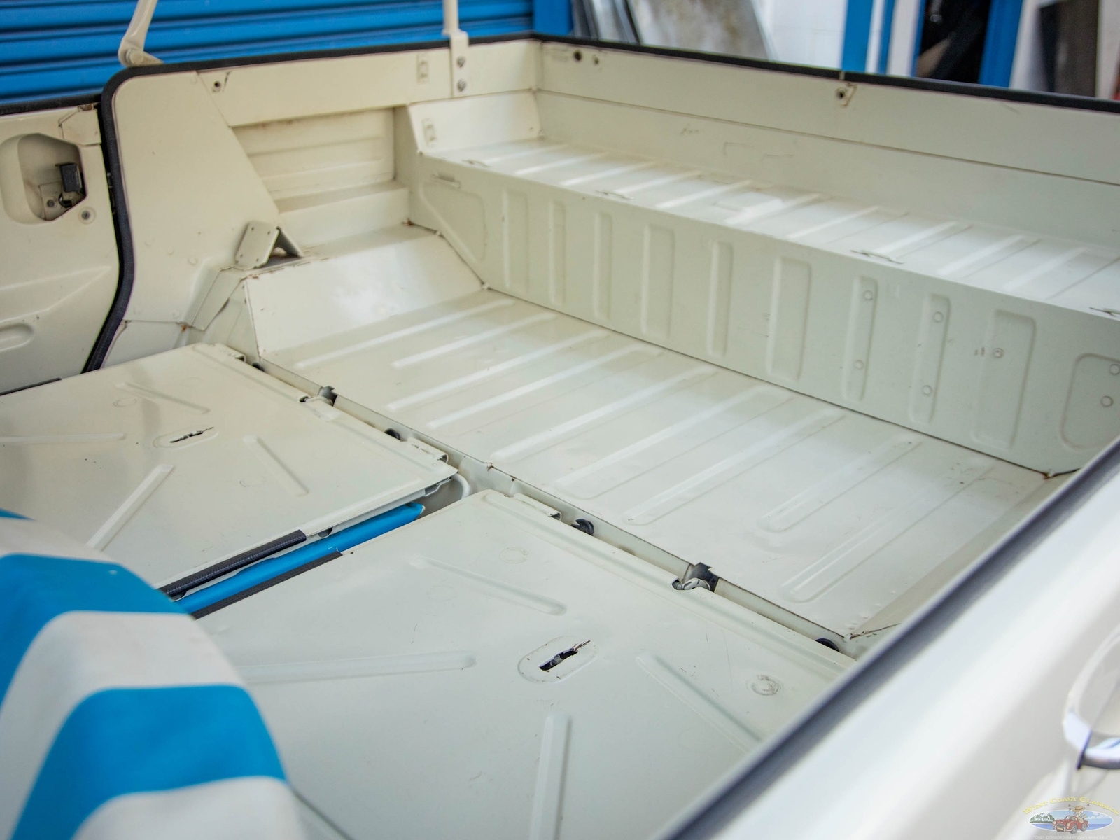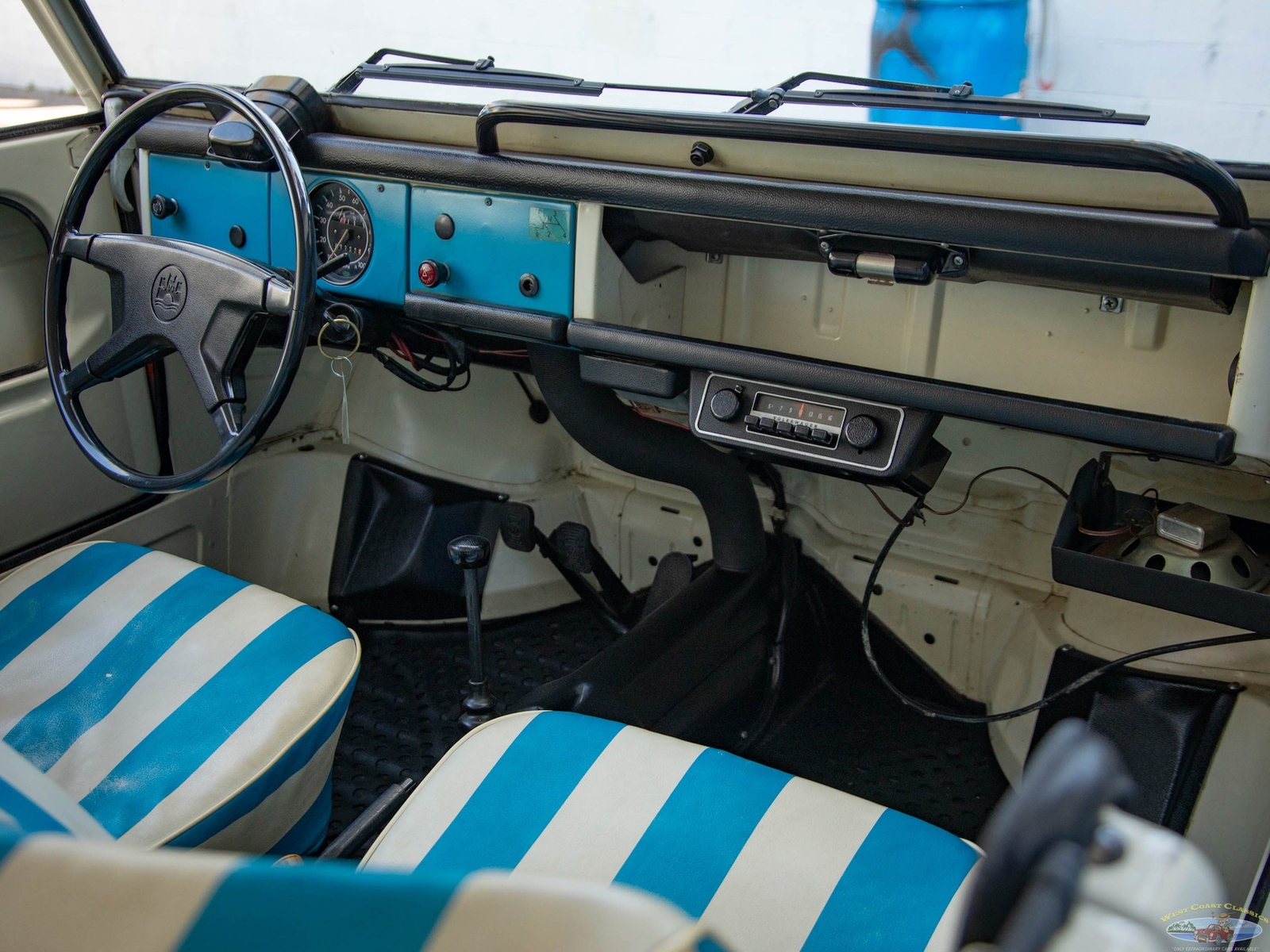 The original and authentic 'Acapulco Thing' was only built from May to July 1974 with a mere 400 produced in total. All were White with Blue accents on the front hood, the rocker panels, the bumpers and the dashboard. The seats were upholstered in a blue-and-white striped fabric, and the same fabric was used for the standard surrey top that was stretched over a metal tube frame.