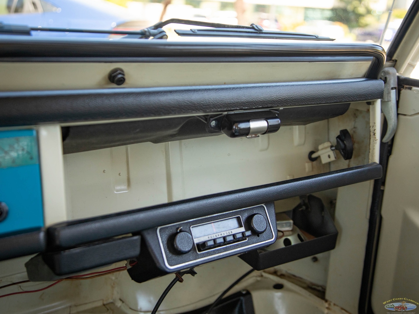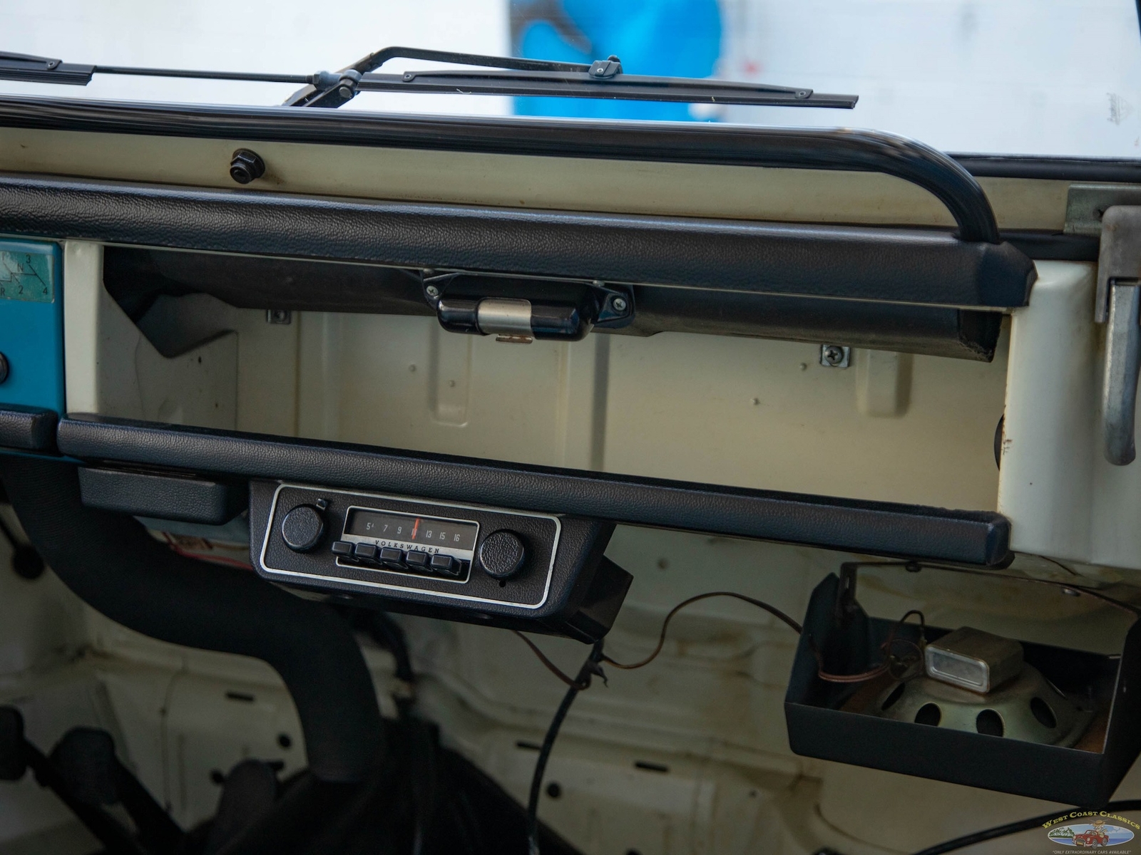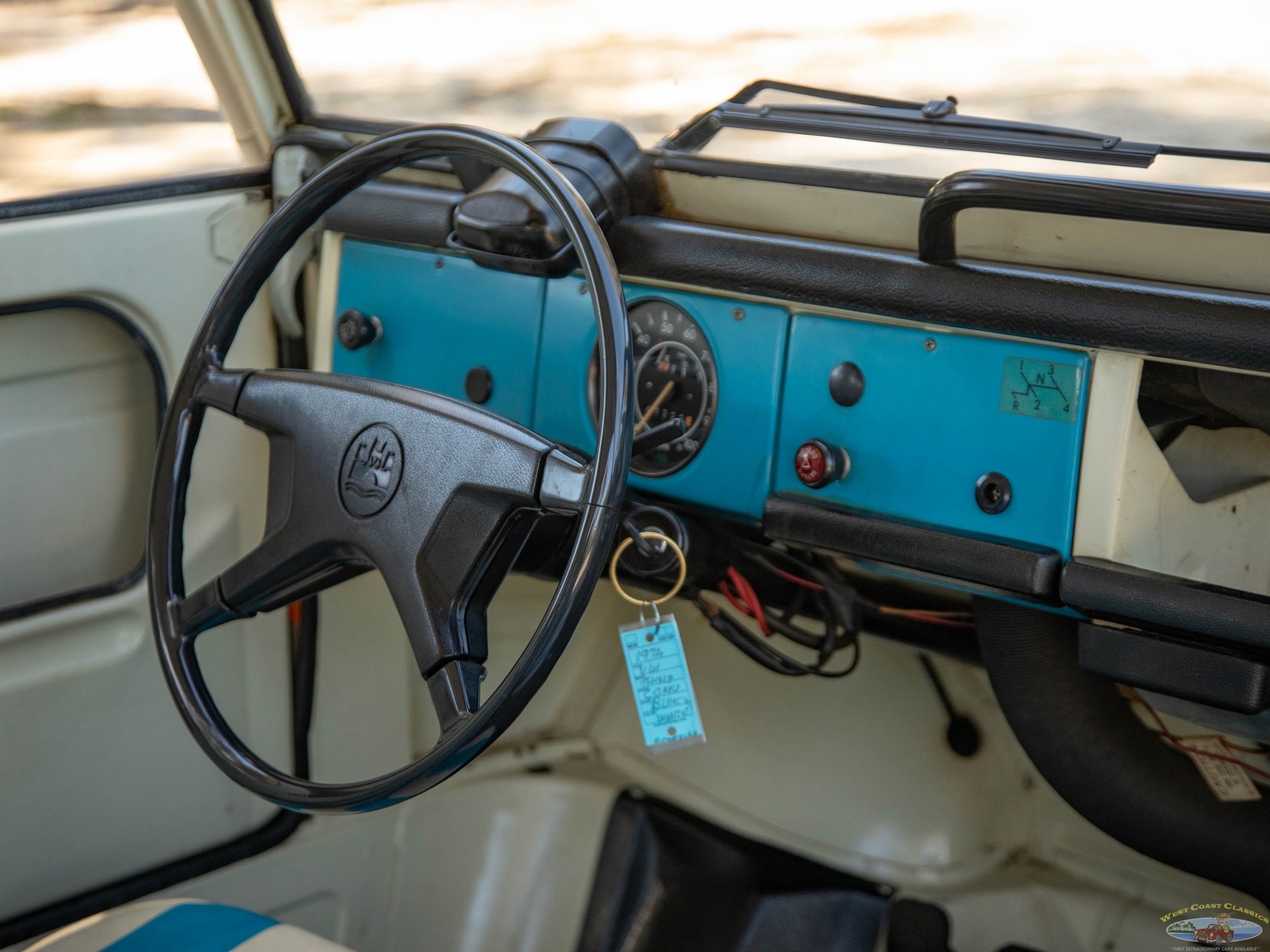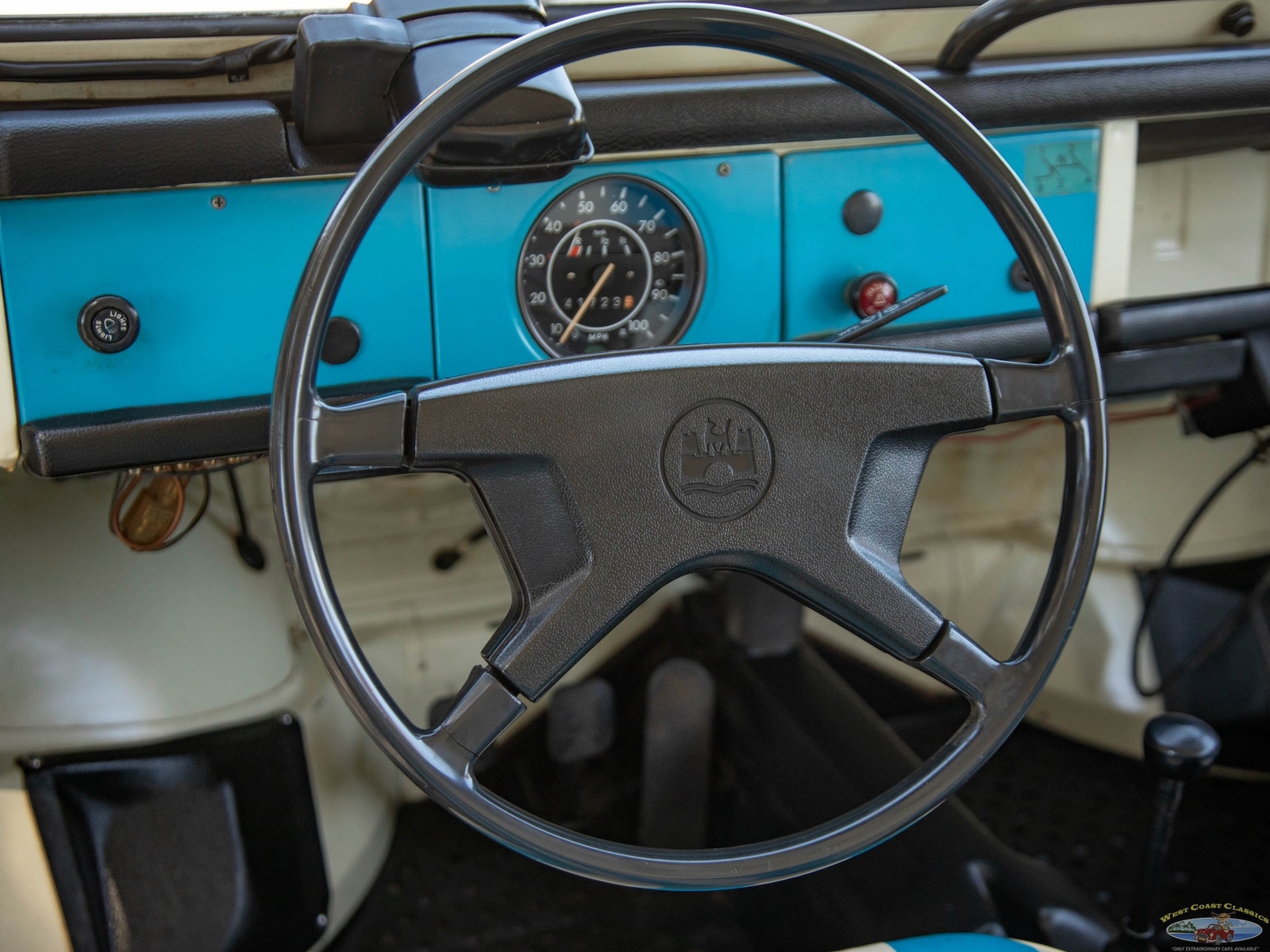 The 181 has become something of a cult classic, due in no small measure to its angular styling, which leaves no question as to its strictly utilitarian purpose. The doors are removable without tools, and the windshield folds down, similar to a Jeep. The interior is a perfect illustration of form following function, and its painted steel door panels and split, flat bench seats look appropriately post-modern, industrial chic today.