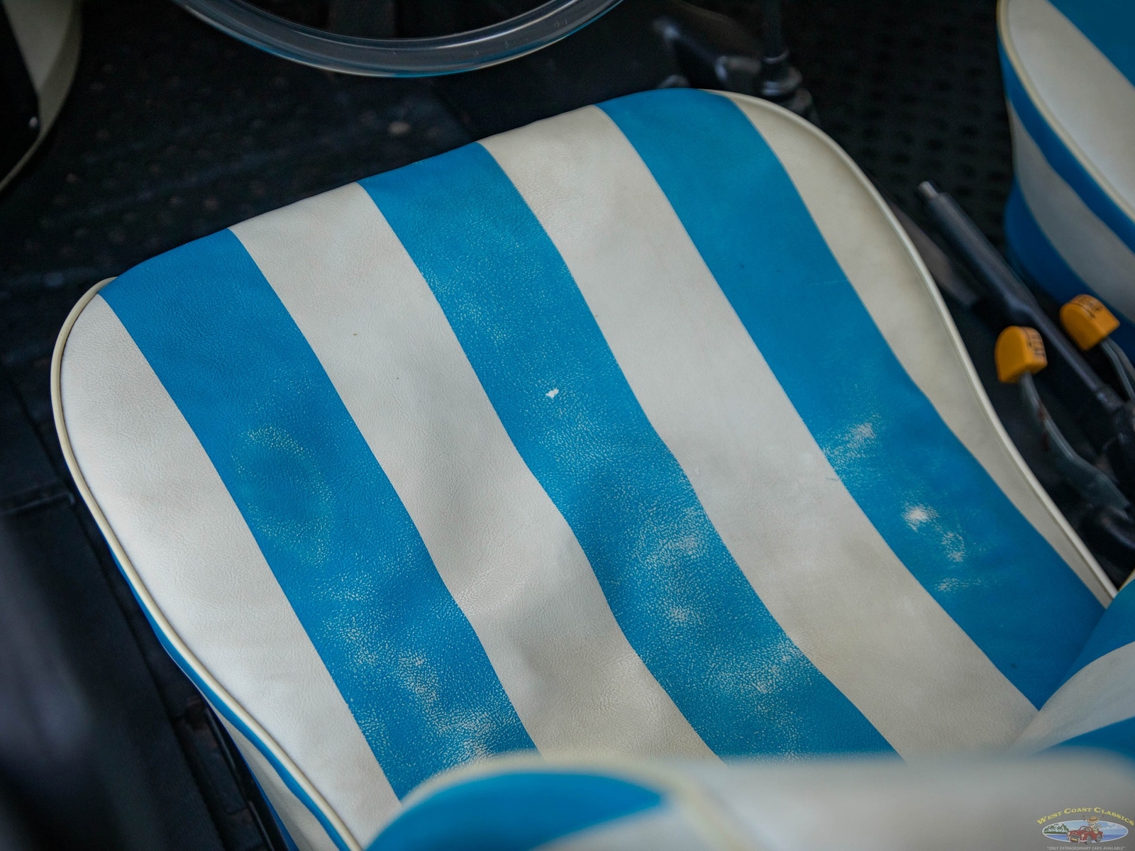 Original interior in great shape for its age, although the Blue is now showing some fading in front. The original floor mats are intact except for the passenger rear which has gone missing. All gauges, wipers, lights, and the radio work great!