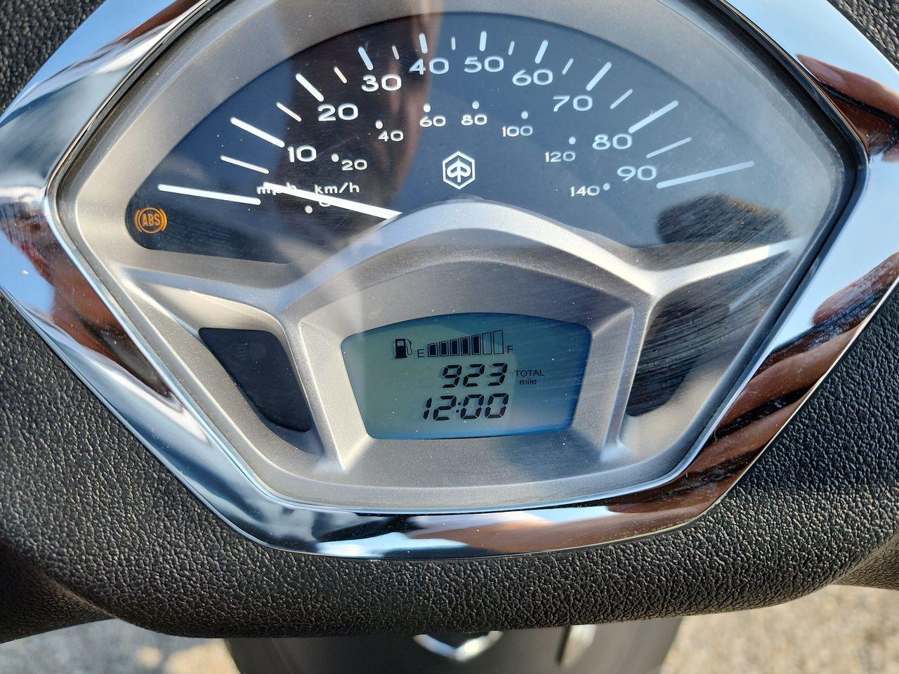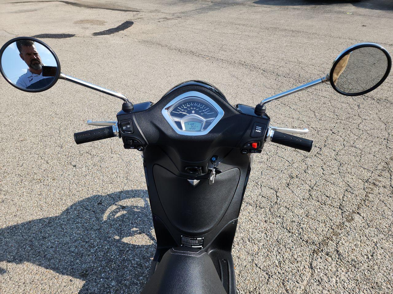 Showroom condition 923 original mile Piaggio (Vespa) 150cc fuel injected scooter with ABS. Rear locking trunk, rear pegs, automatic, large wheels, hydraulic disc brakes, etc. In stock for immediate delivery with no additional dealer fees.