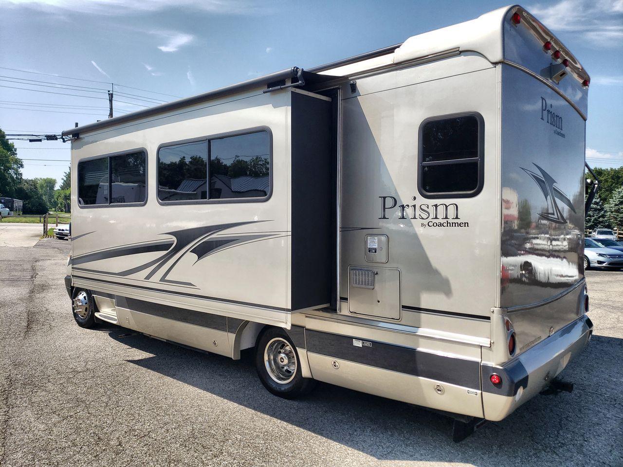 Incredibly clean Coachmen Prism M-230 Class C Motorhome on the Freightliner 3500 chassis with the Mercedes turbo diesel V6 engine. Giant power slideout with rear bathroom, tons of storage, overhead bunk, seating and seat belts for 6, fold out sleeper sofa, generator, inverter, pass thru basement storage, TV entertainment system with receiver, backup camera, ducted AC, gas and electric water heater, outside shower, slide out awning, towing package, and much more. Incredibly clean and low mileage unit fully serviced, inspected, and ready to camp TODAY!! Please note that as with most Class C RV, this unit is on a 2008 Freightliner chassis but the RV is considered a 2009 model as it was built later on the purchased 2008 chassis.