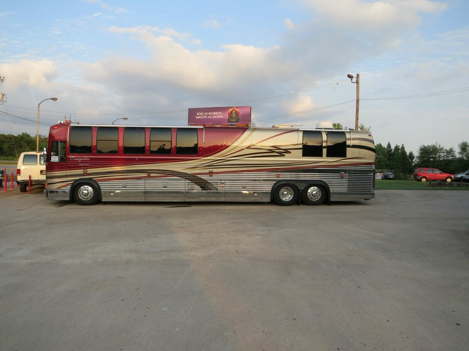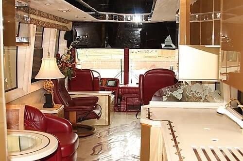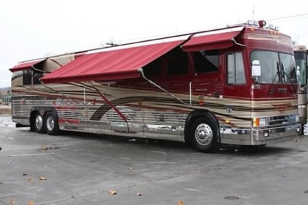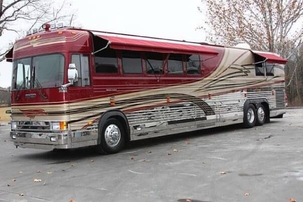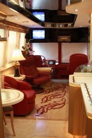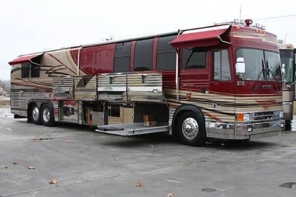 1996 Vantare’ conversion of a 1995 Prevost XLV (45 ft) LeMirage shell with 134,900 actual miles, Detroit Diesel Series 60, Allison automatic transmission - runs & drives like a luxury touring car. Amenities feature 3 CruisAir basement air conditioners (forward, mid, & aft)plus driver’s dash a/c 3 flat screen TV's (front salon, rear salon, basement entertainment bay), 2 satellite systems (1 in-motion, 1 roof-top dish),roll out joey bed in first bay, Blue-Ox tow bar, full galley with a new residential 2 door refrigerator/freezer with water/ice in the door, 4 burner electric cooktop, convection microwave oven , pull out pantry, 6 large storage drawers and overhead cabinets on both sides. The interior includes a leather reclining/rotating buddy seat for a co-driver/passenger. The front salon seating includes a 3 seat sofa with storage drawers underneath and folds out as a jackknife sleeper, a high back recliner & matching ottoman, a leather barrel chair and a side table with 2 storage drawers. Mid -coach features the galley curbside and a 2 seat dining table streetside. Behind the galley are 4 storage closets, the “head” (bathroom) with a full size shower, toilet, sink, & medicine cabinet. Behind the bathroom is the rear salon with a vanity desk, a queen bed with more storage underneath,and the rear wall is lined with deep closets with mirrored doors and 9 drawers. Floors are a combination of sculpted carpet and marble,mirrored ceilings and closet doors give the appearance of a much larger space and the chandelier in the rear salon provides an elegant touch. Window shades throughout the coach are electric and raise/lower at the touch of a button. The taillights & interior lights have been converted to LED. Custom exterior paint scheme by Walter DeAndrea of WD Bodyworks - refreshed 4 years ago (2020). Our Wheels To-Go electric cart that folds down to ride in front luggage bay (easily loaded/unloaded via the roll out joey bed & included ramps) may be negotiated into the purchase price.
