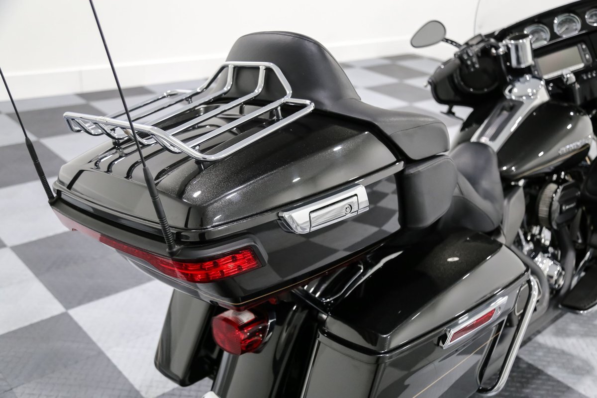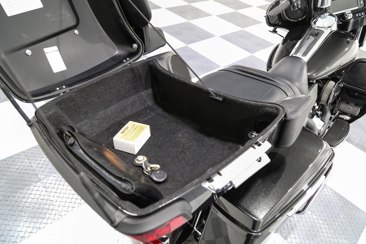 Safety and convenience are paramount with this Electra Glide, featuring lockable hard saddle bags, a factory security system, and dual fan-cooled oil coolers for optimal engine performance. The travel trunk, passenger backrest, and hard side cases offer ample storage for touring, making it an ideal choice for those long cross-country treks.