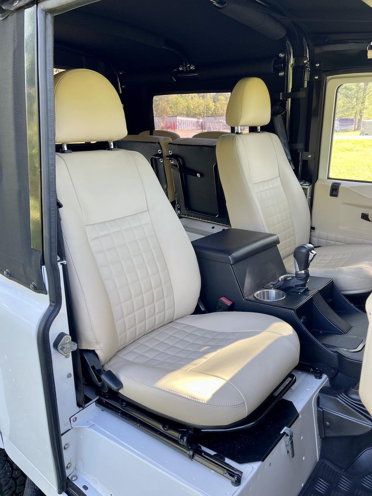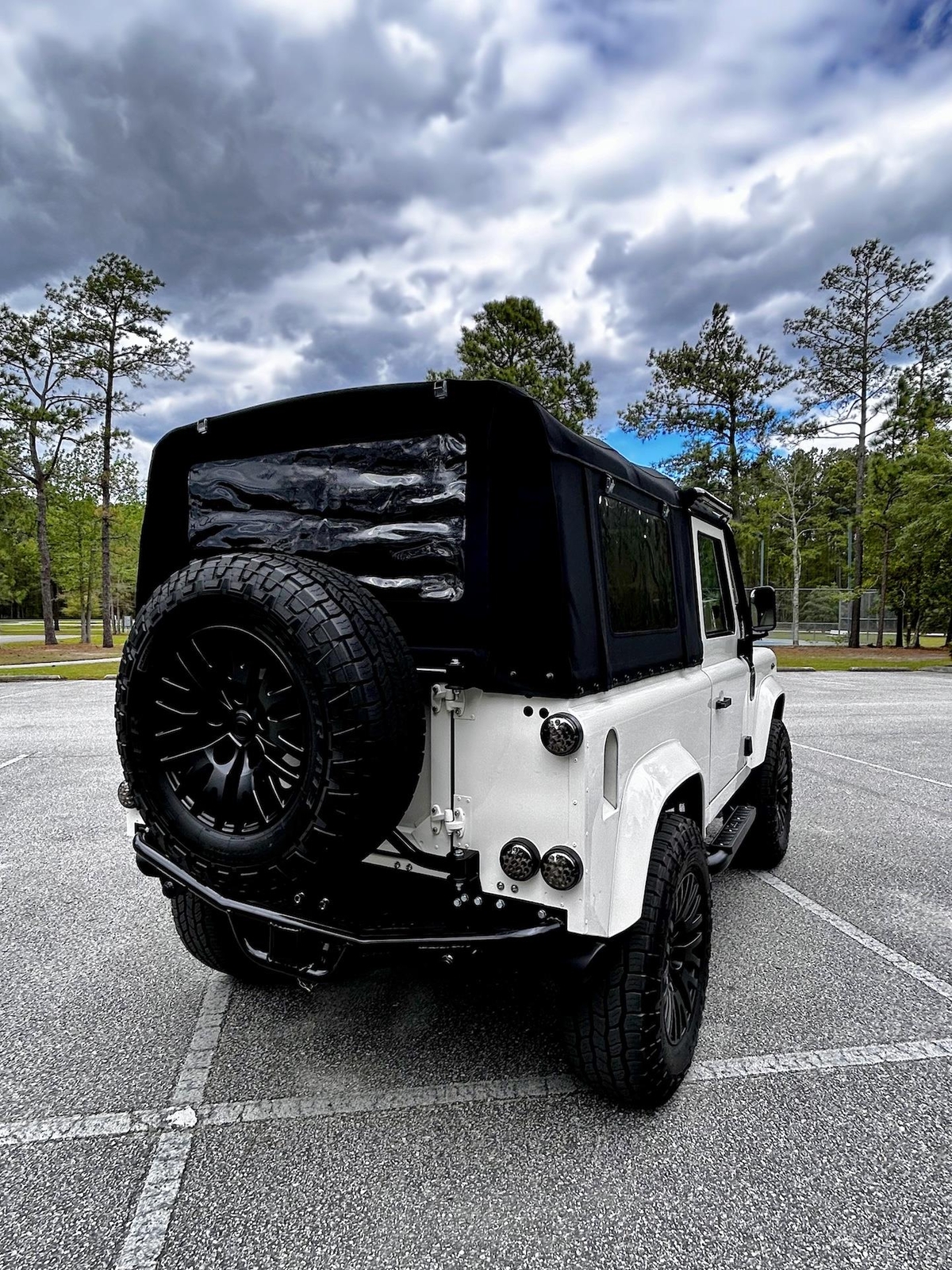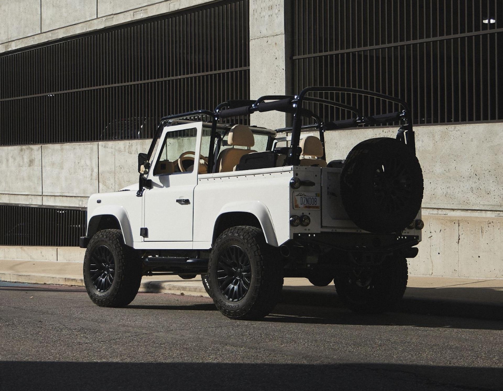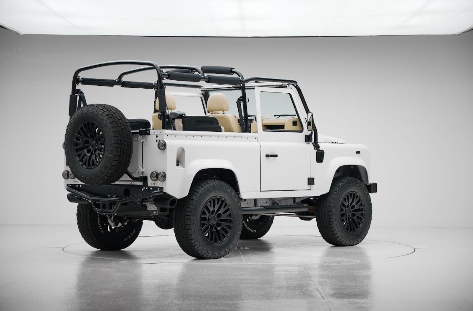 The body was skillfully finished in crisp Fuji White complemented by color-matched wheel arches and trim, all completed at our in-house body and paint facility. Adding to the vehicle's safety features, a satin black powder-coated multi-point Safety Devices® safety cage provides enhanced passenger protection. The premium black soft top fits snugly, keeping the elements at bay, while the quick and easy-to-roll-up and zip-out side and rear windows offer the freedom of an open-air experience whenever desired. LED-illuminated, black anodized aluminum exterior door handles, along with black anodized aluminum door, bonnet, and windscreen hinges, enhance the concise exterior color scheme.