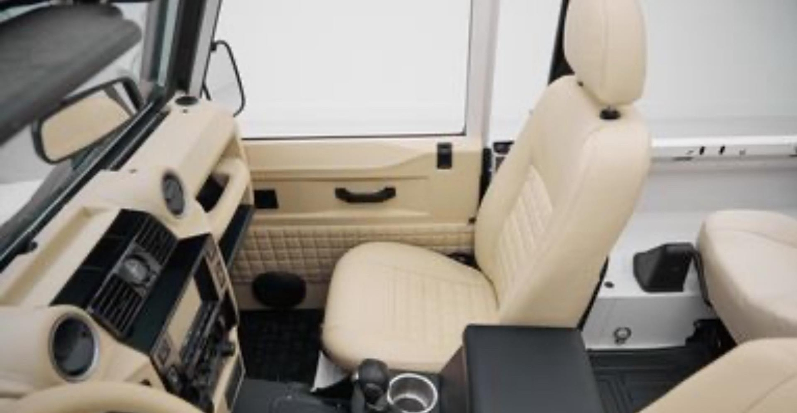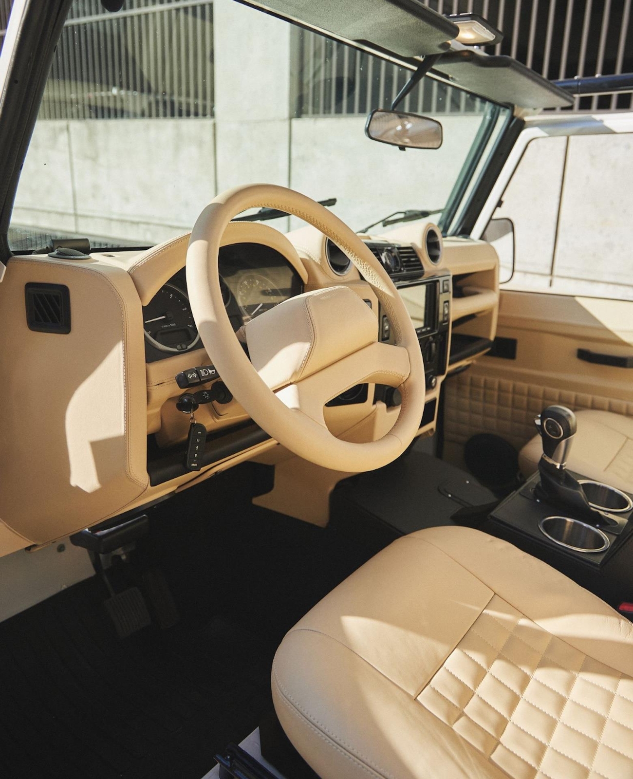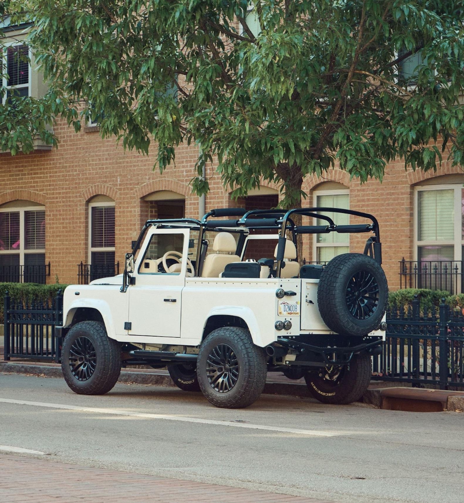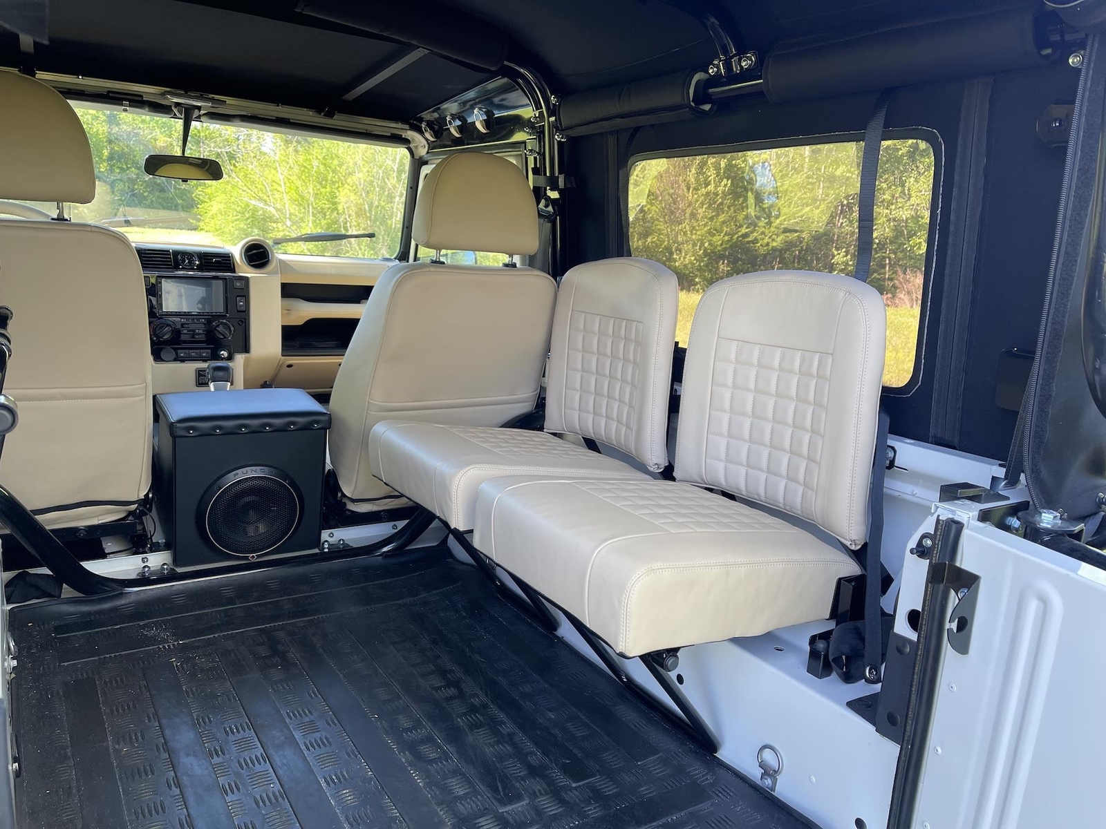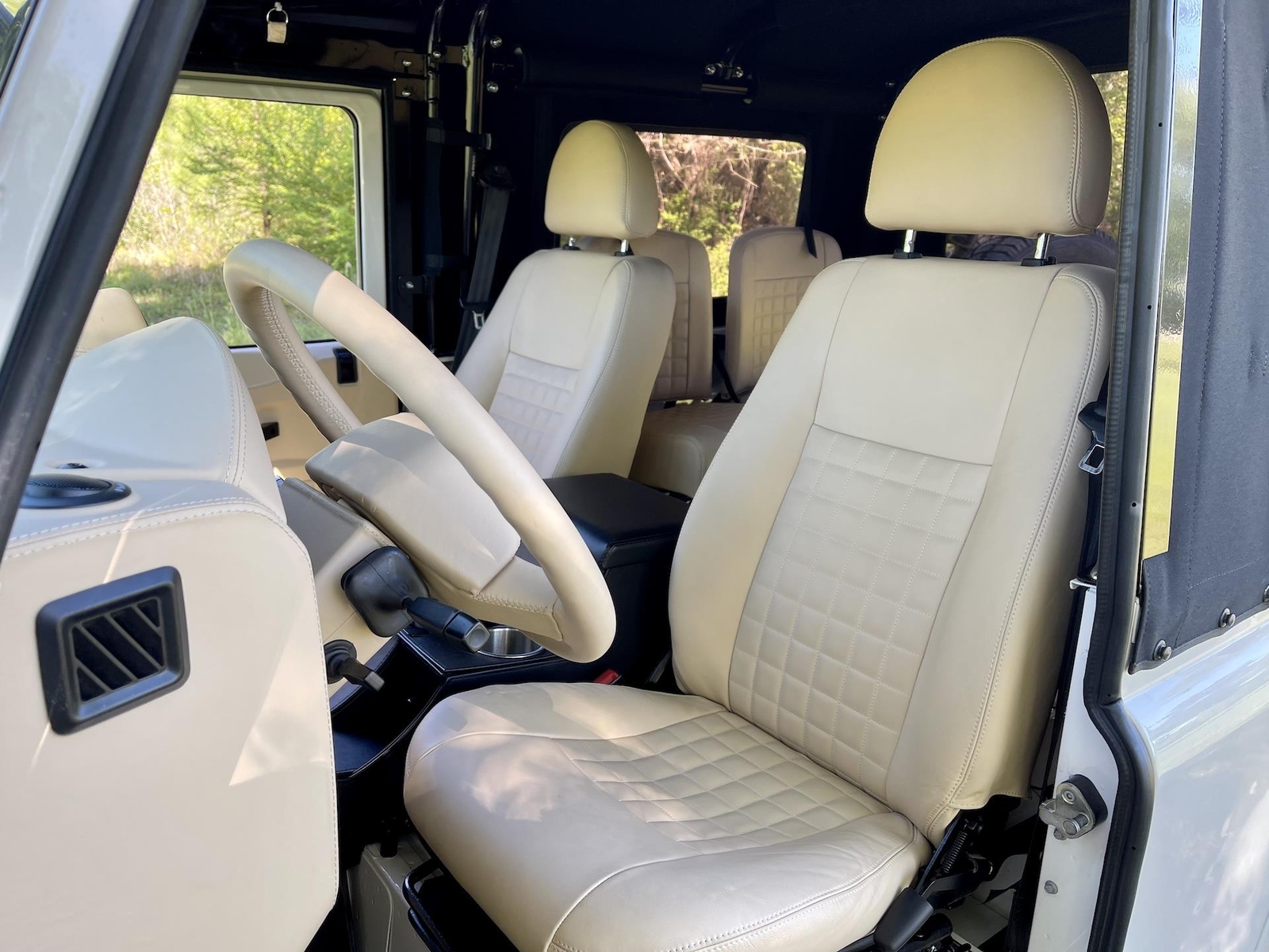 The body was skillfully finished in crisp Fuji White complemented by color-matched wheel arches and trim, all completed at our in-house body and paint facility. Adding to the vehicle's safety features, a satin black powder-coated multi-point Safety Devices® safety cage provides enhanced passenger protection. The premium black soft top fits snugly, keeping the elements at bay, while the quick and easy-to-roll-up and zip-out side and rear windows offer the freedom of an open-air experience whenever desired. LED-illuminated, black anodized aluminum exterior door handles, along with black anodized aluminum door, bonnet, and windscreen hinges, enhance the concise exterior color scheme.