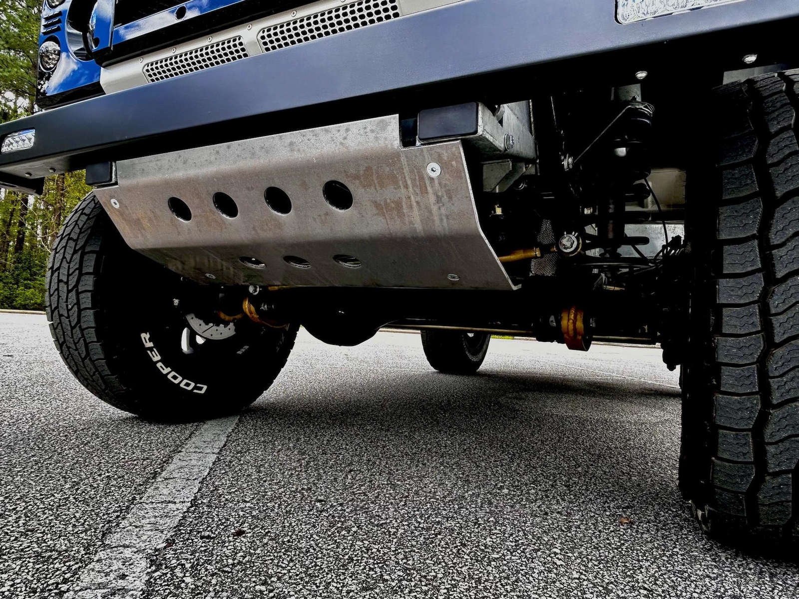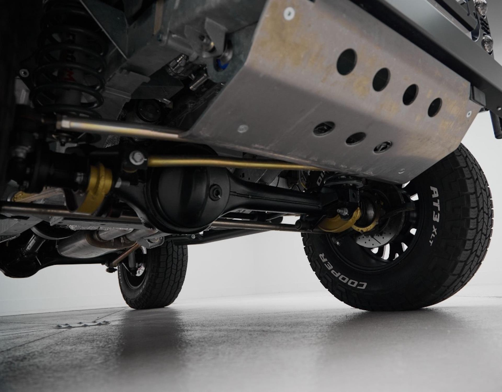 The upgraded heavy-duty front and rear axles were mounted on the new hot-dipped galvanized chassis, and are supported by slightly elevated Terrafirma® shocks and springs. The chassis features Terrafirma® caster-corrected front and cranked rear radius arms, track rod, drag link, and steering damper, all safeguarded by a heavy-duty aluminum front skid plate. The vehicle stands on bold, satin black 18-inch Iconisus® “ICON7” alloy wheels wrapped with beefy 275/70R18 Cooper® Discoverer AT3® XLT all-terrain tires, built to handle heavy loads or tow some serious weight while providing a smooth highway ride.