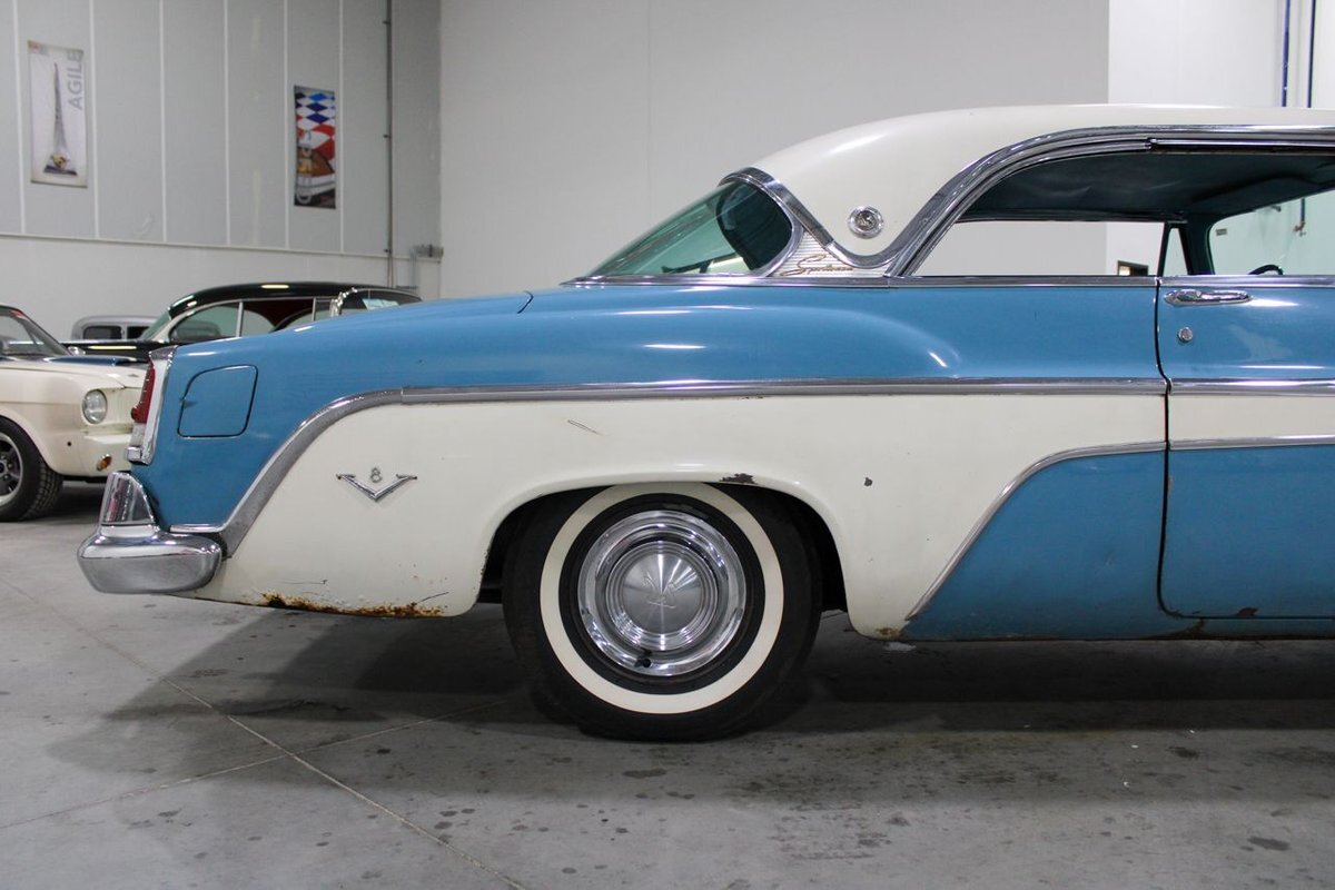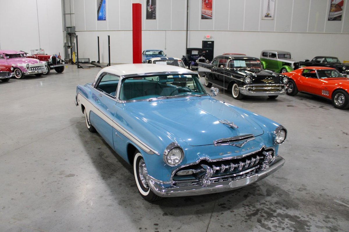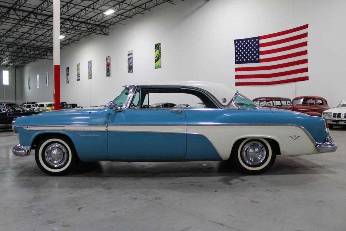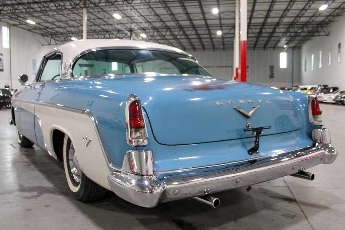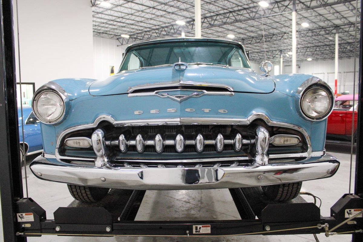 GR Auto Gallery is pleased to present this 1955 Desoto Firedome for your consideration. This Firedome comes in Blue/White exterior paint over a clean Blue/White interior. Powering this Desoto is a 291ci V8 Hemi making 185hp paired with a two-speed Powerflite transmission. This Firedome has some nice features such as; power steering, power brakes with a dual master cylinder, leather steering wheel, manual windows, front and rear seatbelts, spare tire, a new dual exhasit, and white wall tires. Restored, it is not uncommon to see these vehicles bring $35,000+ in today's market. Don't hesitate to give us a call with any questions or for more information.