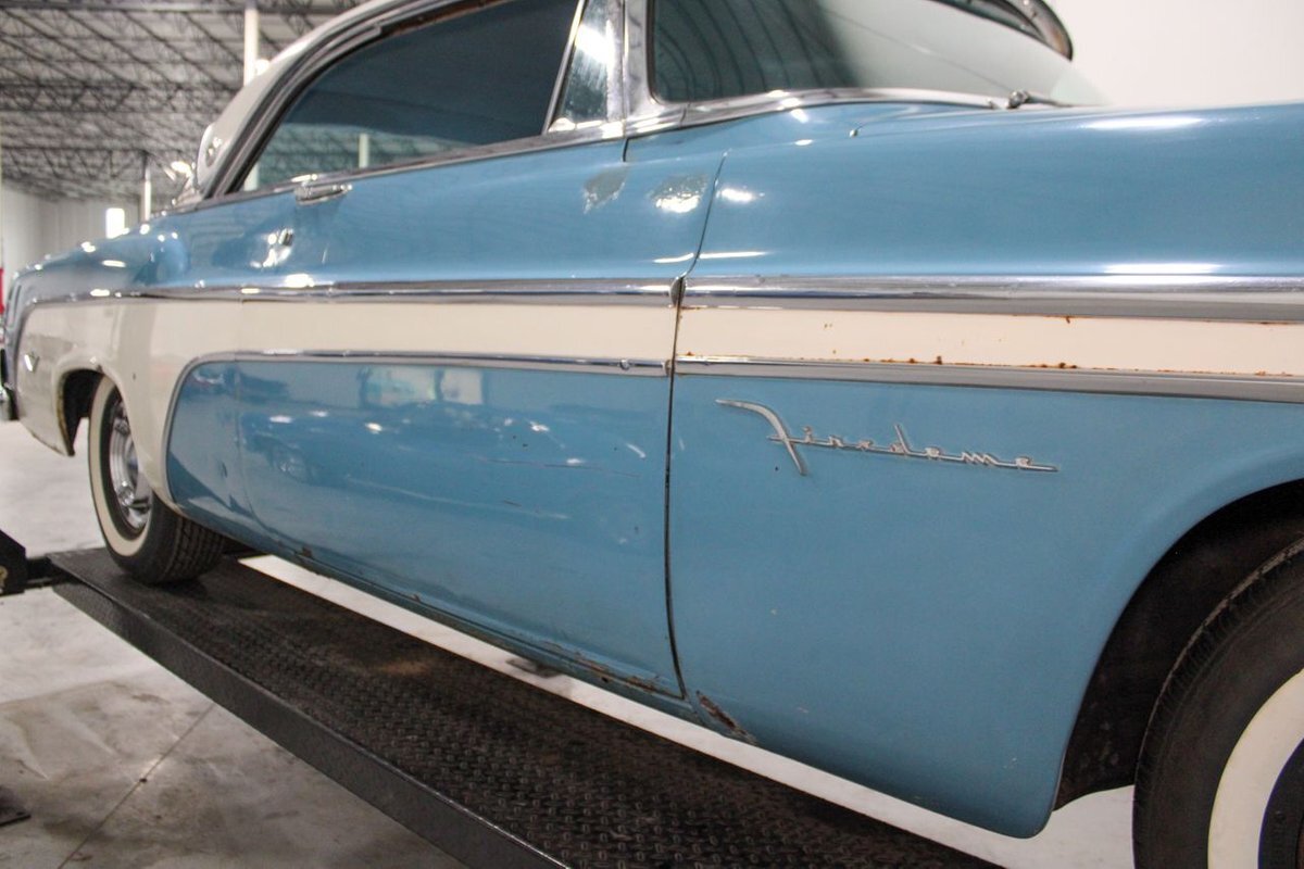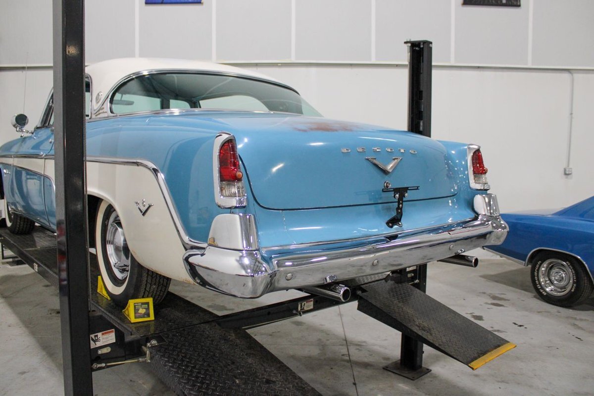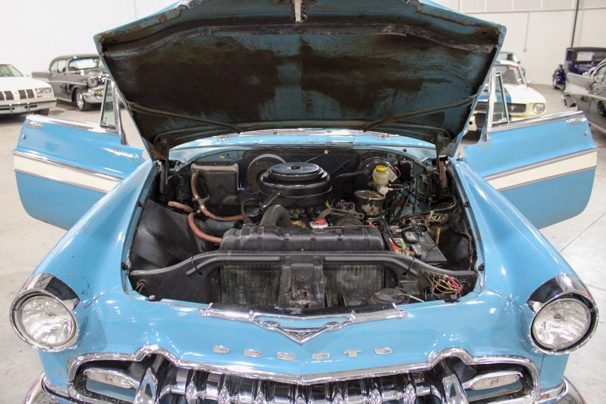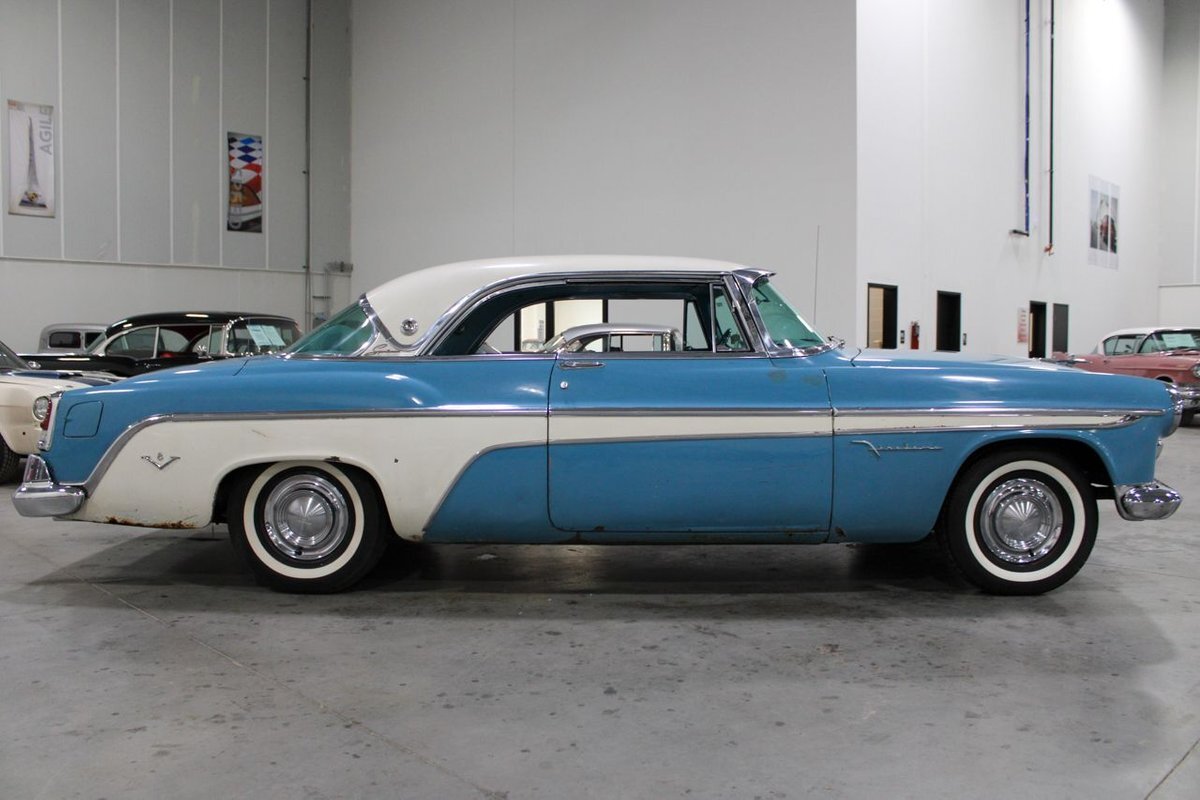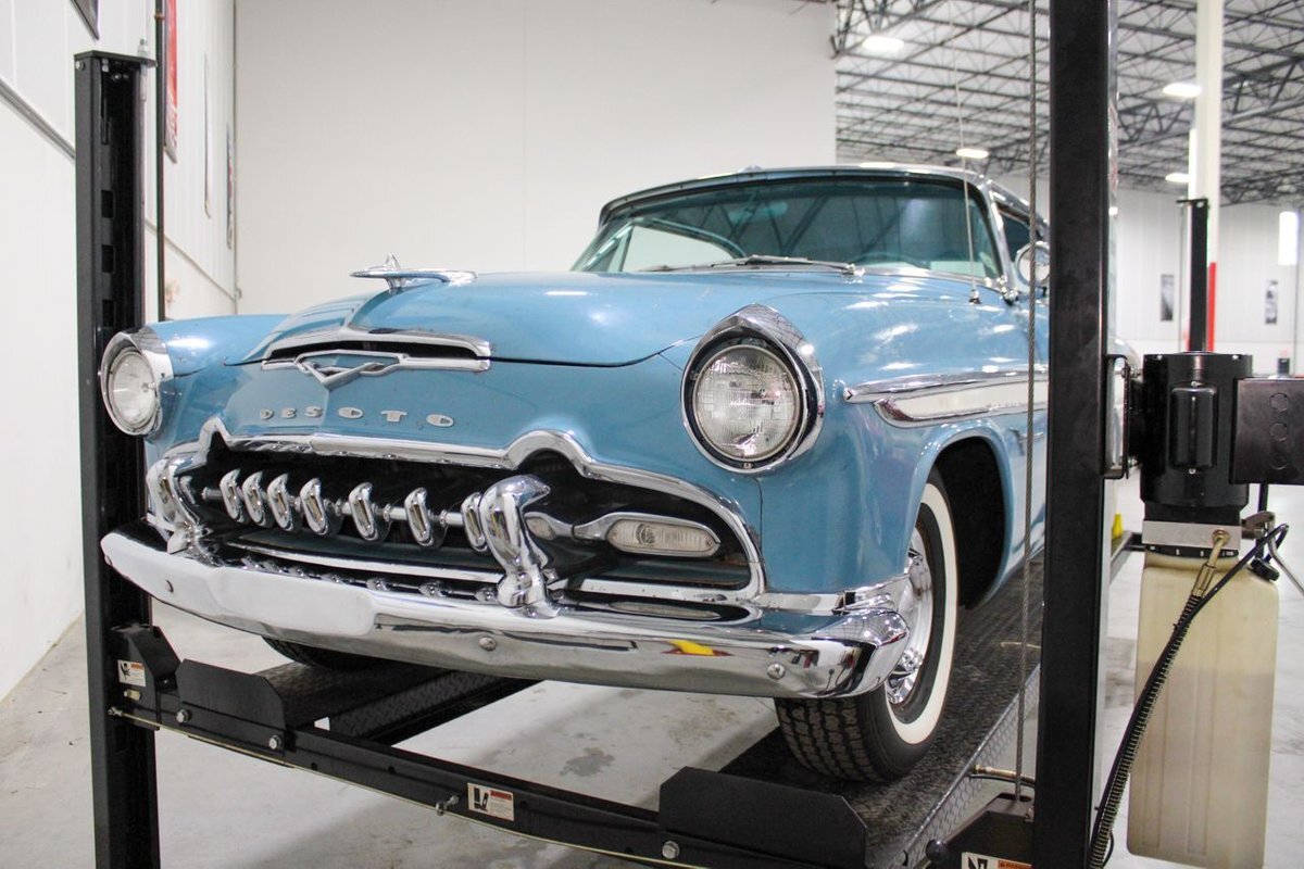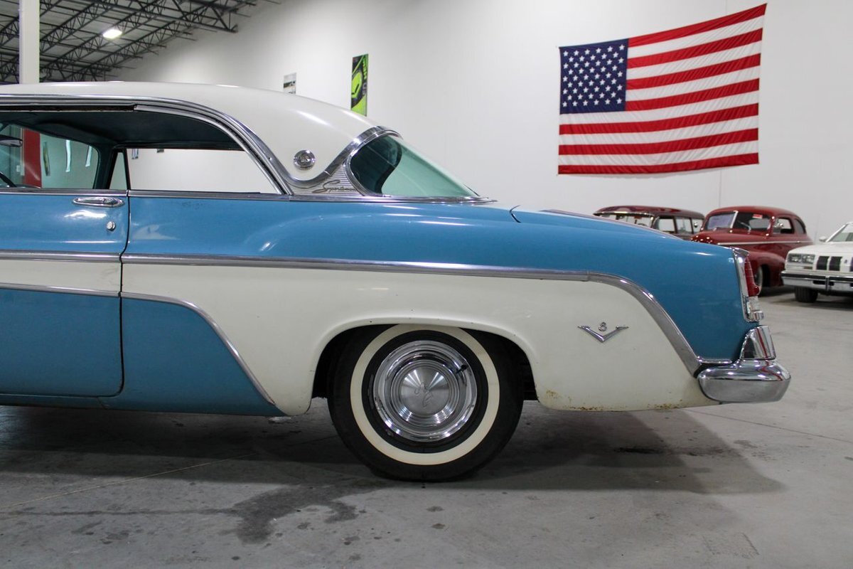 GR Auto Gallery is pleased to present this 1955 Desoto Firedome for your consideration. This Firedome comes in Blue/White exterior paint over a clean Blue/White interior. Powering this Desoto is a 291ci V8 Hemi making 185hp paired with a two-speed Powerflite transmission. This Firedome has some nice features such as; power steering, power brakes with a dual master cylinder, leather steering wheel, manual windows, front and rear seatbelts, spare tire, a new dual exhasit, and white wall tires. Restored, it is not uncommon to see these vehicles bring $35,000+ in today's market. Don't hesitate to give us a call with any questions or for more information.