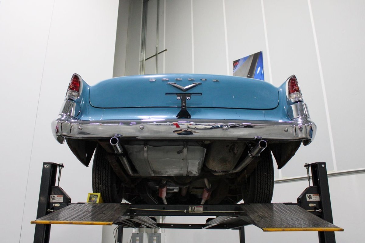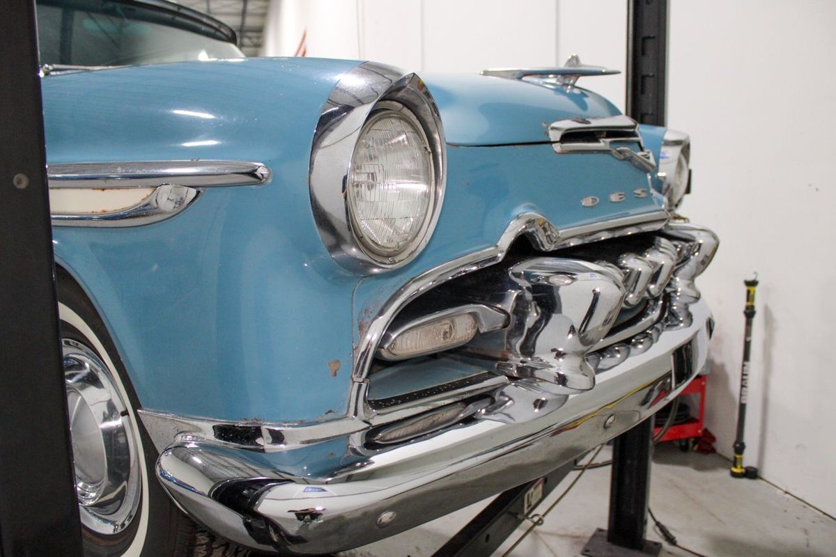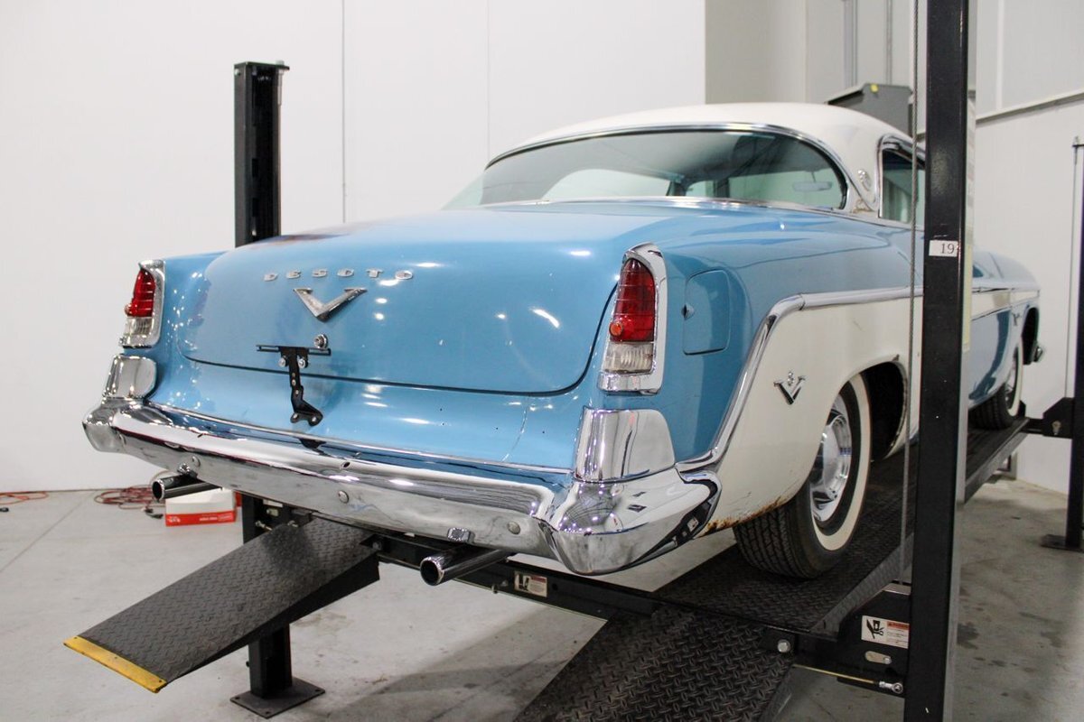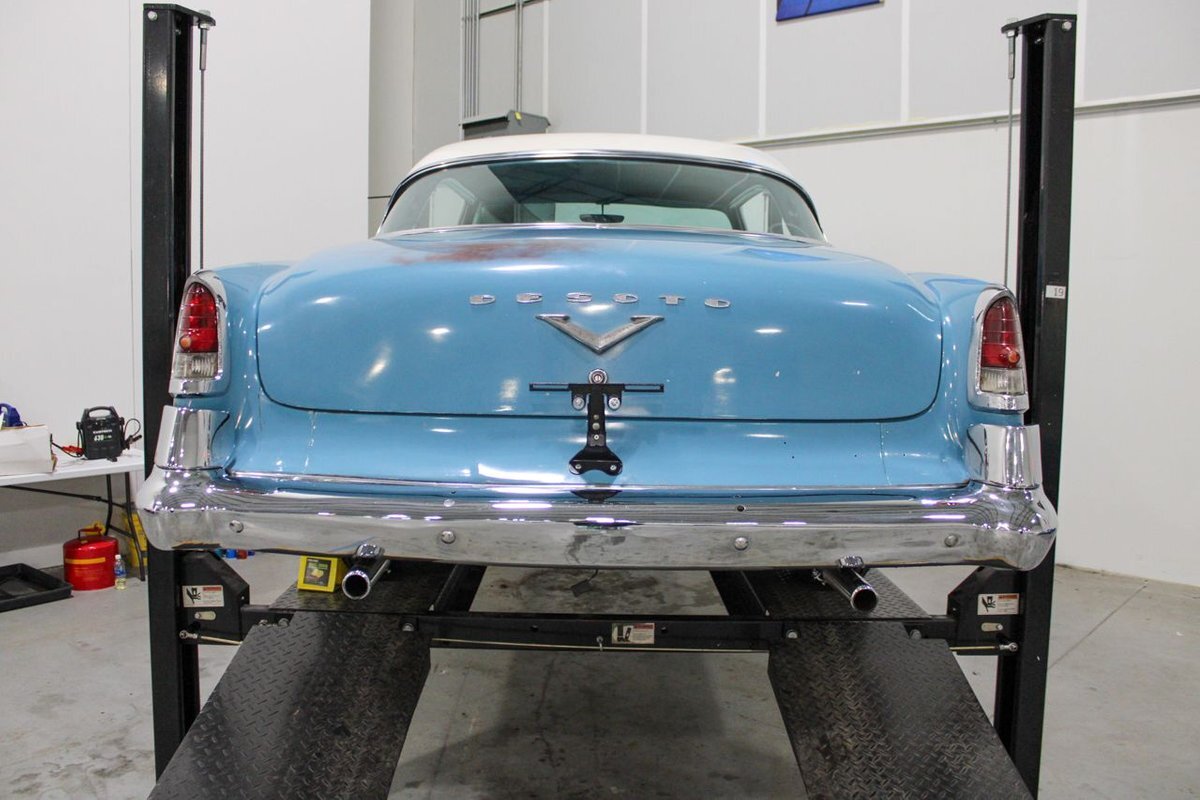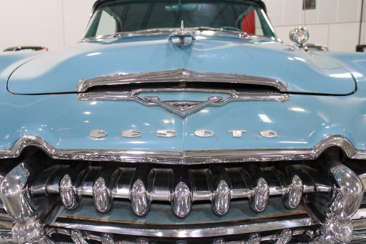 GR Auto Gallery is pleased to present this 1955 Desoto Firedome for your consideration. This Firedome comes in Blue/White exterior paint over a clean Blue/White interior. Powering this Desoto is a 291ci V8 Hemi making 185hp paired with a two-speed Powerflite transmission. This Firedome has some nice features such as; power steering, power brakes with a dual master cylinder, leather steering wheel, manual windows, front and rear seatbelts, spare tire, a new dual exhasit, and white wall tires. Restored, it is not uncommon to see these vehicles bring $35,000+ in today's market. Don't hesitate to give us a call with any questions or for more information.