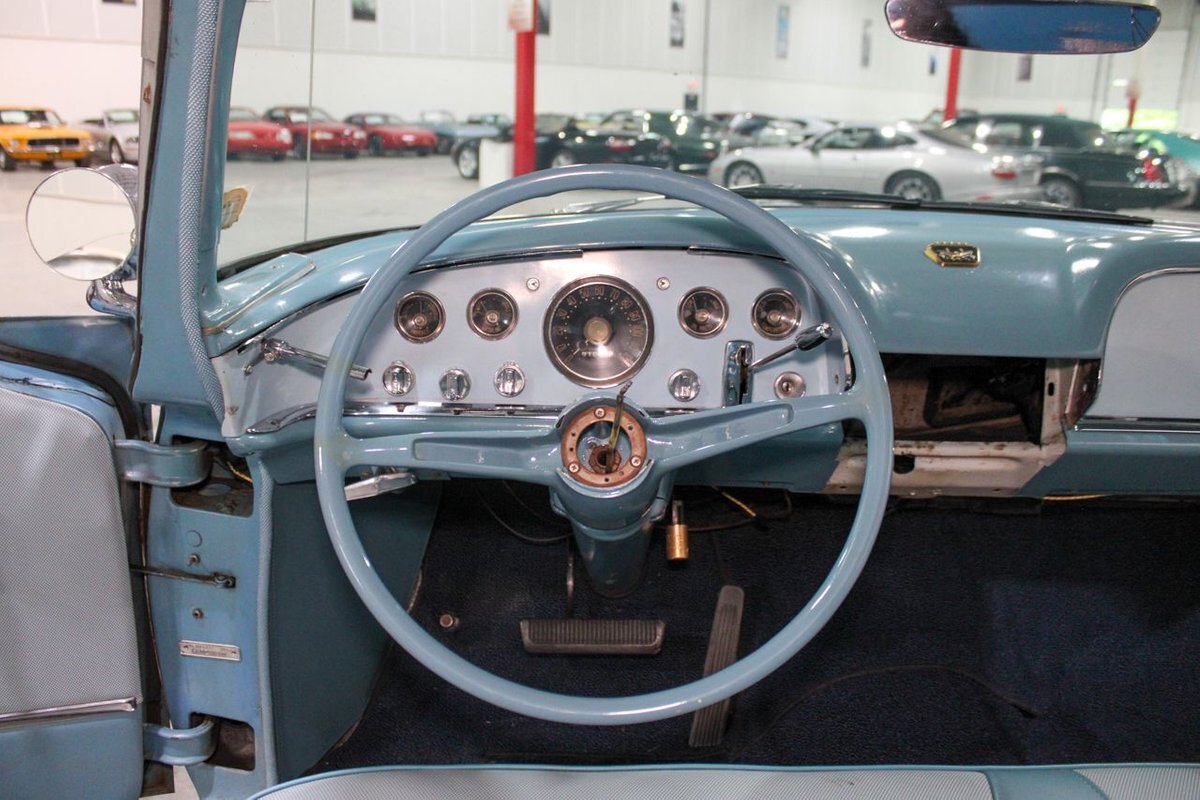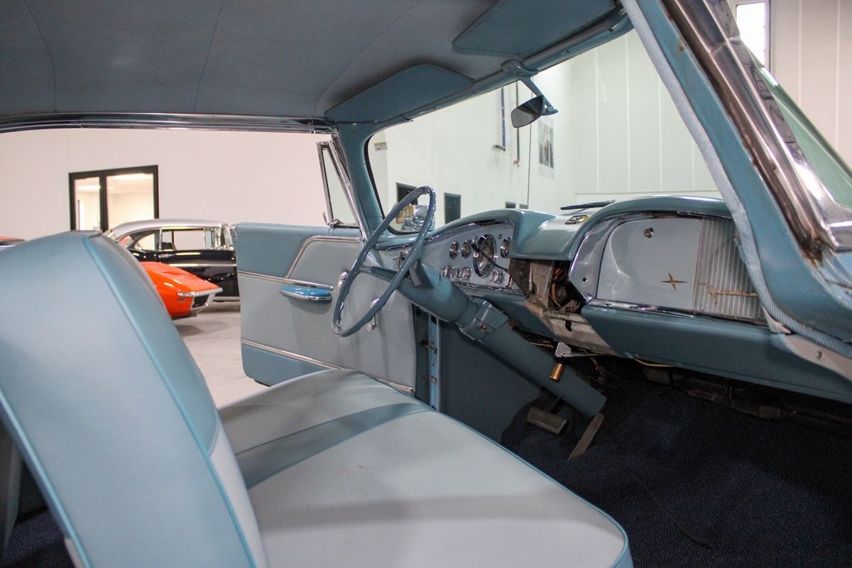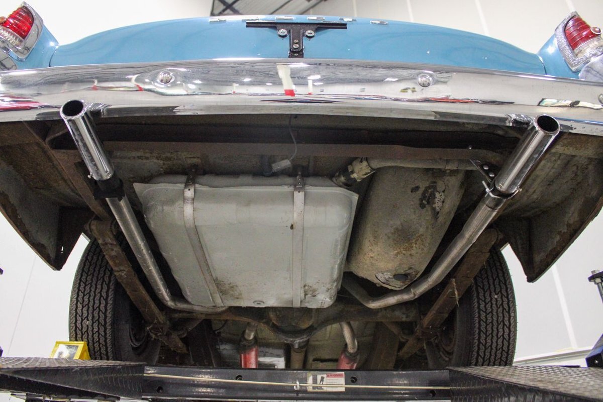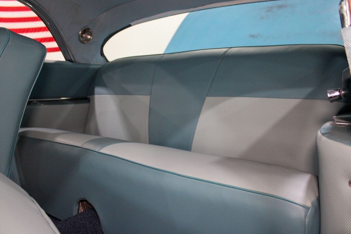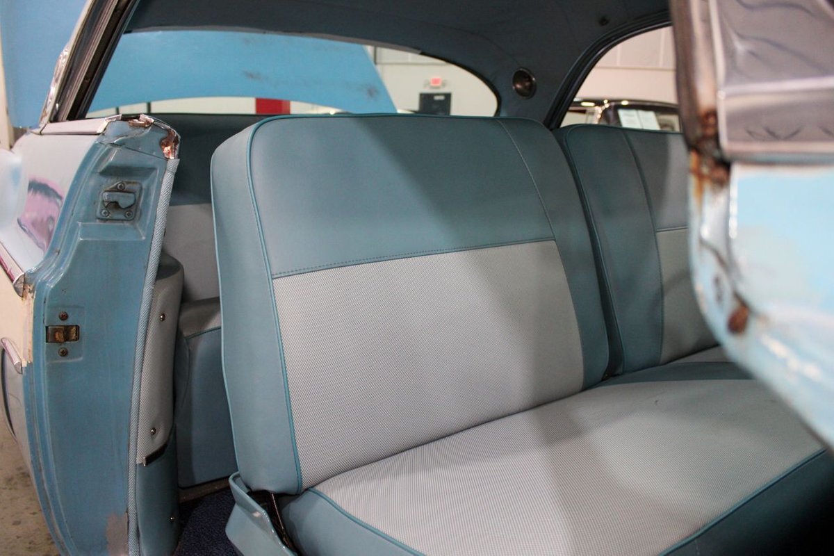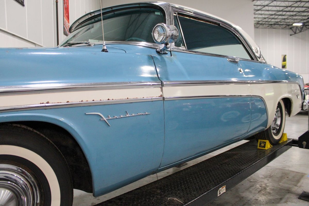 GR Auto Gallery is pleased to present this 1955 Desoto Firedome for your consideration. This Firedome comes in Blue/White exterior paint over a clean Blue/White interior. Powering this Desoto is a 291ci V8 Hemi making 185hp paired with a two-speed Powerflite transmission. This Firedome has some nice features such as; power steering, power brakes with a dual master cylinder, leather steering wheel, manual windows, front and rear seatbelts, spare tire, a new dual exhasit, and white wall tires. Restored, it is not uncommon to see these vehicles bring $35,000+ in today's market. Don't hesitate to give us a call with any questions or for more information.