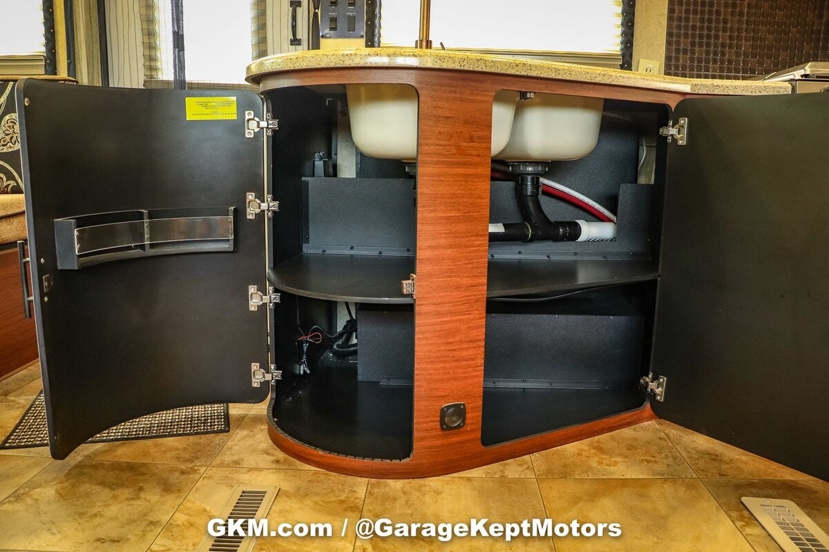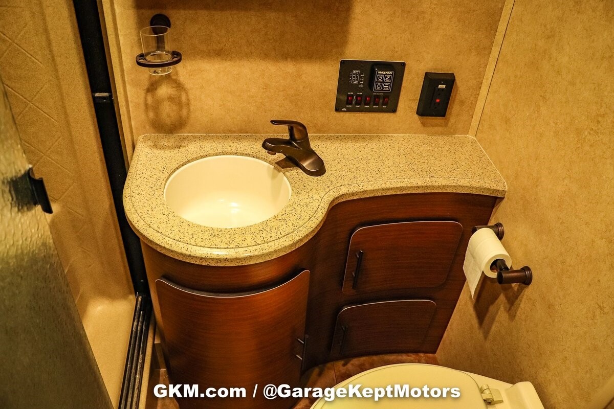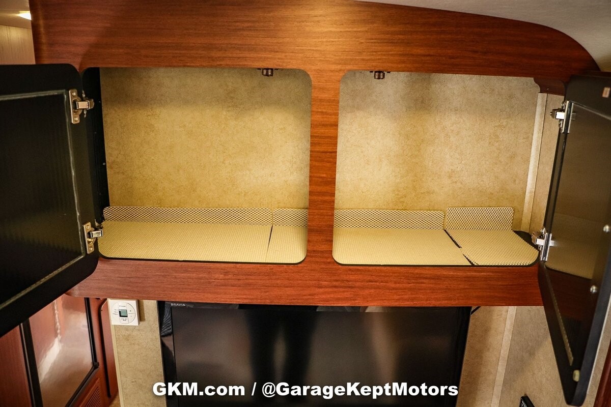 The Aviator provides a private and comfortable bedroom area where you can relax and recharge. The queen-sized bed with a premium mattress guarantees a restful night's sleep, and overhead storage compartments offer convenient space to keep your personal belongings organized.