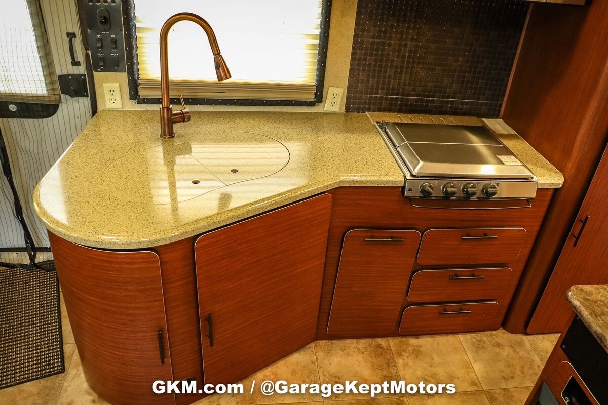 The fully-equipped kitchen is a highlight of the Aviator camper trailer. It features top-of-the-line appliances, ample storage space, and a stylish countertop that makes meal preparation a breeze. Whether you're cooking a quick breakfast or preparing a gourmet dinner, the kitchen has all the necessary amenities to meet your culinary needs.