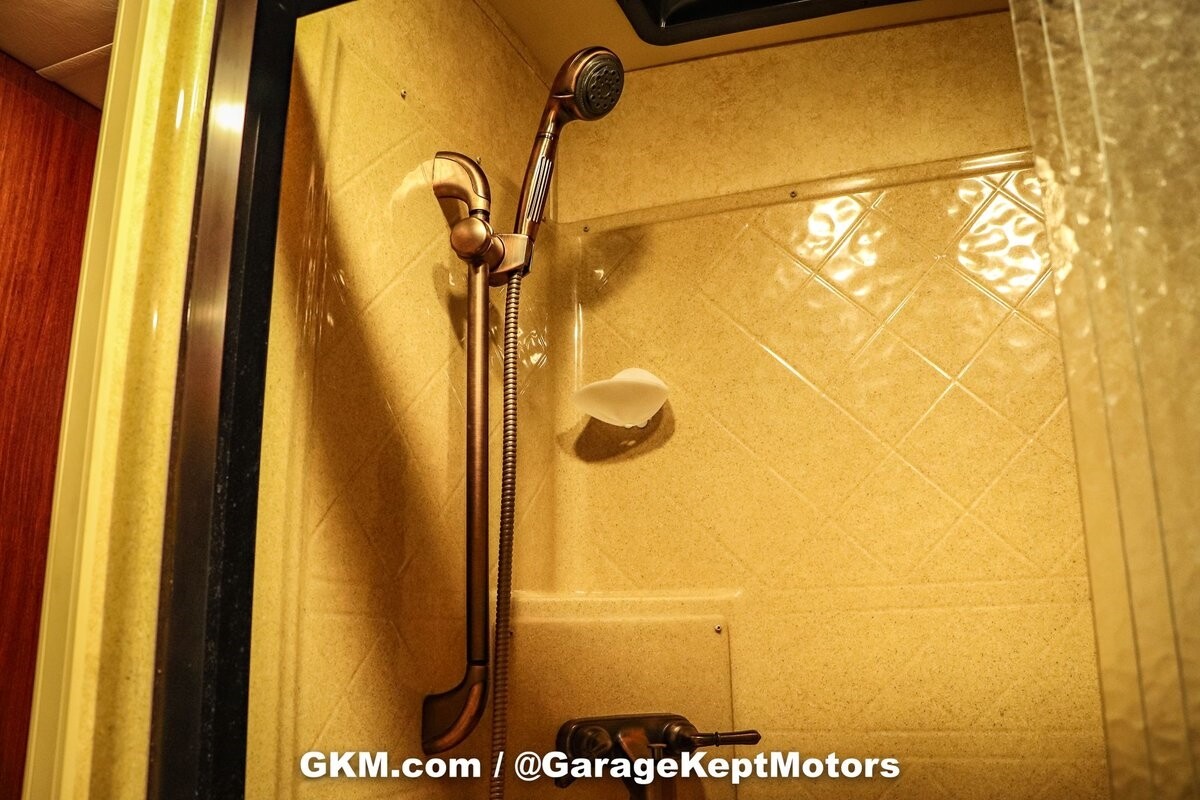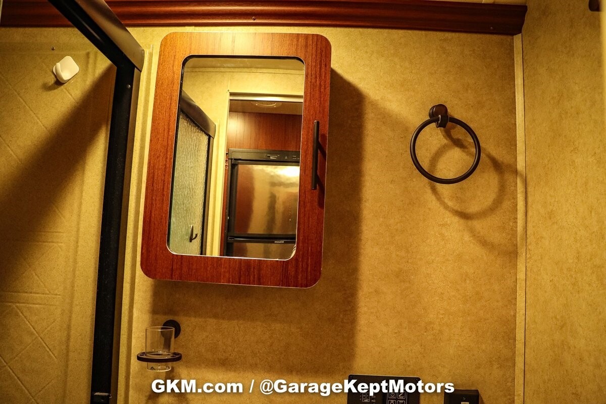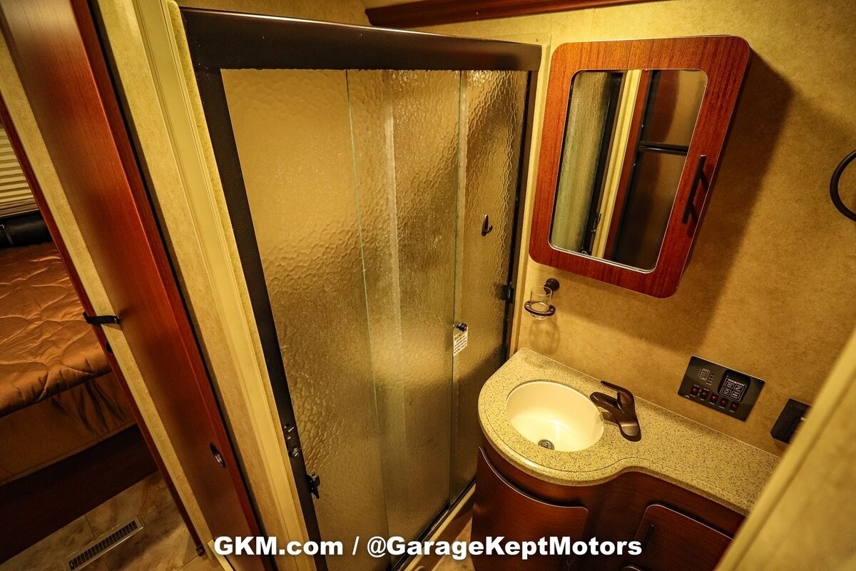 The well-designed bathroom features a spacious shower with a glass door, a vanity with a sink, and a mirrored medicine cabinet. It ensures that you can freshen up with ease and maintain a level of comfort and cleanliness throughout your journey.