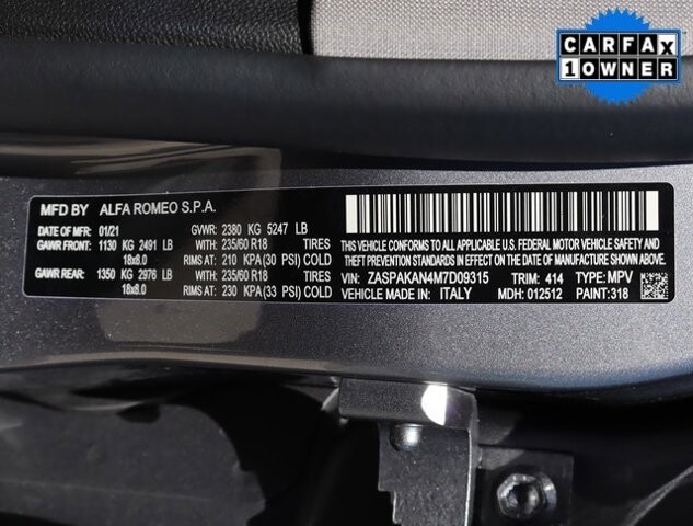 Drive our 2021 Alfa Romeo Stelvio Sprint AWD with the Cold Weather Package in Stomboli Gray Metallic and let inspiration guide the way! Motivated by a TurboCharged 2.0 Liter 4 Cylinder supplying 280hp paired to an 8 Speed Automatic transmission for a pulse-pounding ride to 60mph in just 5.4 seconds. Fine-tune the fun in this All Wheel Drive SUV with the Alfa DNA multimode performance system, and you can also return nearly 28mpg on the highway. Italian flair is on full display with a bold V-Scudetto grille, high-performance bi-xenon headlamps, heated washer nozzles, aluminum roof rails, and 18-inch alloy wheels.Our Sprint cabin delivers quick comfort with heated leather front seats, a heated leather-wrapped steering wheel, dual-zone automatic climate control, a wireless charging pad, and a 7-inch color TFT driver display. Exceptional convenience is close at hand as well, with ample cargo space plus an 8.8-inch touchscreen, Android Auto/Apple CarPlay, Bluetooth, and an eight-speaker sound system. This interior encourages you to live your best life on every drive.Take advantage of smart Alfa Romeo technology for your peace of mind with a backup camera, automatic braking, hill-start assist, hill-descent control, forward-collision warning, ABS, stability/traction control, and more. Our Stelvio is a terrific testament to Italy's reputation for excellence in performance and design! Save this Page and Call for Availability. We Know You Will Enjoy Your Mercedes-Benz of Nashville Test Drive Towards Ownership!