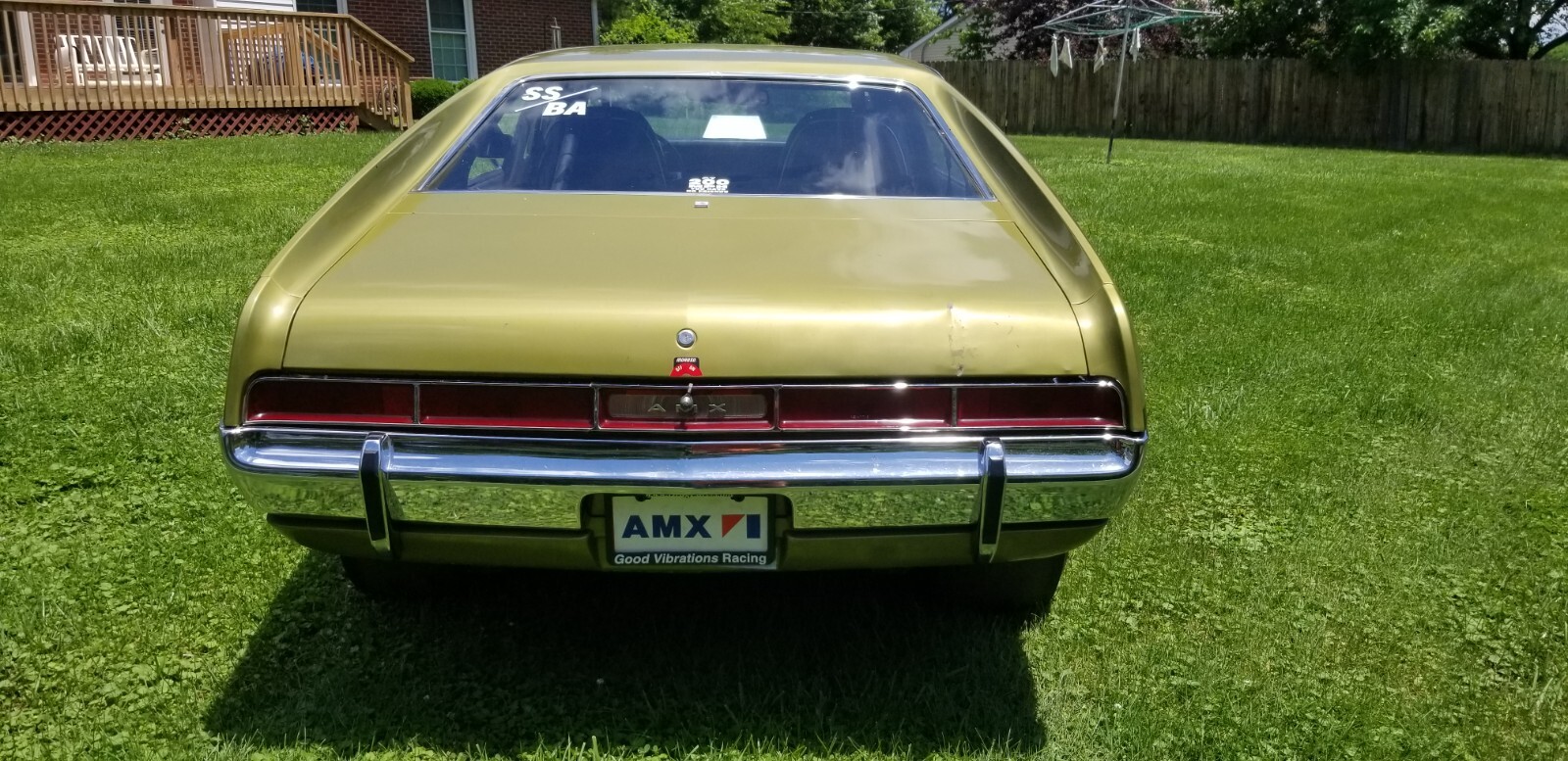 AMX has the original Booth and Arons built 390 in it (0 runs on freshened up motor and transmission) made over 500hp back in the 70s and was the fastest single 2 barrel drag car in the mid 70s in the country racing in SS/3BA. Brakes have been upgraded new disc brake all around. Still has original leather interior. Dana 60 rear end with 5.57 gears. Have some of the history documented time slips from around the country back in the 70s. Car was raced up in to the 2000s.engine is the 70 390 20 over with 14 to 1 compression 6" H beam rods with ATI damper solid roller camshaft crane roller rocker with jomar stud girdle heads have 2.12 intake and 1.68 exhaust valves torker intake with 4412 holley sitting sideways has milidon oil pan and duel external pickup