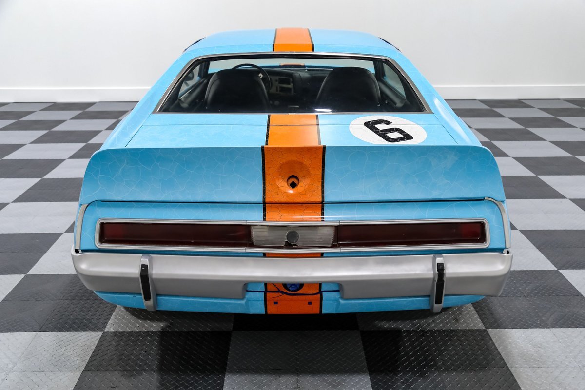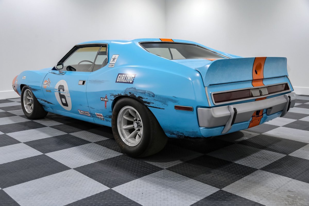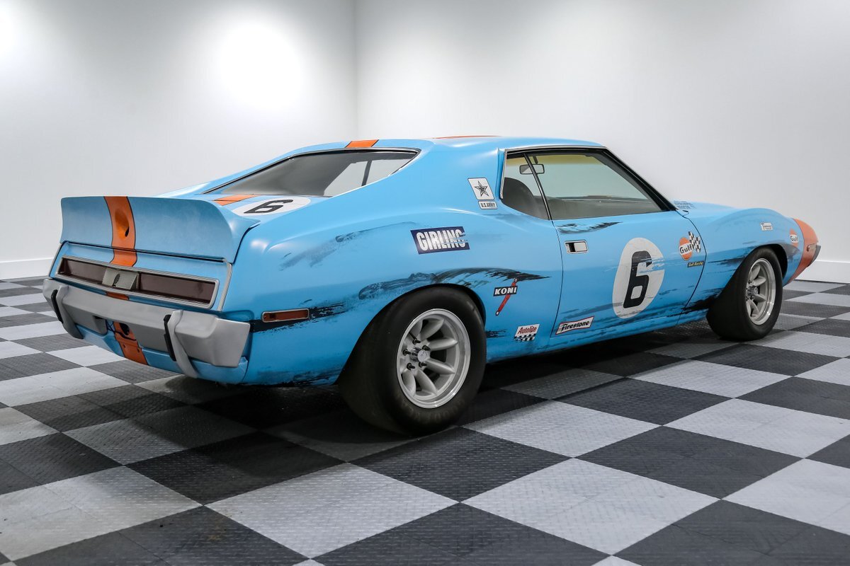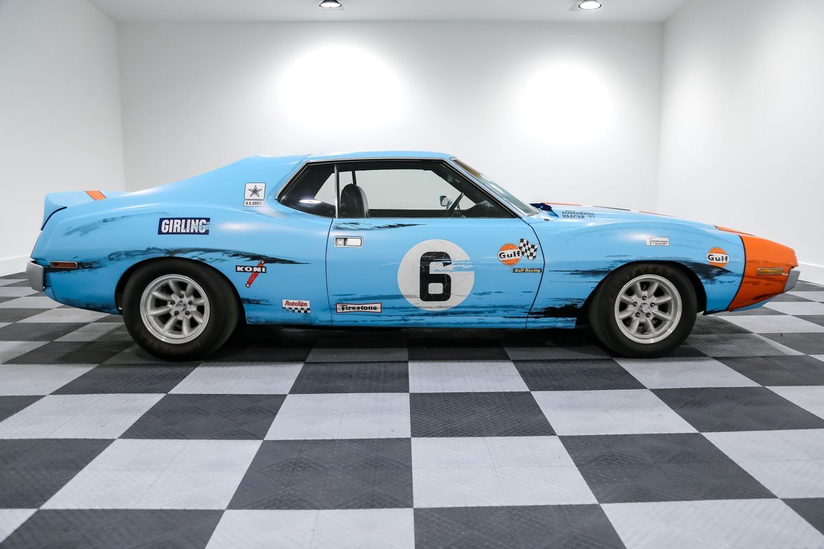 Now, about that Gulf Blue color – this ain't just a color, folks. This is a nod, a tribute, a salute to an era of racing dominance. The Gulf Racing custom wrap ensures that wherever this Javelin goes, it's turning heads and dropping jaws. And if for some wild reason you ever want a change, there's a slick blue metallic paint hiding beneath the wrap. It's like having two beasts in one!
