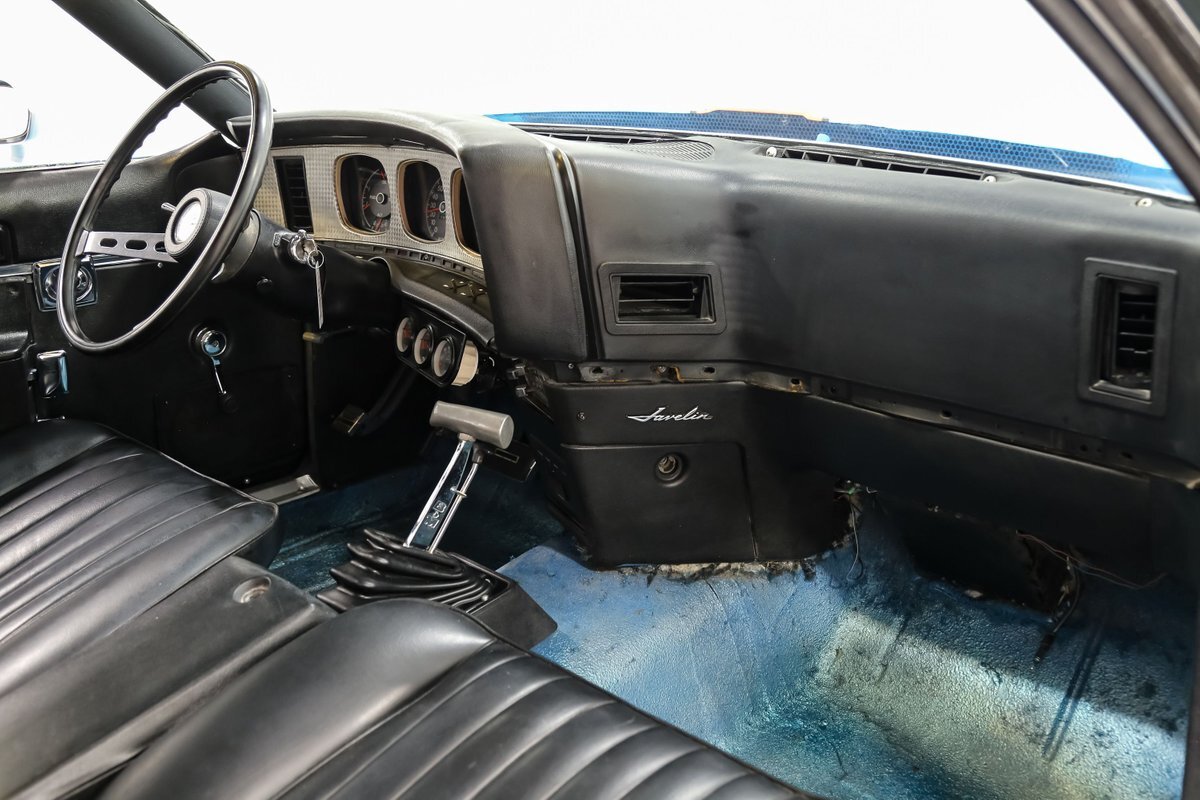 The inside of this muscle car is all business. Black vinyl bucket seats await the driver and lucky passenger, offering a comfortable yet sporty vibe. But let's talk more about the unique features that make this Javelin a rare gem. A "Race Fleet" VIN tag on the firewall and the fact that it served as a test bed for its roaring engine places this car on a pedestal. This was a machine built for purpose, for pushing limits, for conquering racetracks.