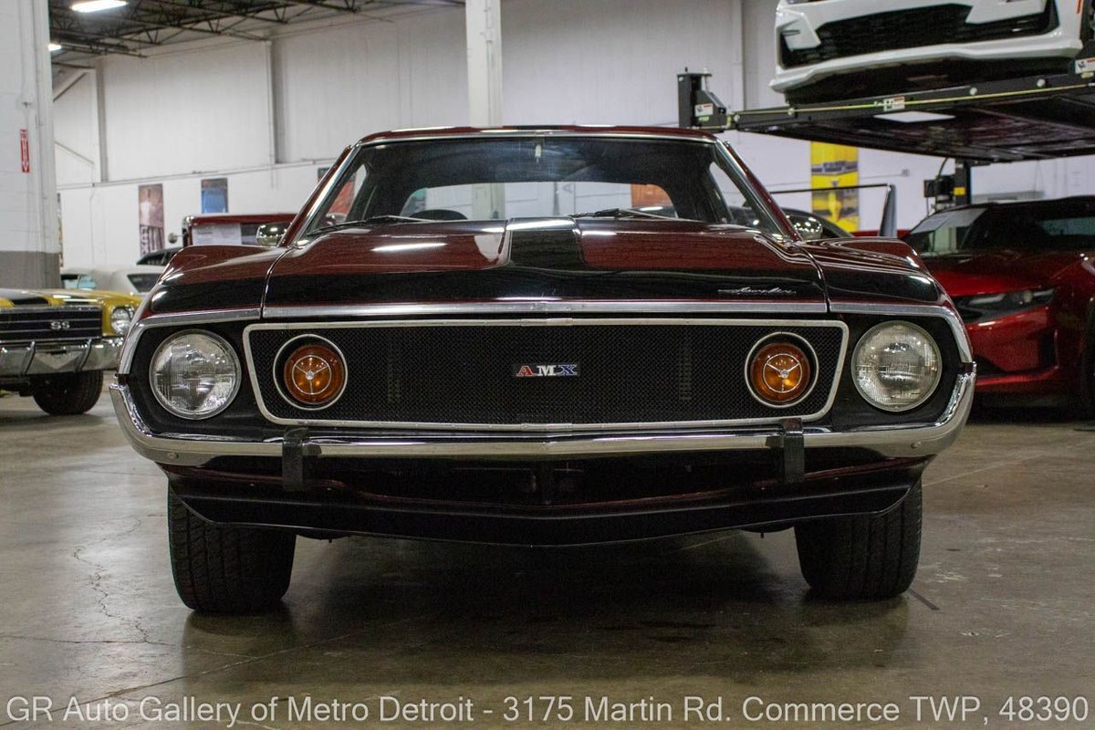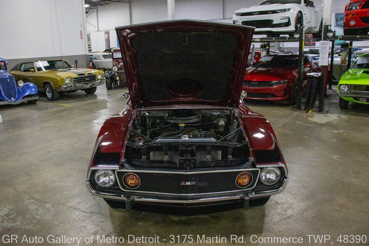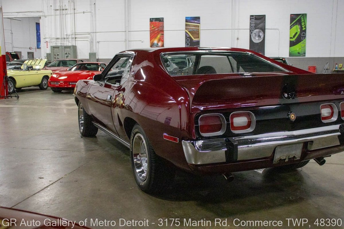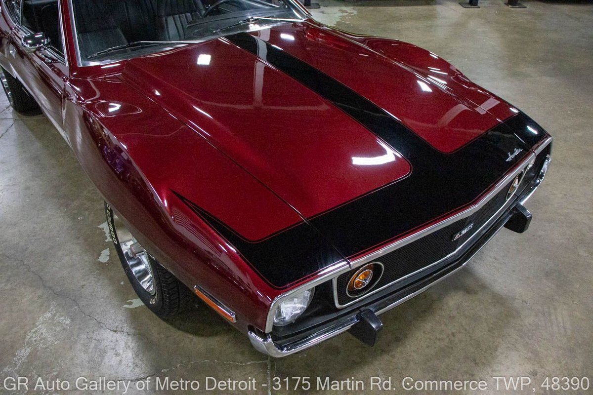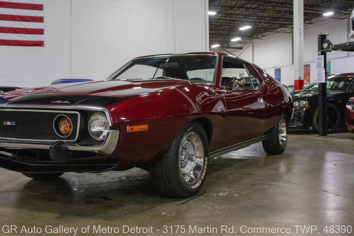 GR Auto Gallery is pleased to present this restored 1973 AMC Javelin AMX for your consideration. This stunning Javelin AMX boasts a powerful 360 cubic inch V8 engine producing 289 horsepower, paired with a 727 3-speed automatic transmission. The Vineyard Burgundy exterior is complemented by a sleek black interior. In which it has been meticulously maintained with roughly 5,000 miles since the restoration, this AMX comes equipped with features such as a high stall converter, Holley 650 double pump carburetor, undercoated underside, freshly powder coated 15-inch stock wheels, new main wiring harness, new high output battery, audia dtx cassette stereo, functional heat, and more. Documentation receipts and dyno sheets are included for peace of mind. Drive this one out of our showroom or have us assist with shipping it to you anywhere in the United States! Don't hesitate to call us with any questions or for more information.