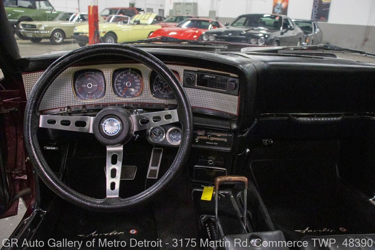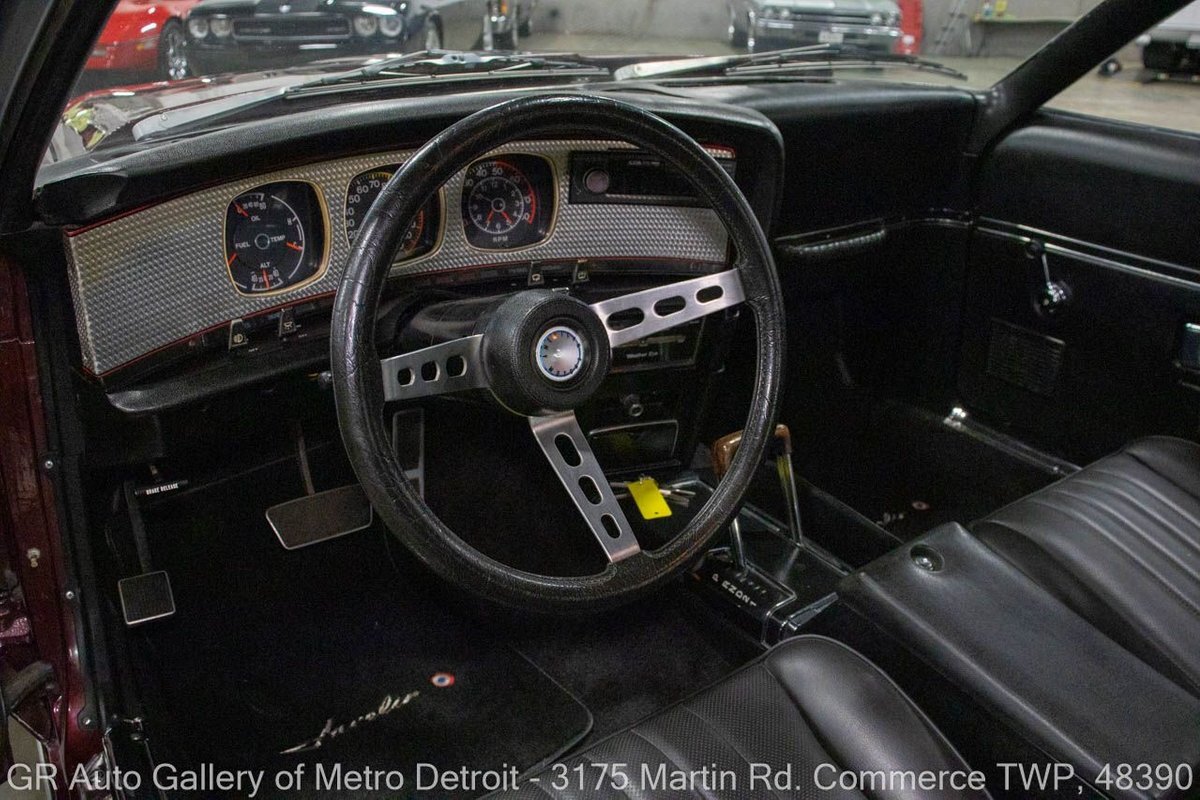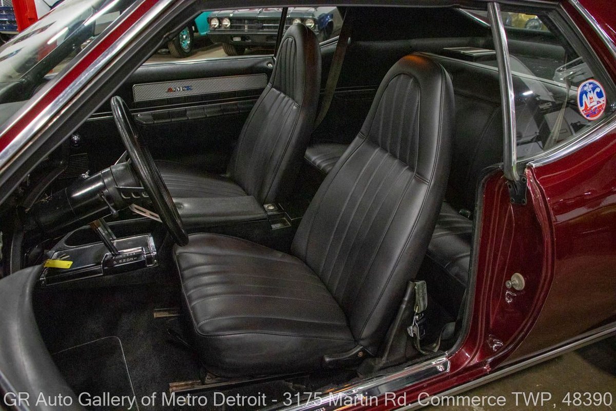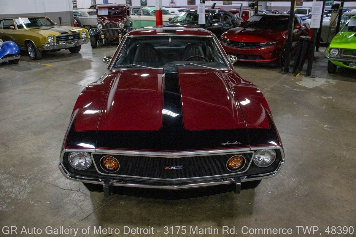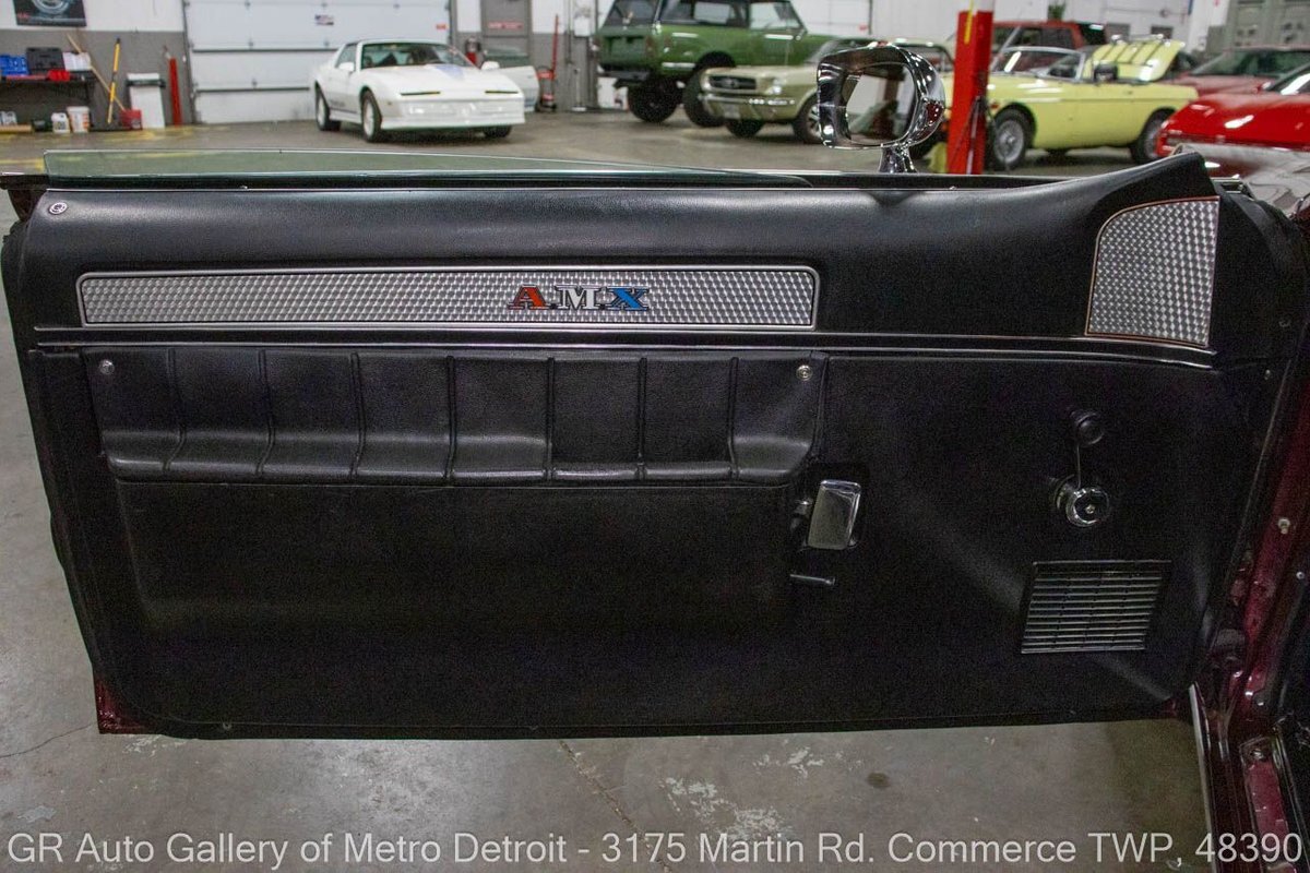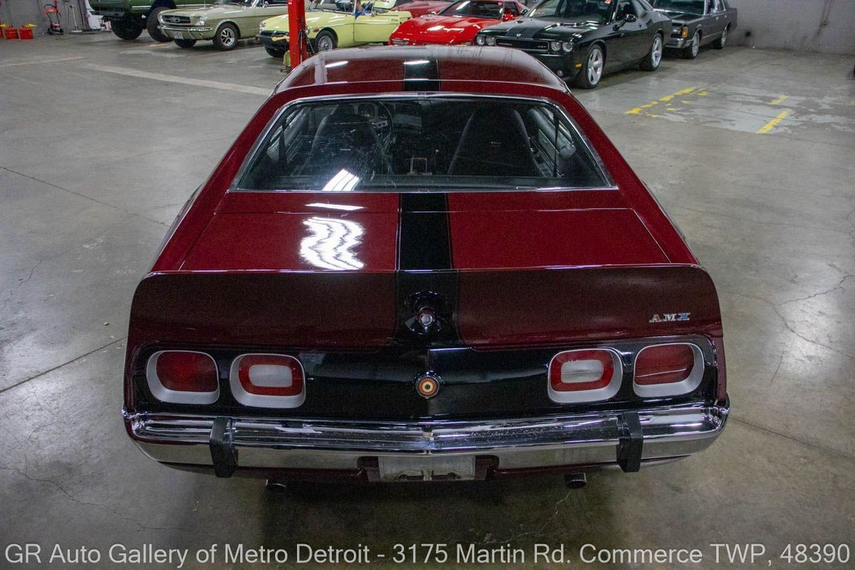 GR Auto Gallery is pleased to present this restored 1973 AMC Javelin AMX for your consideration. This stunning Javelin AMX boasts a powerful 360 cubic inch V8 engine producing 289 horsepower, paired with a 727 3-speed automatic transmission. The Vineyard Burgundy exterior is complemented by a sleek black interior. In which it has been meticulously maintained with roughly 5,000 miles since the restoration, this AMX comes equipped with features such as a high stall converter, Holley 650 double pump carburetor, undercoated underside, freshly powder coated 15-inch stock wheels, new main wiring harness, new high output battery, audia dtx cassette stereo, functional heat, and more. Documentation receipts and dyno sheets are included for peace of mind. Drive this one out of our showroom or have us assist with shipping it to you anywhere in the United States! Don't hesitate to call us with any questions or for more information.
