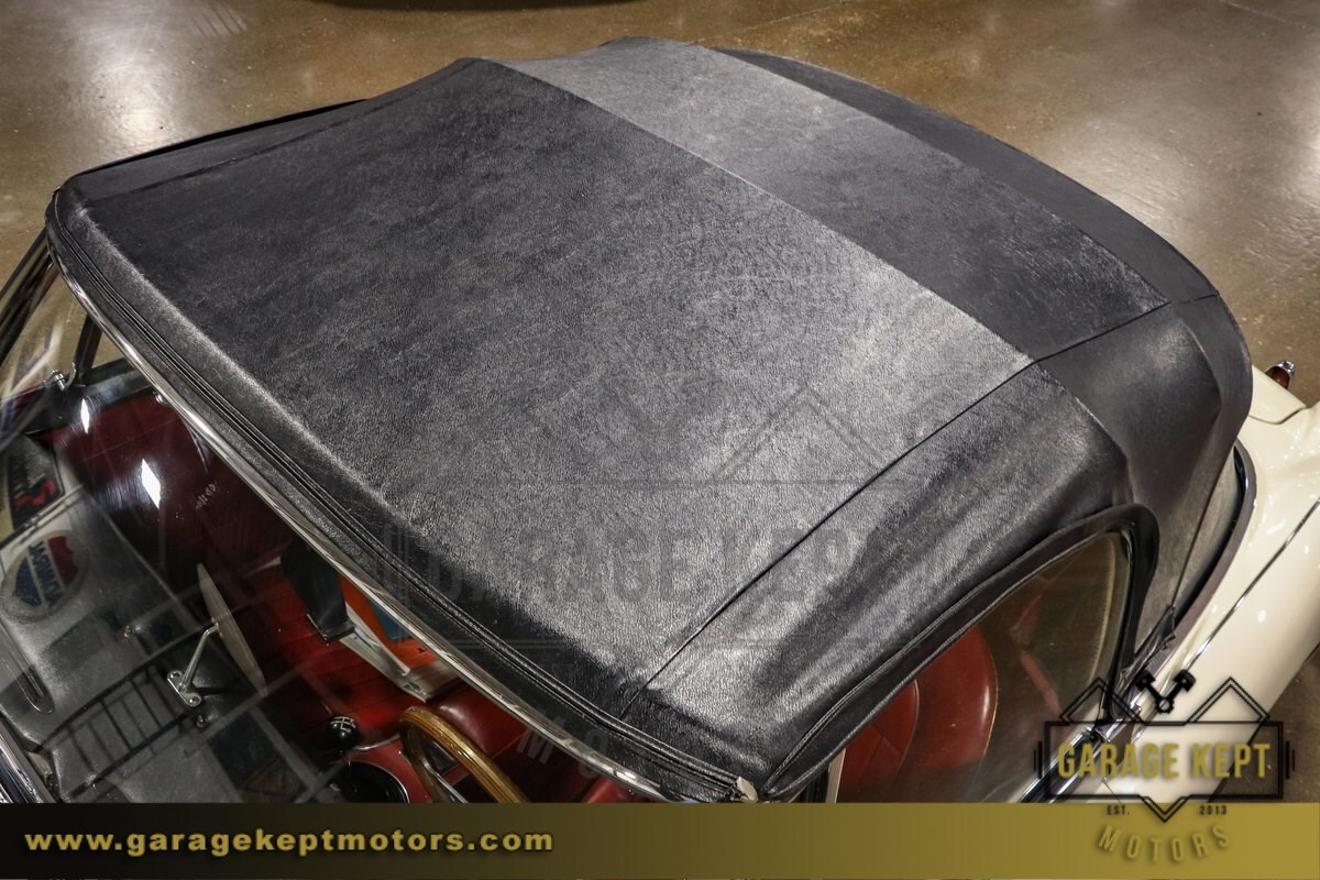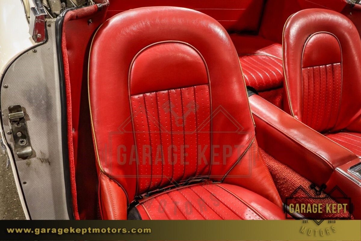 Inside, the red interior exudes classic British style and charm. The seats are comfortable and supportive, making long drives a joy. The interior trim and detailing have been well-preserved, adding to the car's overall appeal. The combination of the Mission White exterior and the red interior creates a striking and memorable aesthetic that is sure to turn heads wherever you go.