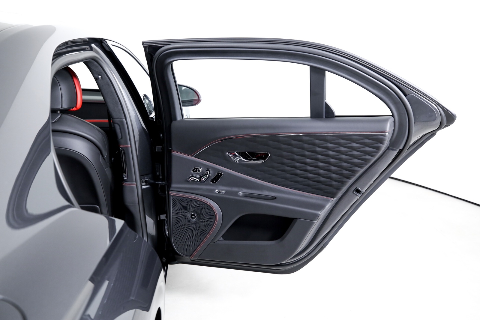 - FLYING SPUR BLACKLINE SPECIFICATION - REPLACES THE EXTERIOR BODY BRIGHTWARE: SIDE WINDOW SURROUNDS, WING VENT AND LOWER DOOR BRIGHTWARE, REAR BUMPER BRIGHTWARE, FRONT HEADLAMP BEZELS, RADSHELL MATRIX, SURROUND AND CENTER BAR, DOOR HANDLES, REAR NUMBER PLATE SURROUND BRIGHTWARE, REAR LAMP BEZELS AND EXHAUST OUTLETS