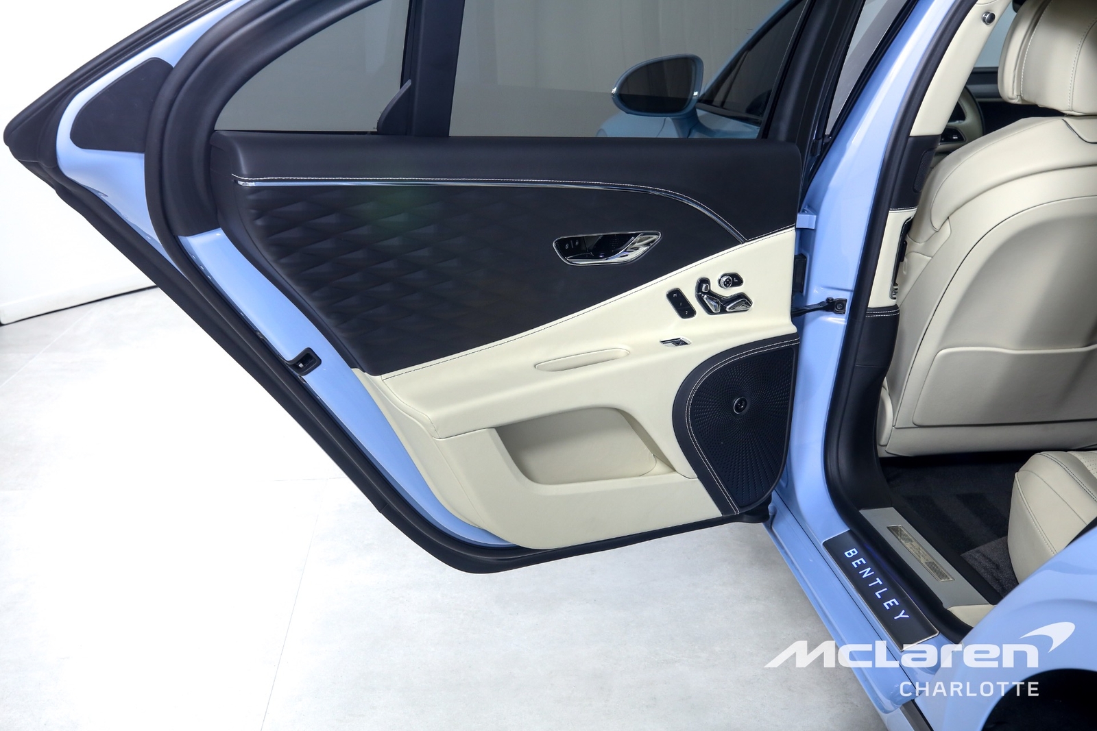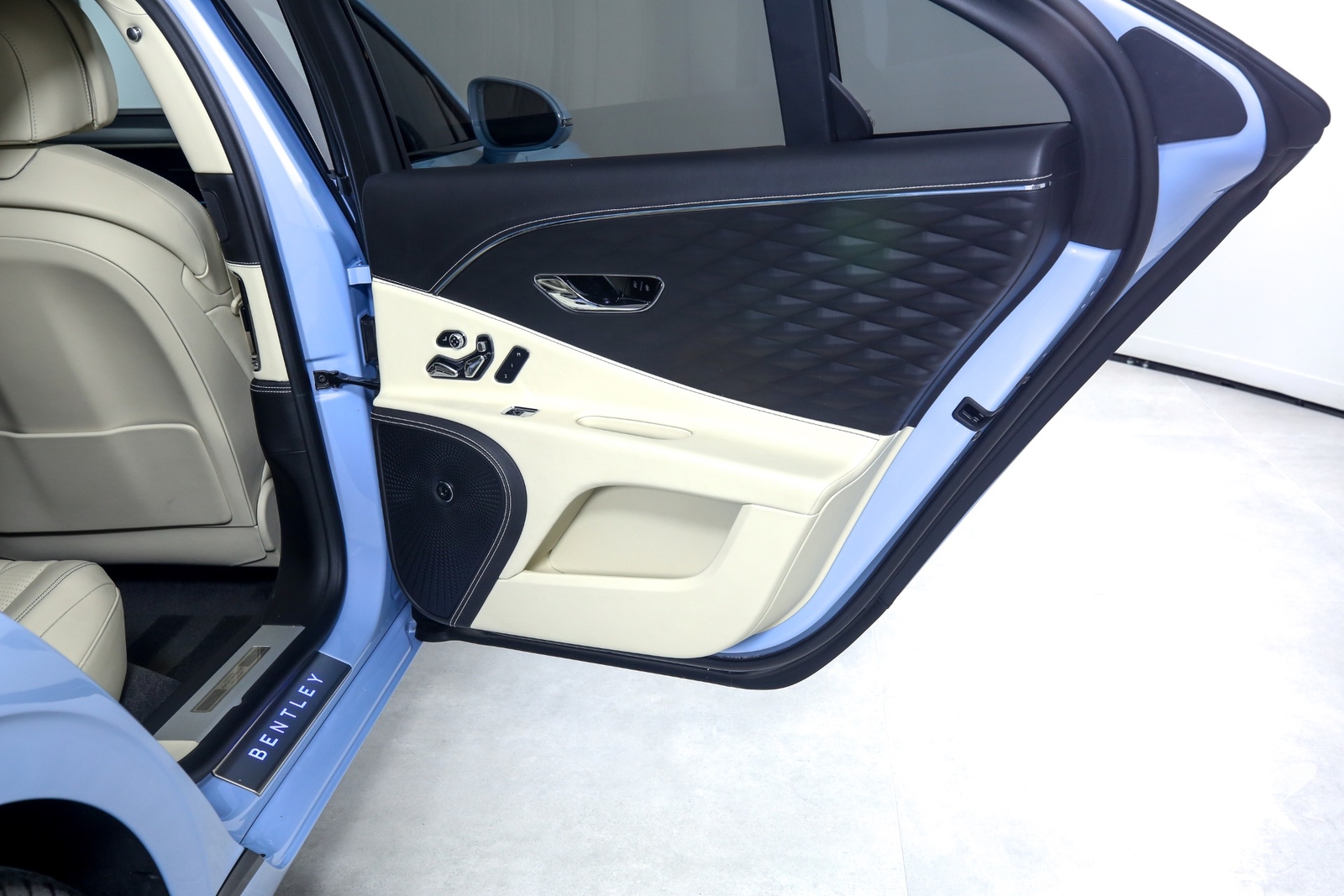 - MULLINER DRIVING SPECIFICATION W/ PAINTED WHEEL - EXCLUSIVE TO FLYING SPUR BLACKLINE, LOFTED DIAMOND DESIGN QUILTED SEATS, 3-DIMENSIONAL LEATHER DOOR PANELS, LEATHER HEADLINER, SPECIAL FINISH FUEL FILLER CAP AND METAIL OIL CAP, WHEELS: 22" 10 OPEN-SPOKE BLACK PAINTED, TIRES: 22", EMBROIDERED BENTLEY EMBLEMS, SPORTS PEDALS $19,395