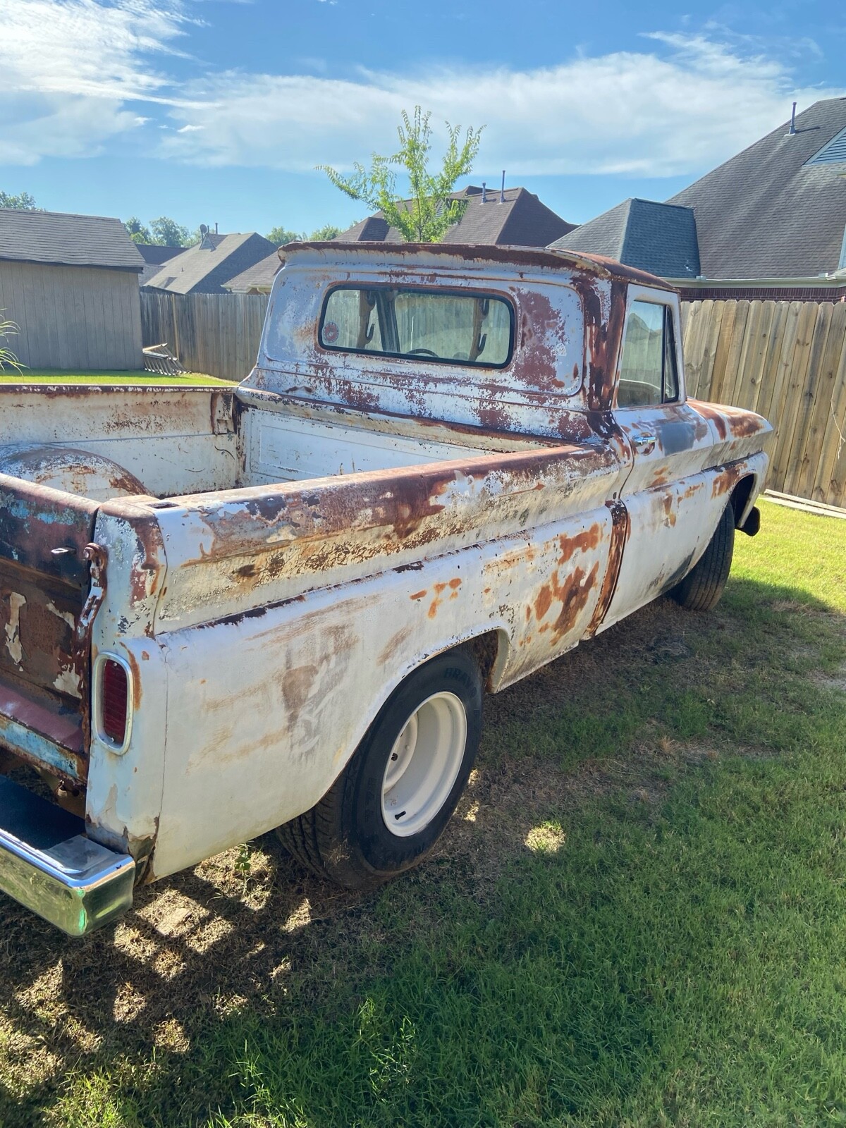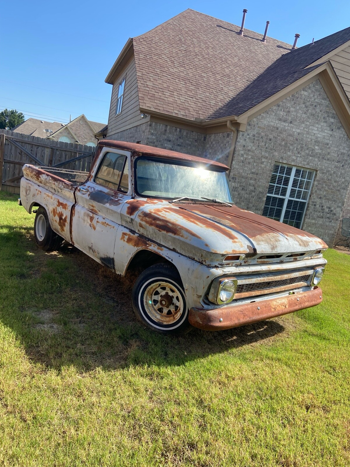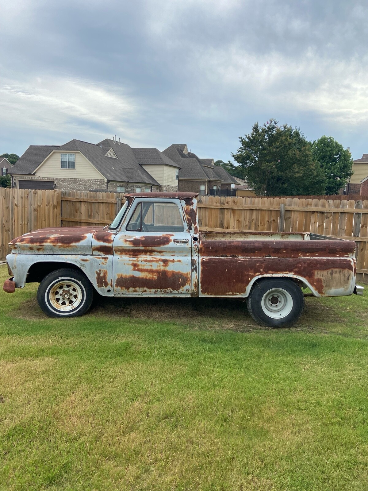 Selling My Father in law.s 1964 Short bed Chevy truck equipped with V8 350 and a 3 speed manual on the floor. . Truck was last driven 16 yrs ago . Solid body with surface rust for that Patina look . Cab corners are solidSeller's Notes