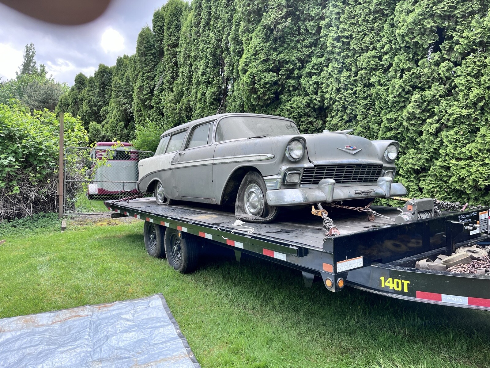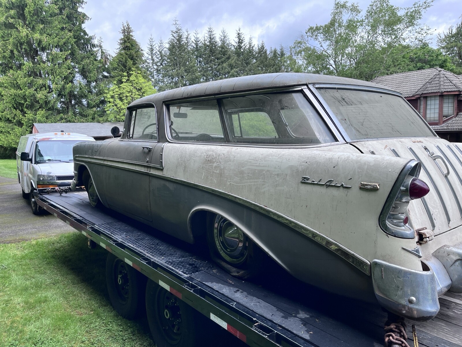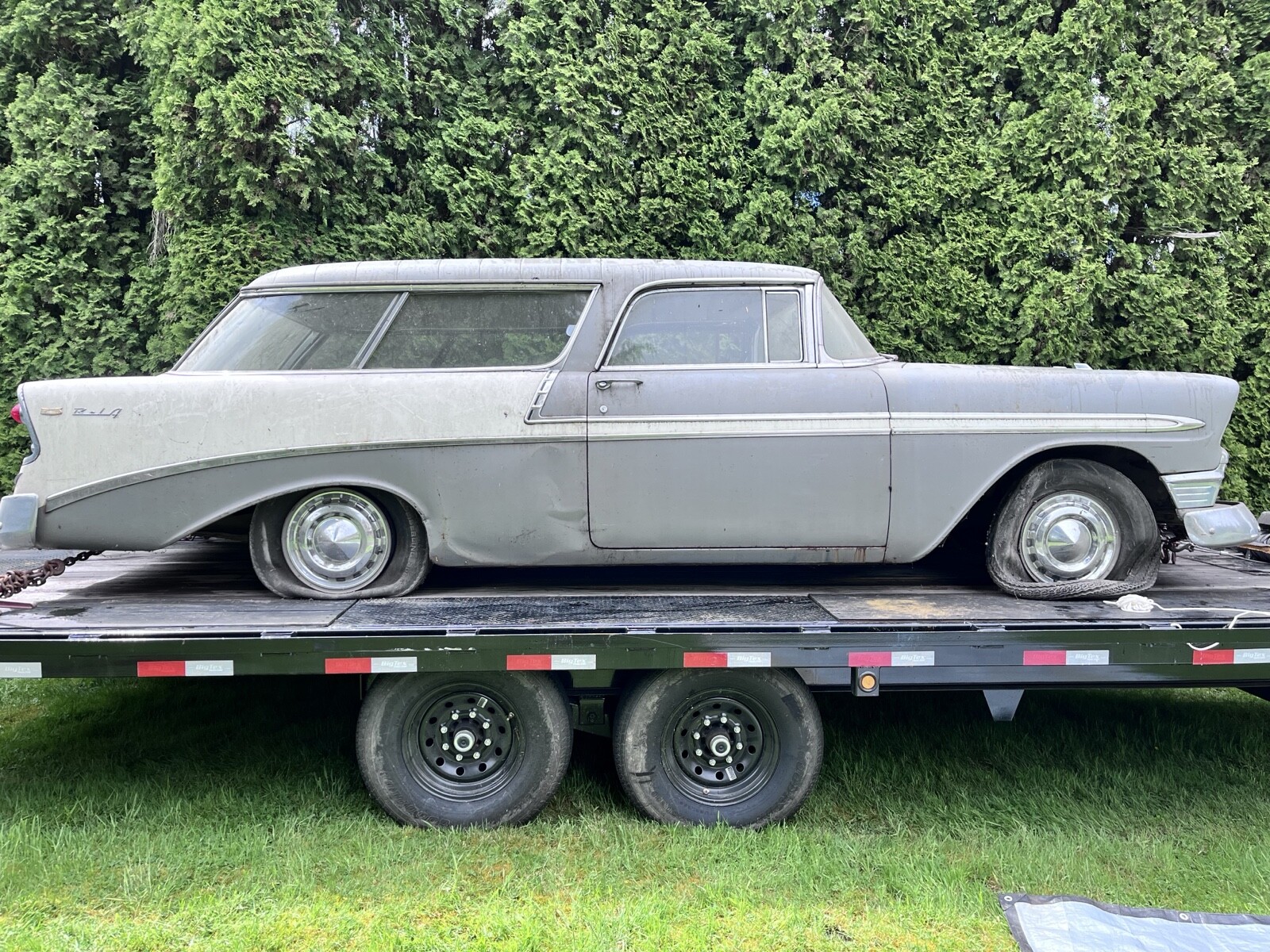 This 1956 Chevrolet Bel Air Nomad is a classic car that has been preserving in a garage that had no heat and no light cut off from the world for about 25 years The driver side little window has been broken out but all the metal is there so all it would need is the glass and it it would be fixed all door open and close properly. Rear hatch function great but has small dent. Seats don’t have any tears or rips and have minimal fading. Interior metal is all there and has very little surface rust the Nomad emblem on the rear door has a broken piece and would probably need to be replaced also the Bel-Air emblem on drive side rear quarter panel has a broken piece and would probably need to be replaced. The tires are toast and most certainly be replaced. The brakes work great and still has original wheels on it. The paint is original and the interior is original too. The amazing condition and the original-ness of the Nomad make this a extremely rare car there is probably not another Nomad in this condition out there at all anywhere remember the was only about 23,000 of the tri-five nomads ever made and of the 56’ there was only about 7,500 made so if toy don’t get your hands on this gem chance are there won’t be another that will find its way to the surface ever again don’t miss outVehicle Details