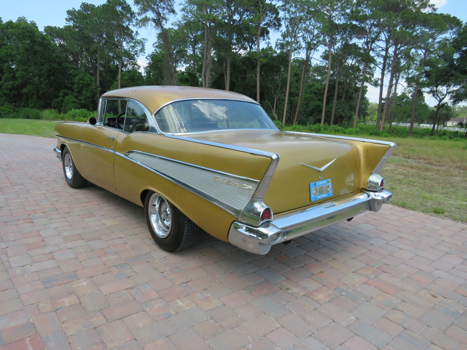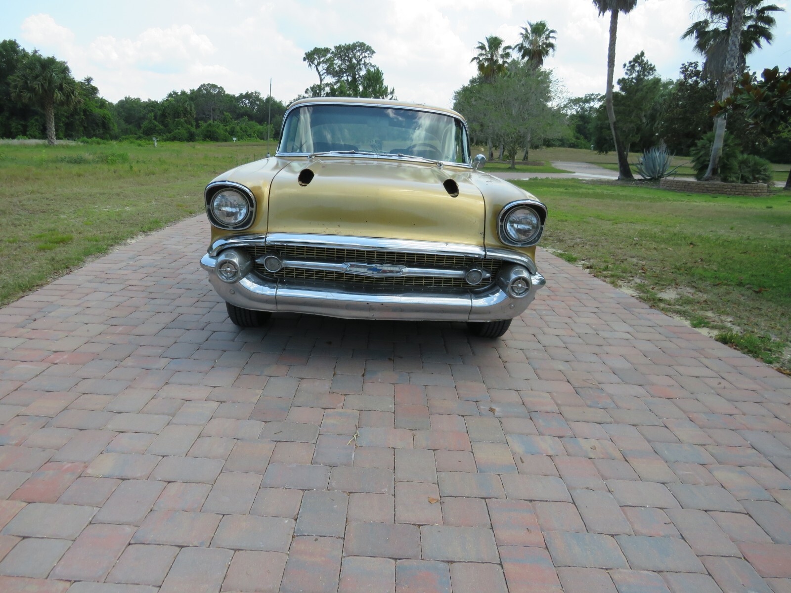 1957 Chevy BelAir 2 door Hardtop Sports Coupe. This car has been stored in a garage in southern New England for over 30 years. This car is a real blast from the past. A hot rod from the 1970s. Under the hood is a 1969 427/425 big block. Behind the big block is a Muncie 4 speed and a Pontiac 10 bolt rear end. Engine details are: Front pad numbers: CE955443, Decoded as Chevrolet Engine, 1969, 55443 engine built at the Tonowanda Engine Plant. Engine Casting Number: 3963512 = 1969-1971 427ci. Cylinder Head Casting Numbers: 3964291 = High Performance, Rectangular Port, Closed Chamber, 427ci. Intake Manifold Casting Numbers: 3933163, 1968-1969 427, or COPO 425hp. Since coming out of the garage, I recently added front power disc brakes and converted the original generator to a one wire 150 amp alternator. The interior is from an early Pontiac and fits perfectly in this car. The trunk and floors seem solid. This car runs and drives incredible. The patina on this car really ads to the look. I've taken this car to a few cruise nights, and the people go wild at the looks of this car. Cars this cool don't come around too often. The car is currently registered in Florida and I have a clear Florida title. Cash or wire transfer only. This car is relisted with no reserve.