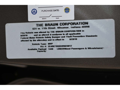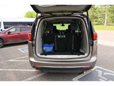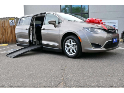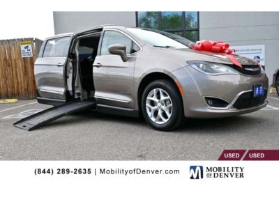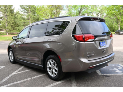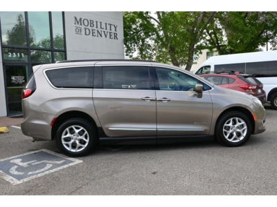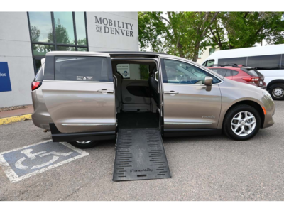 Door Opening Height: 52.25" and width: 32". 2017 Chrysler Pacifica Touring L Braunability Fold Out Side Entry rampvan for sale. Built by Braun, this is a loaded top-of-the line wheelchair accessible van is a driver capable full cut lowered floor conversion: both front seat are removable. This van accommodate a full-sized wheelchair up front or in the second row position. It also includes a power fold out ramp, fold down rear seating footrests, Q'Straint manual tie-down straps and rails throughout. This van has a super quiet ride, and independent rear suspension so it handles very well. In good shape overall with a scrape on the passenger rear door. This disability equipped handicap wheelchair accessible ramp van Touring L model comes packed with Chrysler's newest safety features like: beautiful Molten Silver Clear Coat exterior, black leather interior, 18-inch Alloy Wheels, tires have 80% tread, 3-Zone Climate Control, Power rear lift-gate, 8.4-in touch screen, AM/FM/CD/Satellite system with Bluetooth, AUX port, USB ports, power windows, mirrors, and locks, advanced key-less remote, remote start, cruise control, traction control, stability control, 4-wheel ABS system, back up camera, smooth and efficient 3.6L 6-cylinder Chrysler motor with front wheel drive, & much more. This vehicle is currently available for sale at Mobility of Denver, located at: 2311 S Platte River Drive, Denver CO 80223. We don't charge a Dealer Handling Fee and are now your mobility one-stop-shop. Just give us a call as we offer it all: sales, service, parts, and rentals. Open M-F 9am - 6pm. Sat by appt.303-351-7904