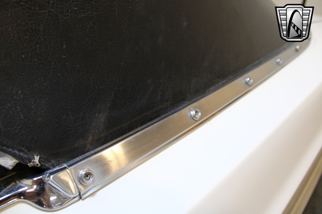 For your safety, the car is equipped with seatbelts. The interior is adorned with a durable and stylish vinyl finish, adding to the overall charm and elegance of this classic convertible.